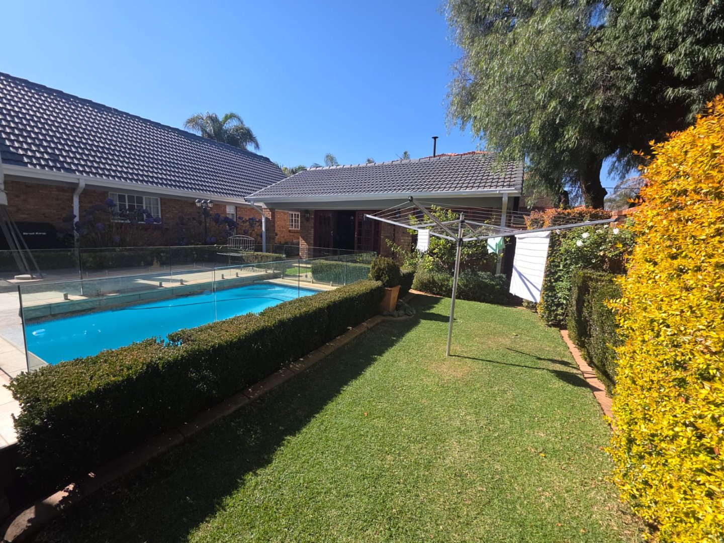Outdoors, the sparkling pool invites you to unwind or host summer gatherings. A welcoming entrance hall sets the tone for this comfortable, well-rounded family home.