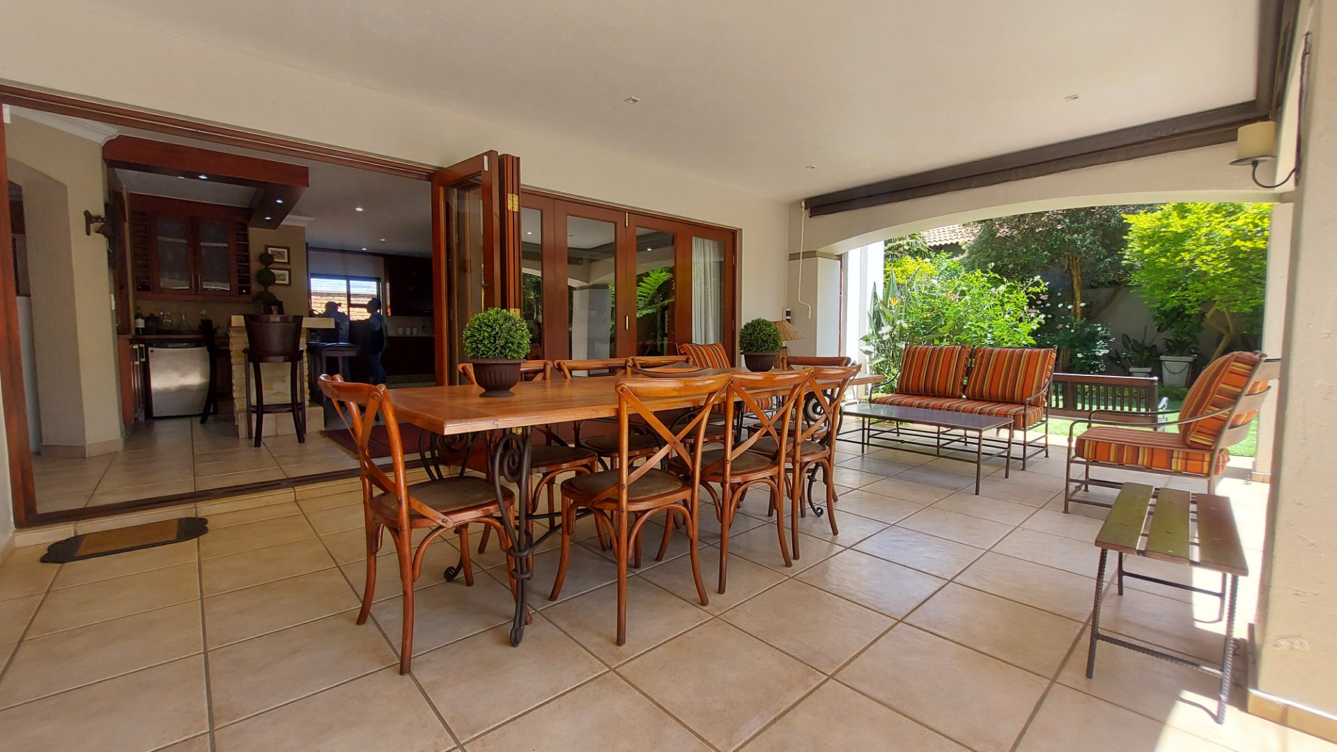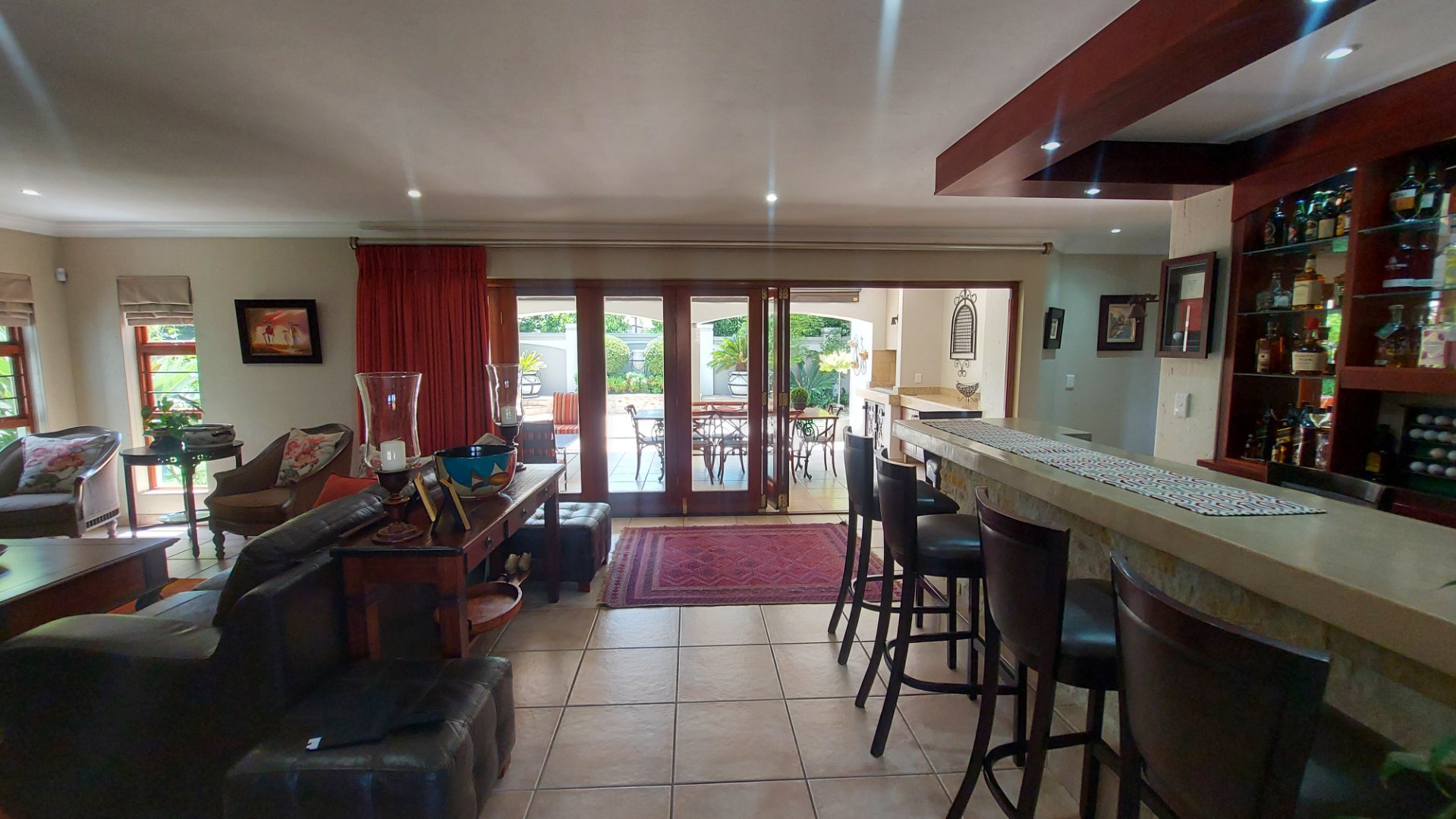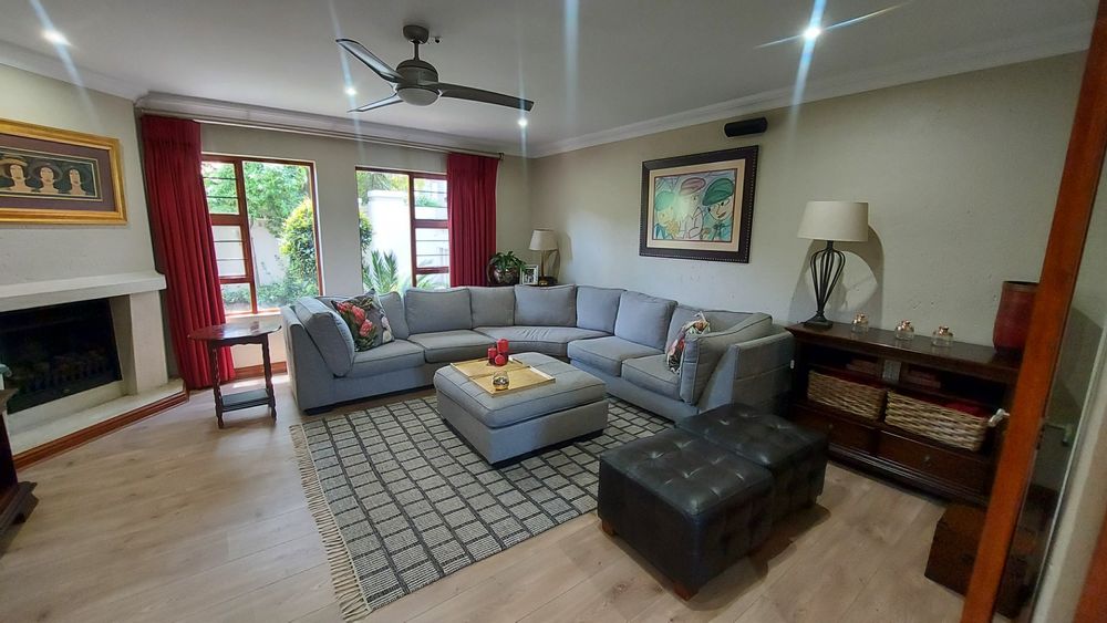 The patio is an entertainer’s dream, complete with a built-in gas braai, overlooking a sparkling pool and a beautiful, tranquil garden — perfect for relaxed outdoor dining and family gatherings.