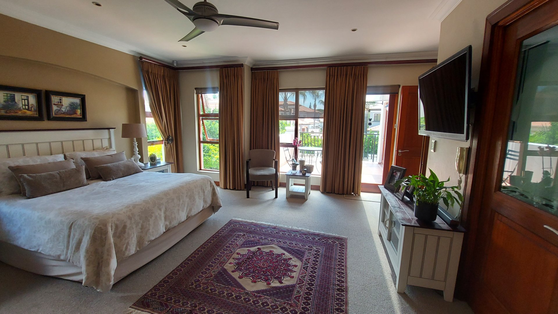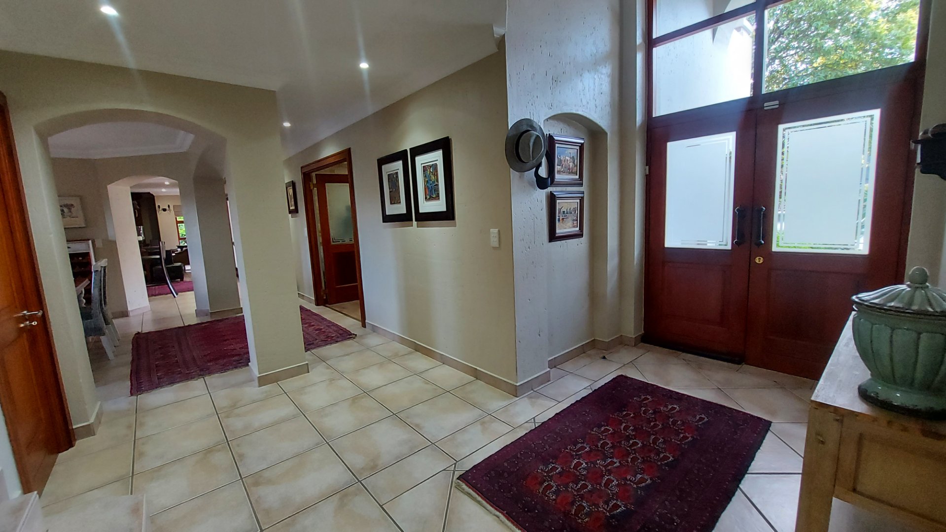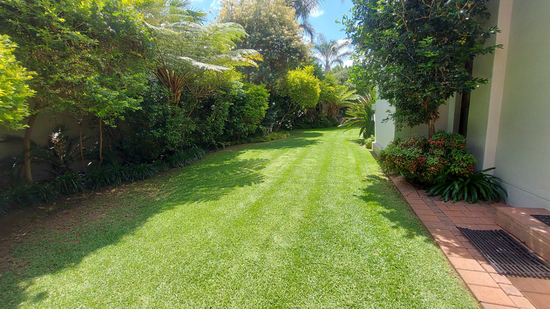 The patio is an entertainer’s dream, complete with a built-in gas braai, overlooking a sparkling pool and a beautiful, tranquil garden — perfect for relaxed outdoor dining and family gatherings.