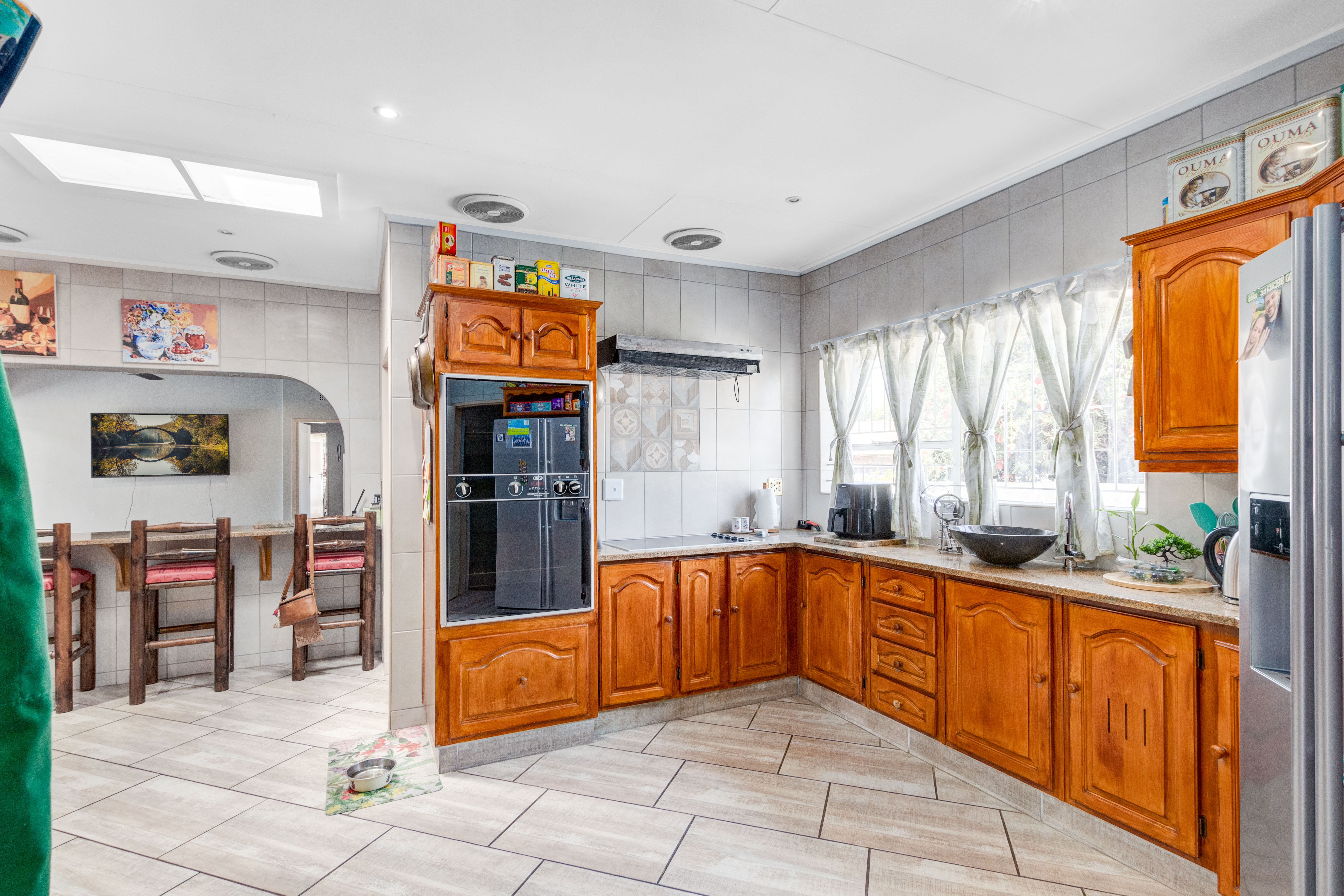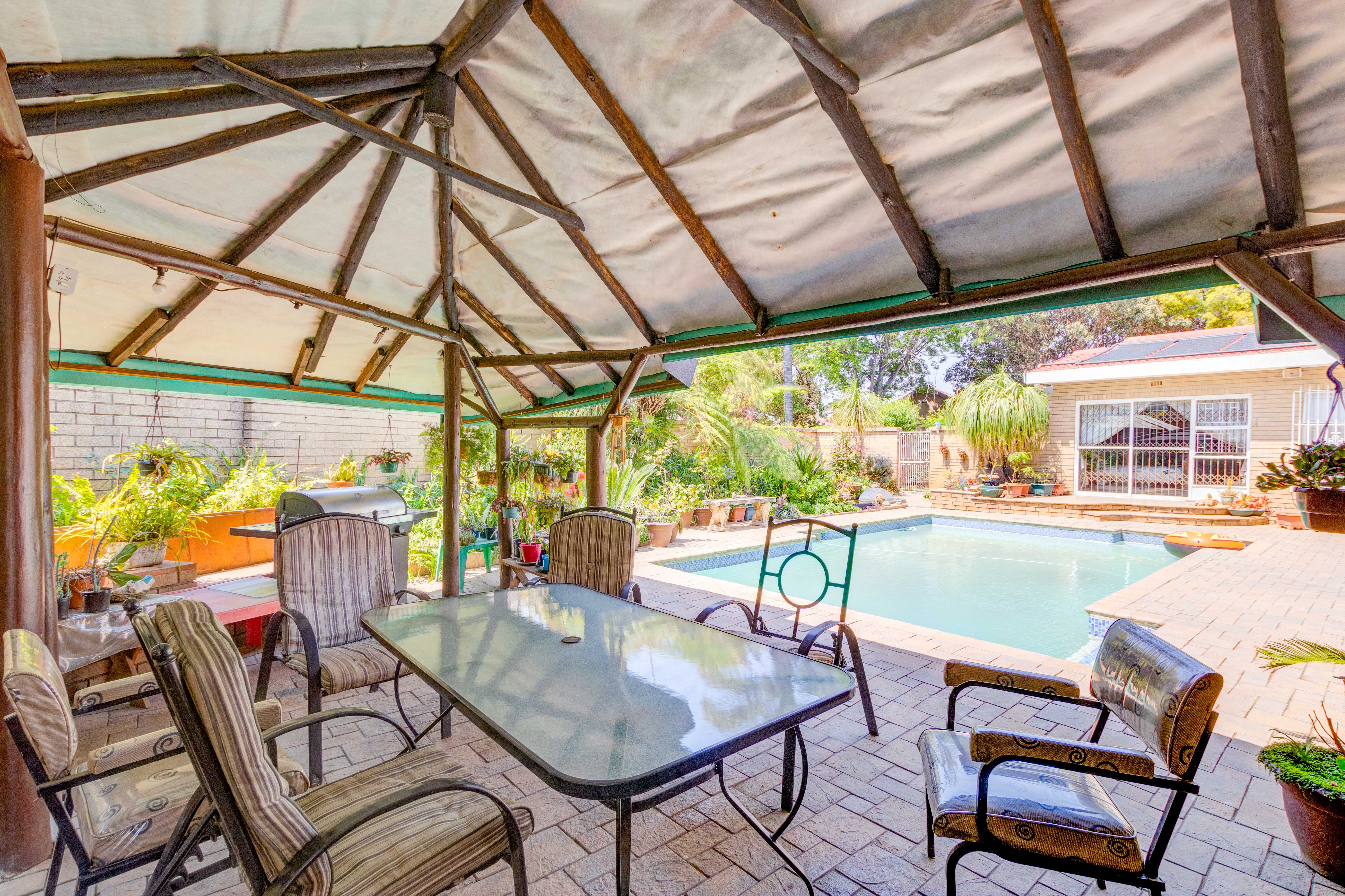This spacious family home is designed for both comfort and entertainment, featuring a full bar area and pool, perfect for hosting guests. The property boasts four generously sized bedrooms with beautiful wooden flooring, a study, and two bathrooms, including a main en-suite with double basins. There are also two guest toilets for added convenience. The kitchen is a chef's dream, offering an eye-level oven, a large breakfast nook, and a separate scullery with plenty of cupboard space. The home offers four distinct reception areas: two lounges, a dining room, and a family room, providing ample space for relaxation and entertaining. Additionally, there’s an expansive bar area for your social gatherings. For parking, there are three automated garages and a double-covered carport. Outside, enjoy a lapa and a solar-heated pool, along with a covered patio featuring a built-in braai, all overlooking the pool. The property also includes an irrigation system for the garden, ensuring it stays lush and green year-round. A fully contained cottage provides extra accommodation, featuring one bedroom, a bathroom, a lounge, and a kitchen, offering privacy and comfort for guests or extended family. Located close to popular schools, shopping centers, and with easy access to major business routes, this home truly offers everything a family could desire. Don’t miss out on this exceptional property – contact us today to arrange a viewing!