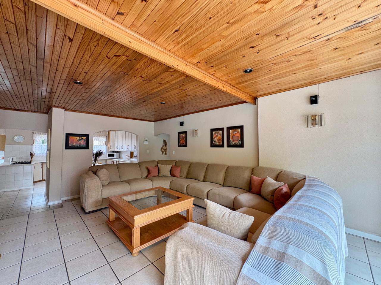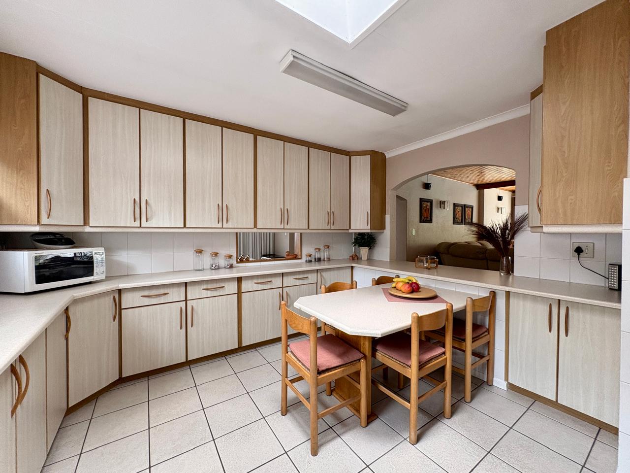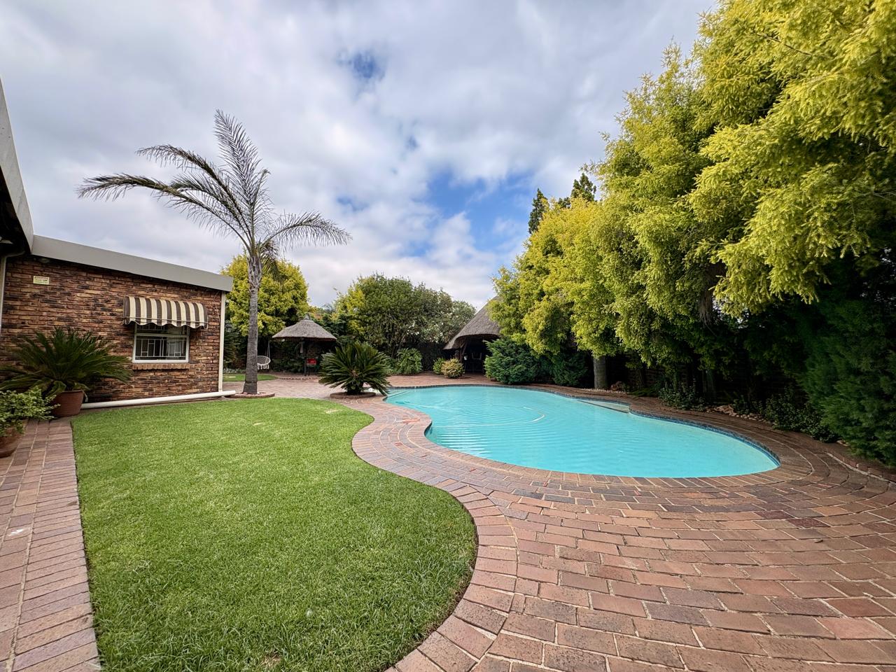 Venture outside to your own serene oasis: a sparkling pool surrounded by lush, park-like gardens and tranquil water features that promote relaxation. The outdoor area is perfect for year-round enjoyment and includes a dedicated braai space, ideal for hosting gatherings. The centrepiece of the home is a generous, well-equipped kitchen complete with a separate scullery and a cosy breakfast nook—perfect for both everyday meals and grand entertaining.