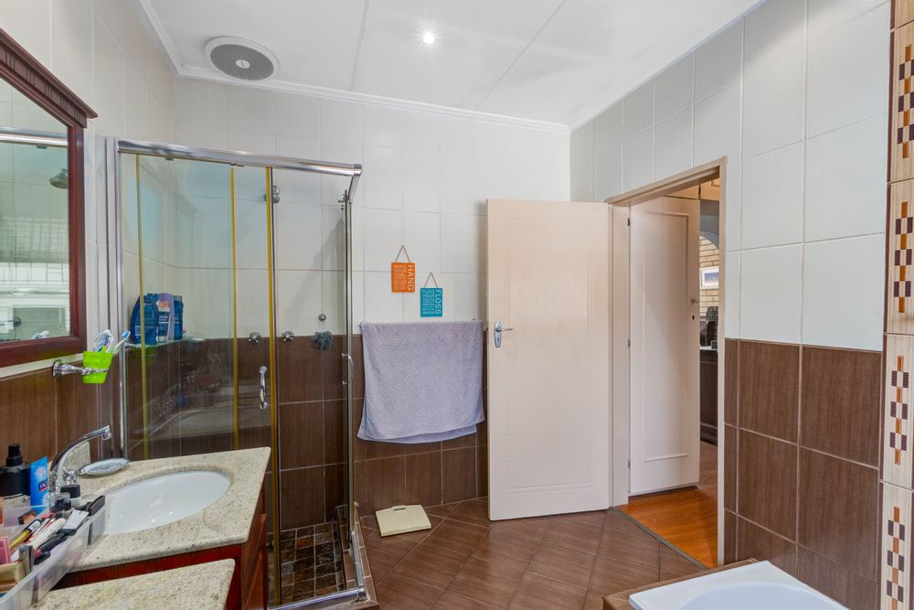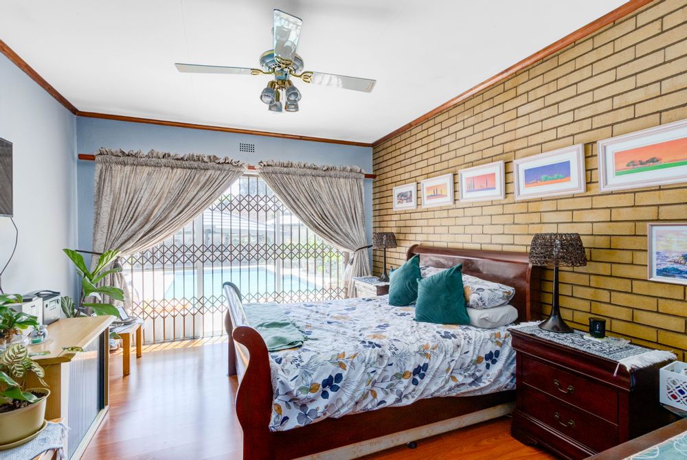 This spacious family home is designed for both comfort and entertainment, featuring a full bar area and pool, perfect for hosting guests. The property boasts four generously sized bedrooms with beautiful wooden flooring, a study, and two bathrooms, including a main en-suite with double basins. There are also two guest toilets for added convenience. The kitchen is a chef's dream, offering an eye-level oven, a large breakfast nook, and a separate scullery with plenty of cupboard space.