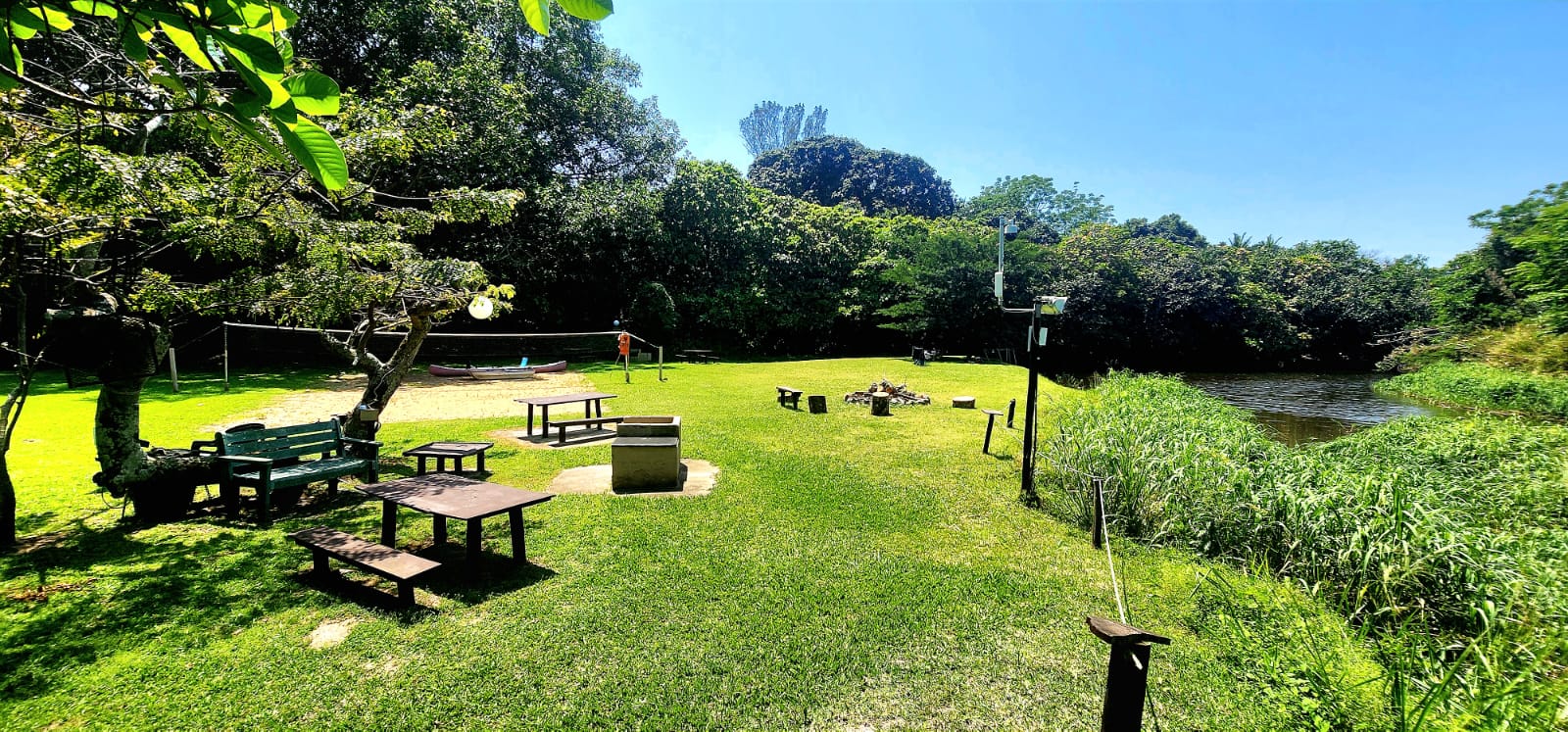 Situated in the sleepy holiday destination of Sunwich Port, located on a flat property, with rolling lawns and large indigenous trees, abundant bird and wildlife, and bordering a river, with fishing, picnic spots and space for the children to go bananas!