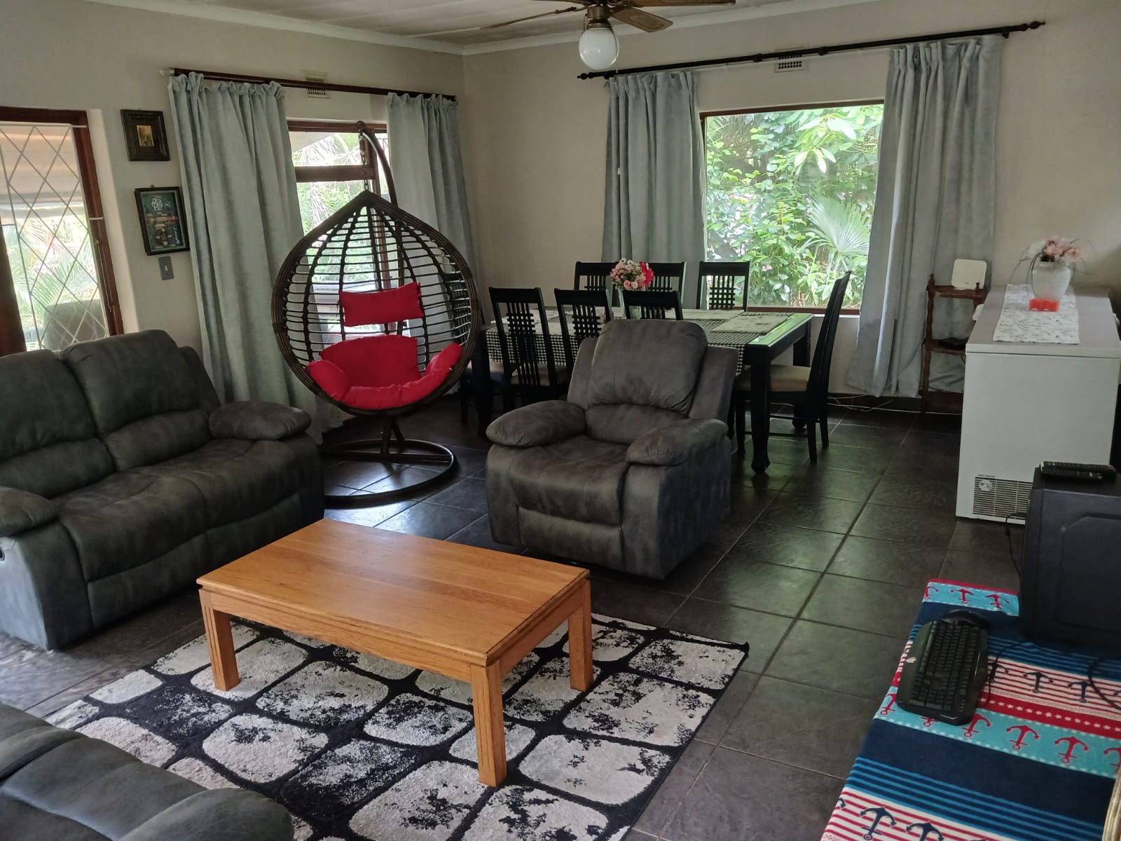 The property boasts a thoughtful layout with three bedrooms and two bathrooms. The open-plan kitchen seamlessly connects to the dining area, which flows into a welcoming lounge. From there, step out onto the balcony and entertainment area, perfect for relaxing or hosting friends and family.