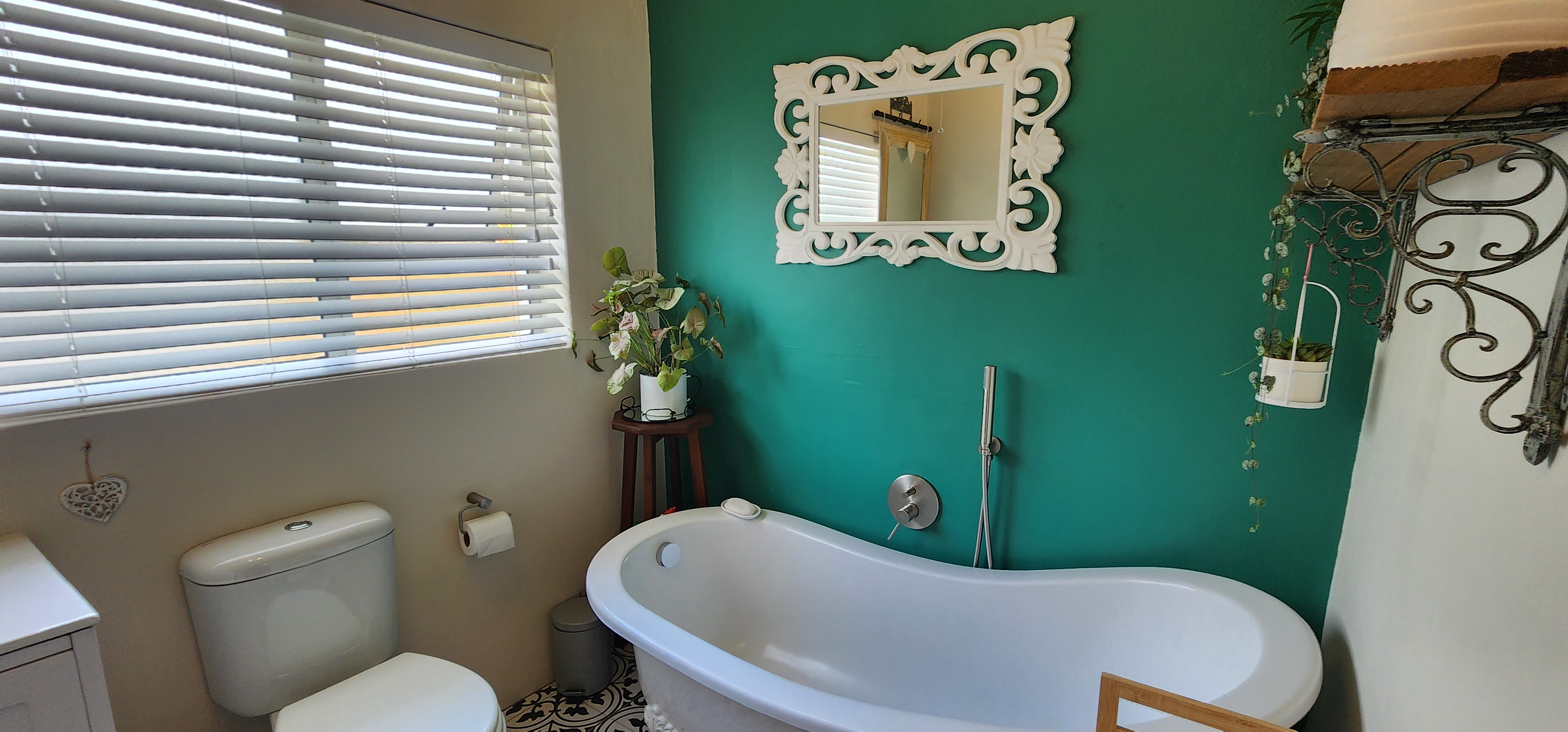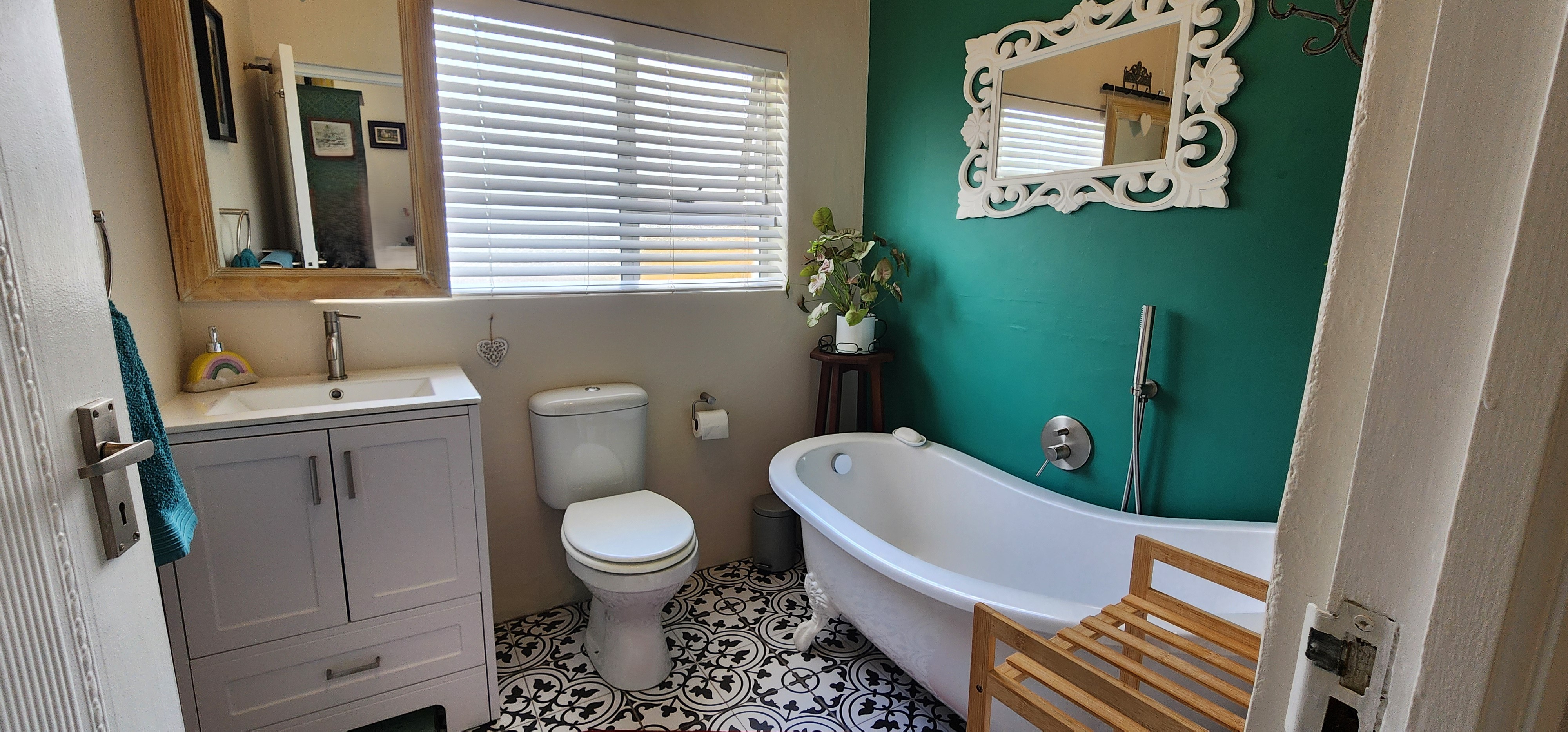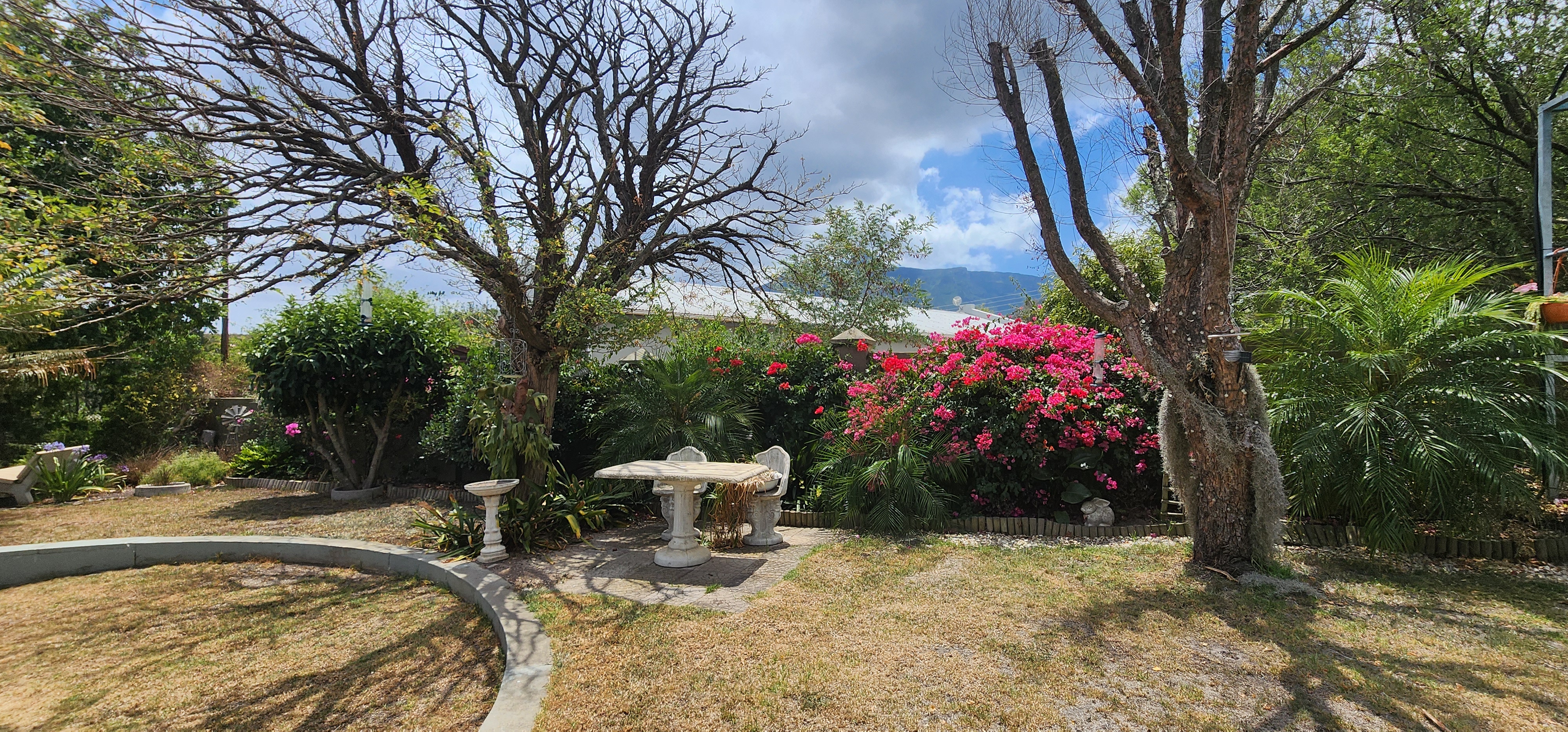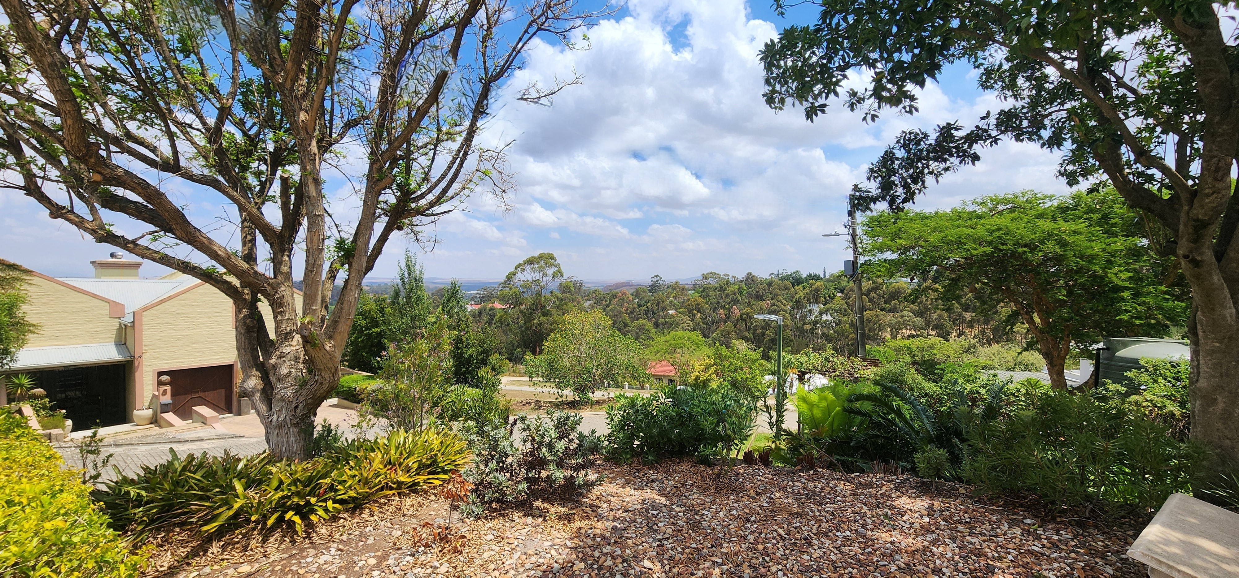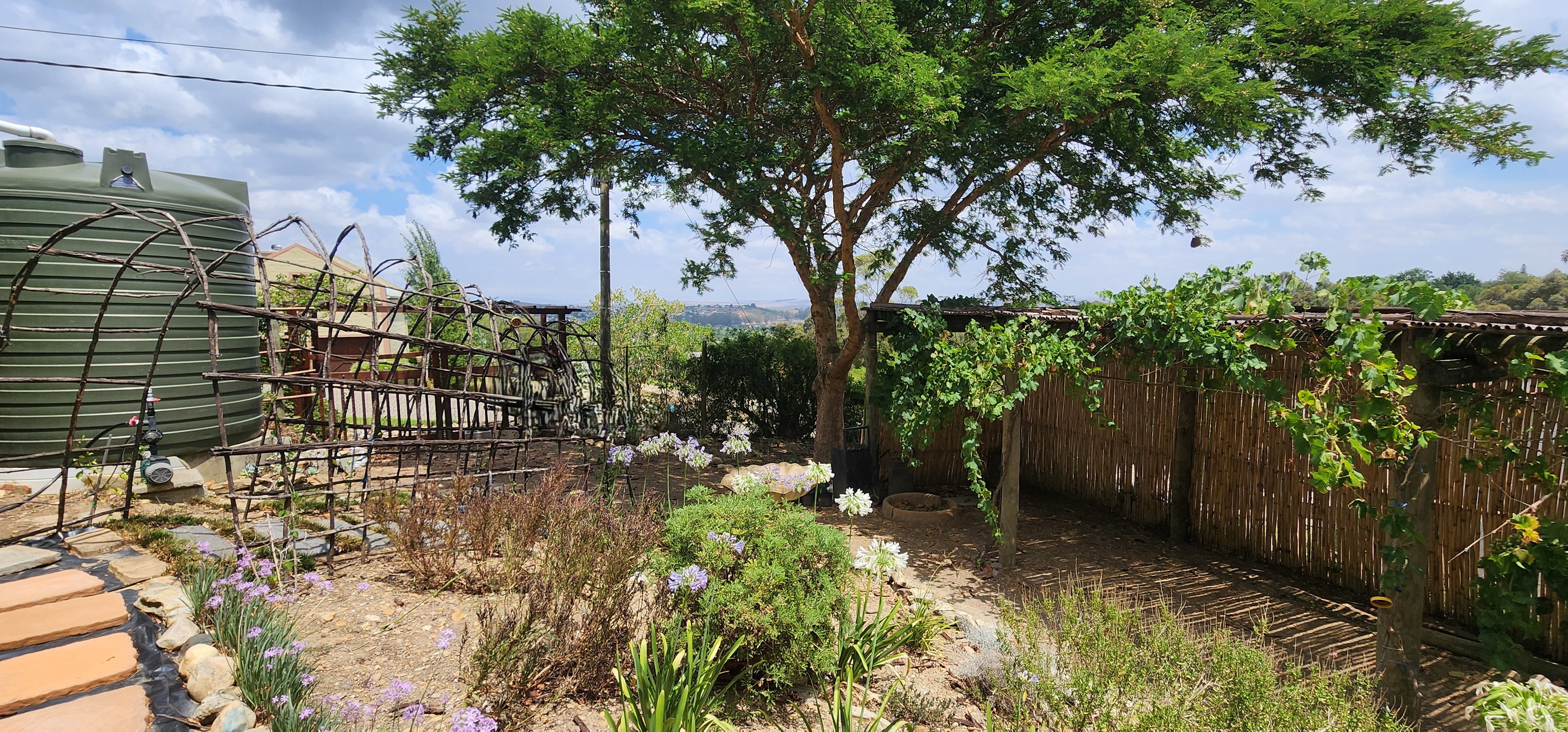 The garden is well established and terraced, offering wonderful outdoor living potential. Due to recent Western Cape drought conditions and water restrictions, the garden is not currently showing its full potential — however, Swellendam benefits from strong water security, allowing future owners to fully restore and enhance the garden to its former beauty.