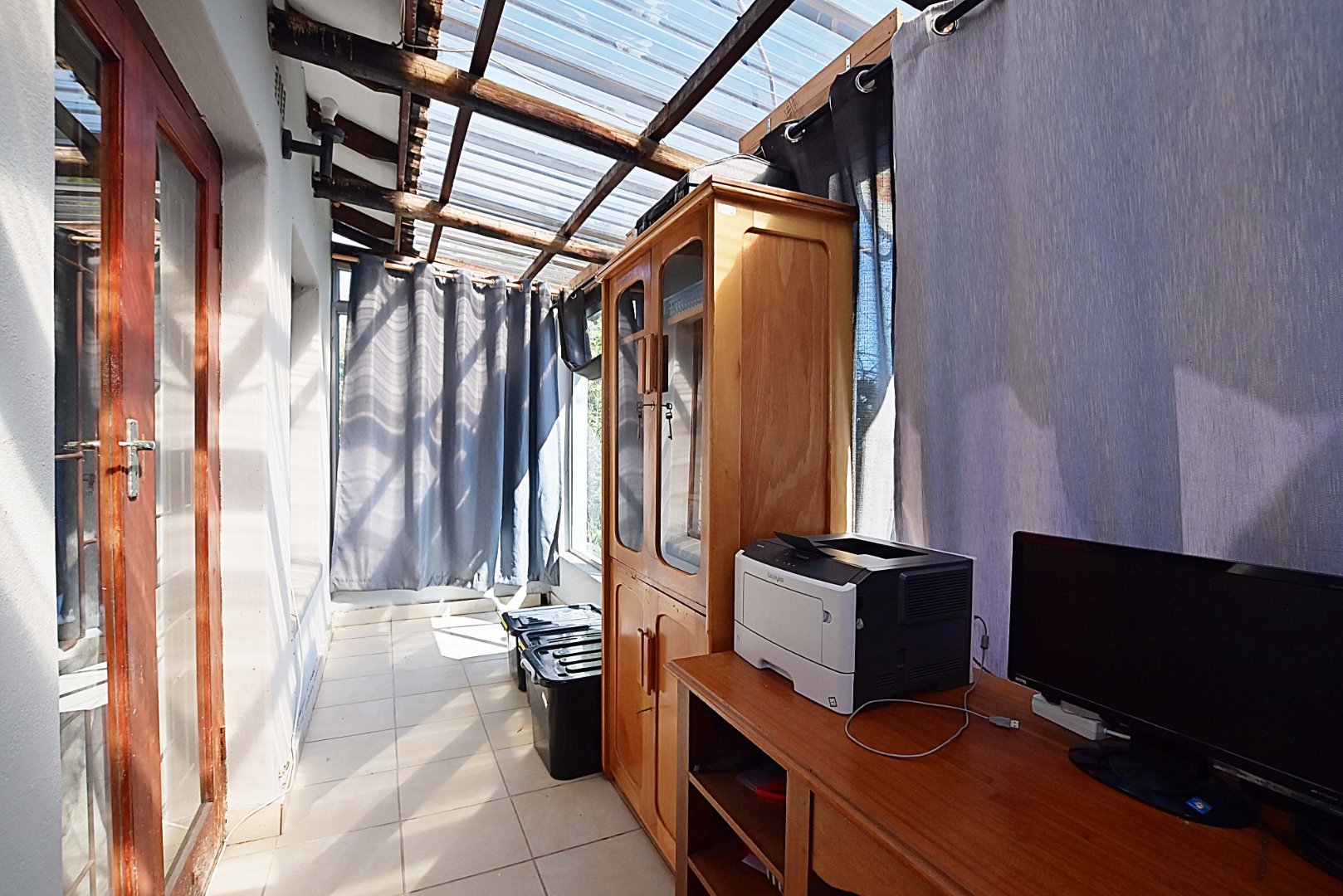 The balcony off the main bedroom has been enclosed and is used as a home office.