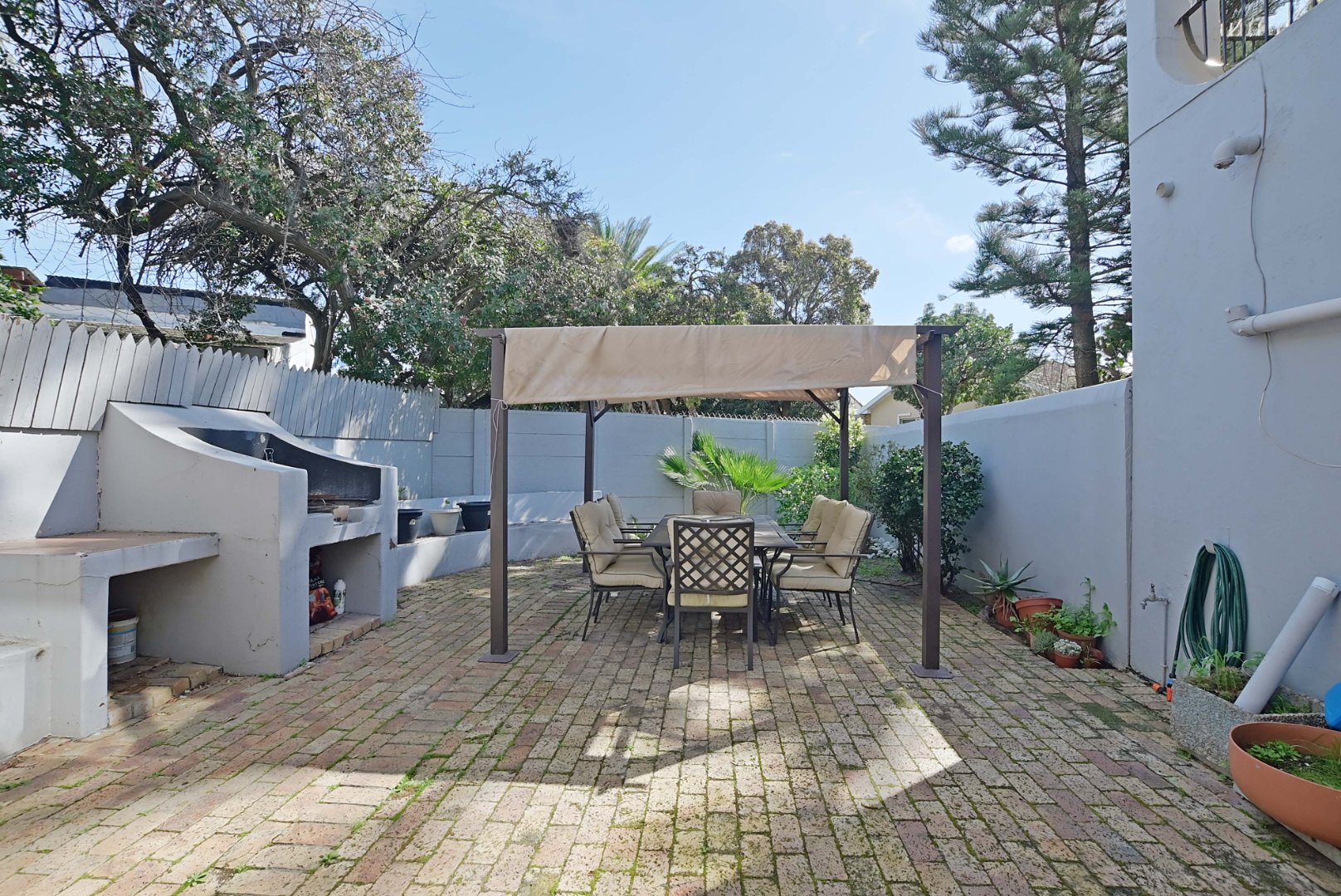 This large unit offers 3 spacious bedrooms, a private enclosed garden with a built-in braai, a safe space for entertaining, and a lovely area for children to play, as well as sunny spots for your pets to enjoy.