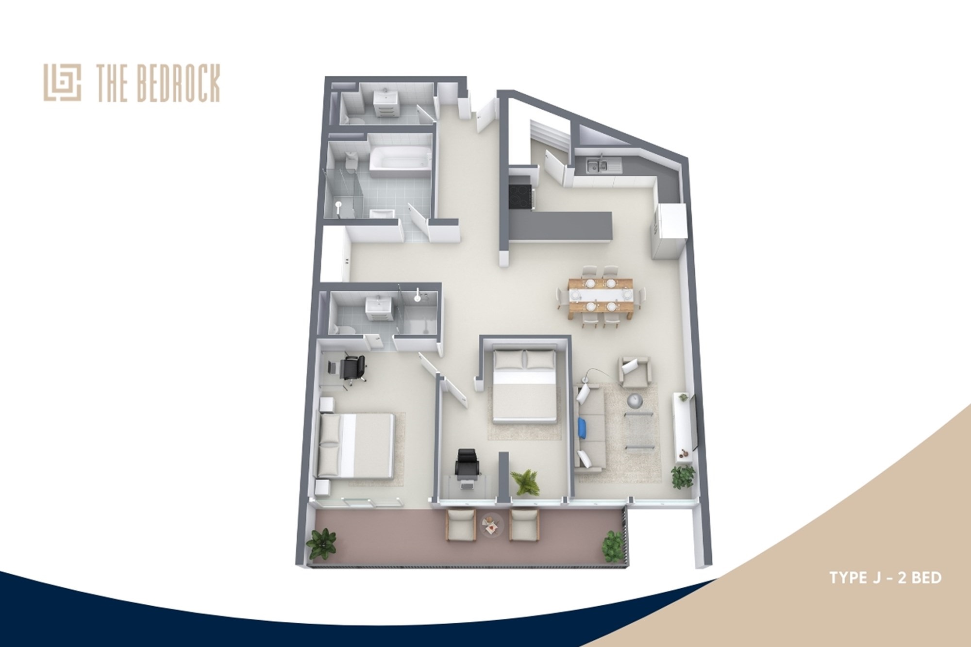 The Type J 2 bedroom apartment is crafted for modern living, offering a seamless blend of elegance, space, and functionality. The open-plan layout connects the living, dining, and kitchen areas, creating a welcoming space for both entertaining and everyday comfort.