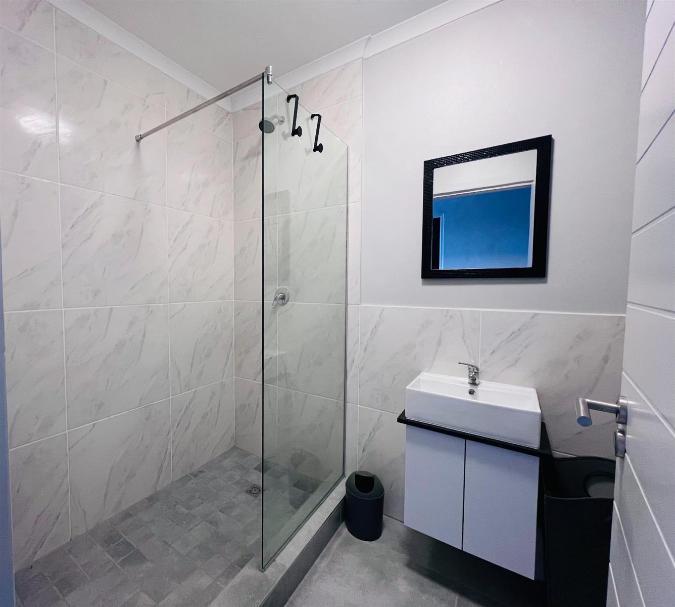 The kitchen boasts black granite tops, a gas stove, oven and extractor fan with ample cupboard space & 1 plumbing point. The bathroom has a large shower, basin and a toilet and the bedroom has stylish laminate flooring and built in cupboards.