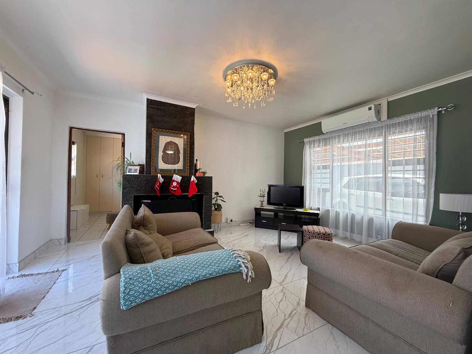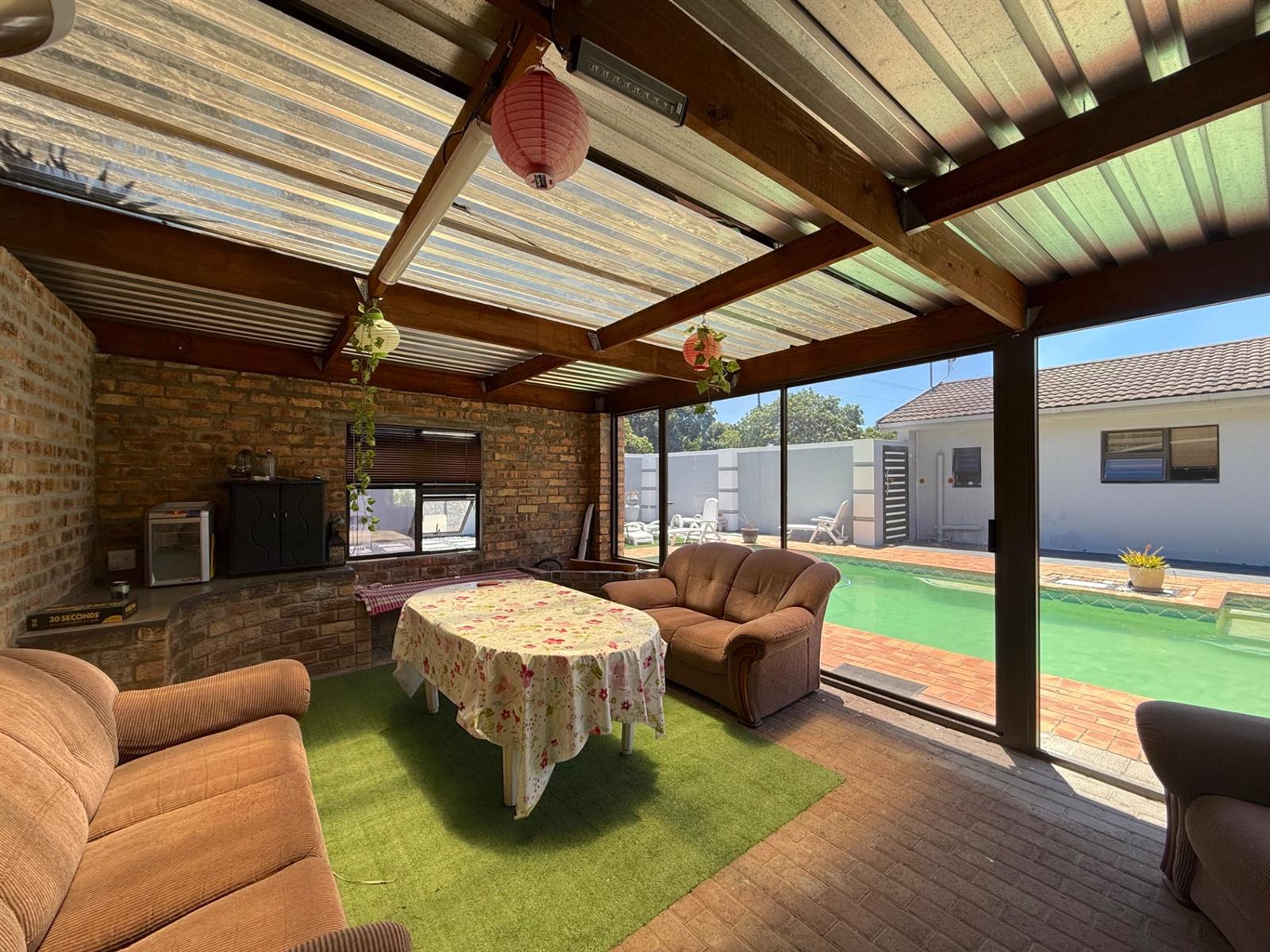 Comfort is ensured year-round with a cosy fireplace for chilly winter evenings and air-conditioning for warm summer days. Outside, the massive yard is perfect for pets, and the swimming pool with pool house/braai room creates an excellent space for entertaining family and friends.