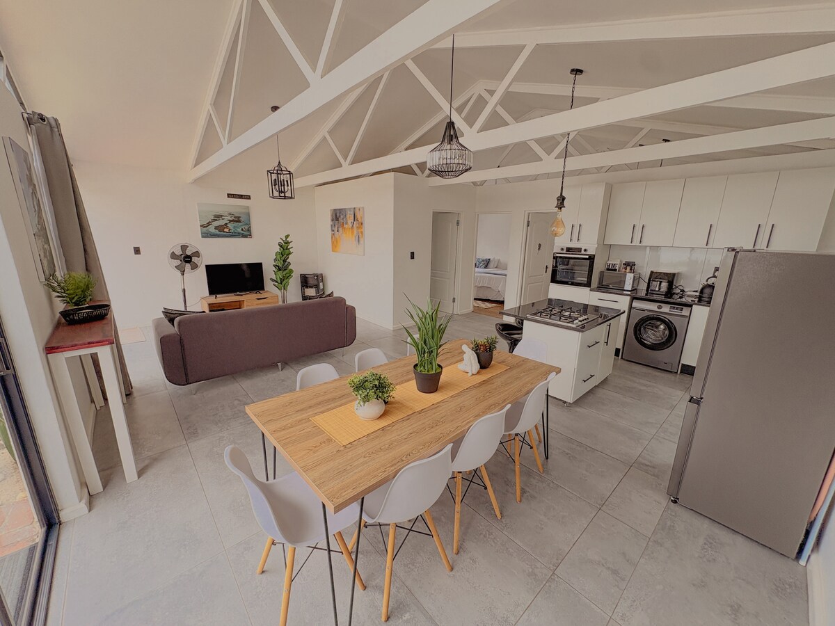 Welcome to Sea Breeze, a beautifully styled two-bedroom home in the heart of Blouberg, just minutes drive from the beach. Designed for comfort and ease, this light-filled space offers a warm, welcoming atmosphere with modern finishes throughout. Ideal for couples, families, or business travelers, the home provides a relaxed coastal base close to restaurants, and local attractions best for a small family for a getaway.