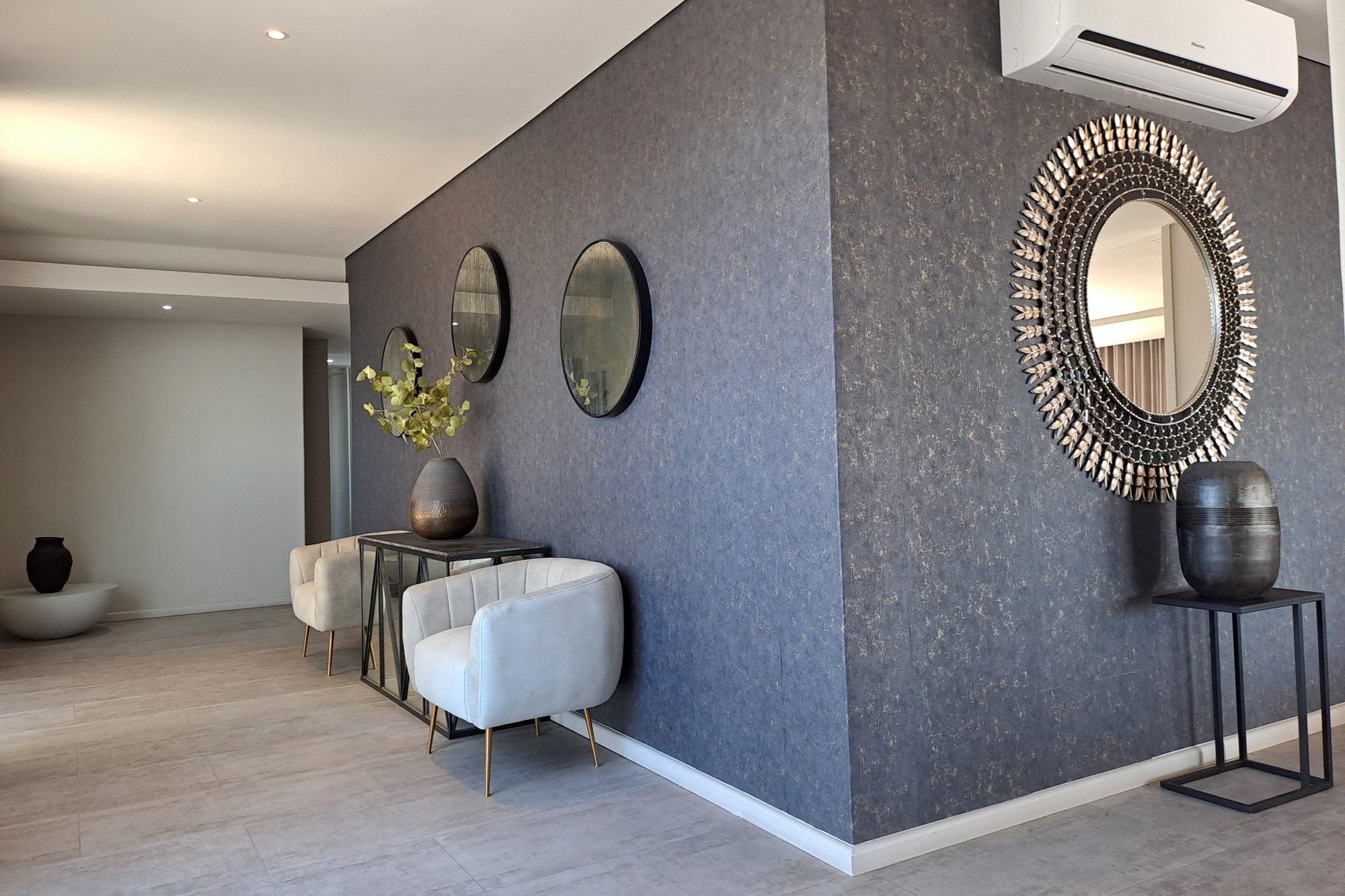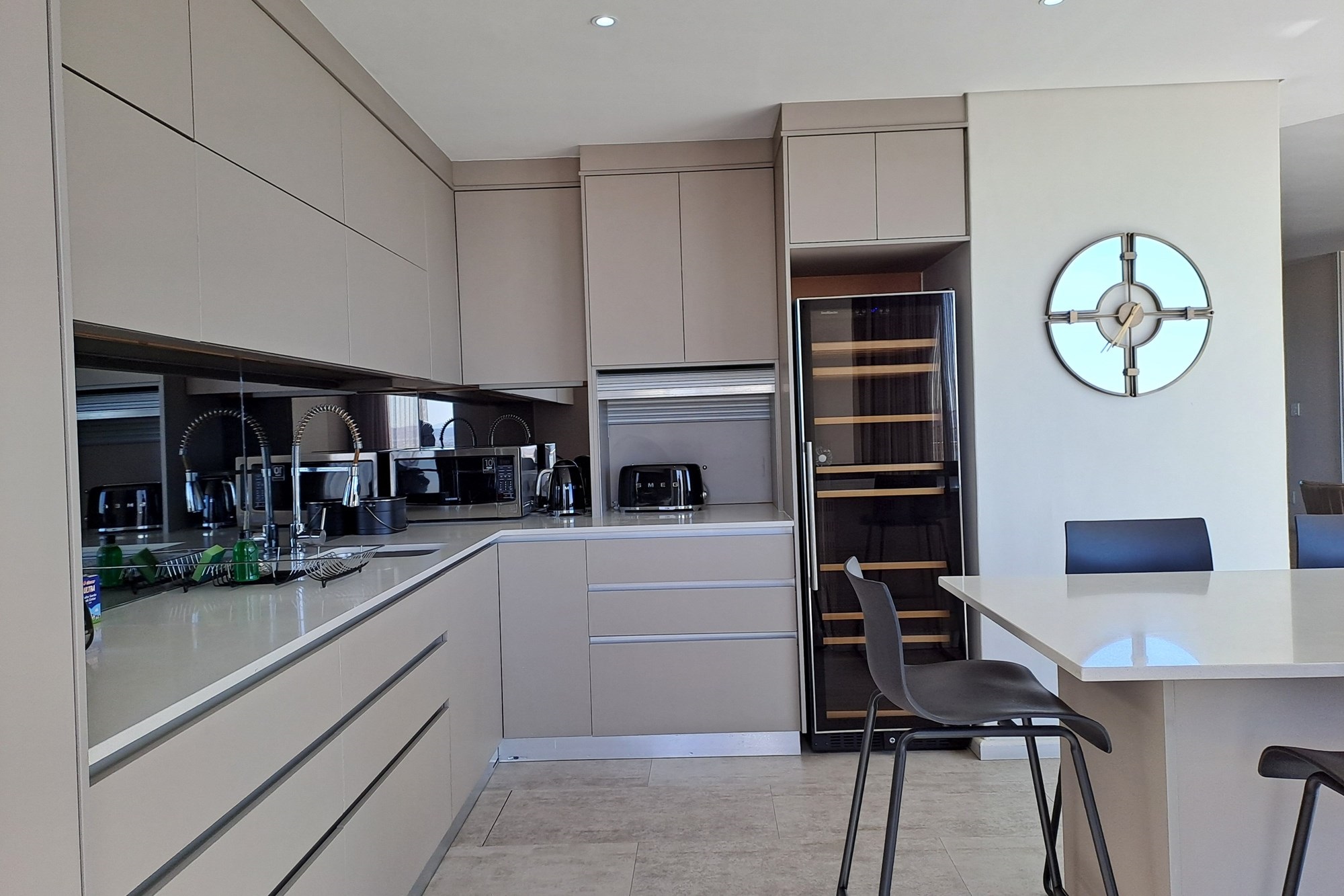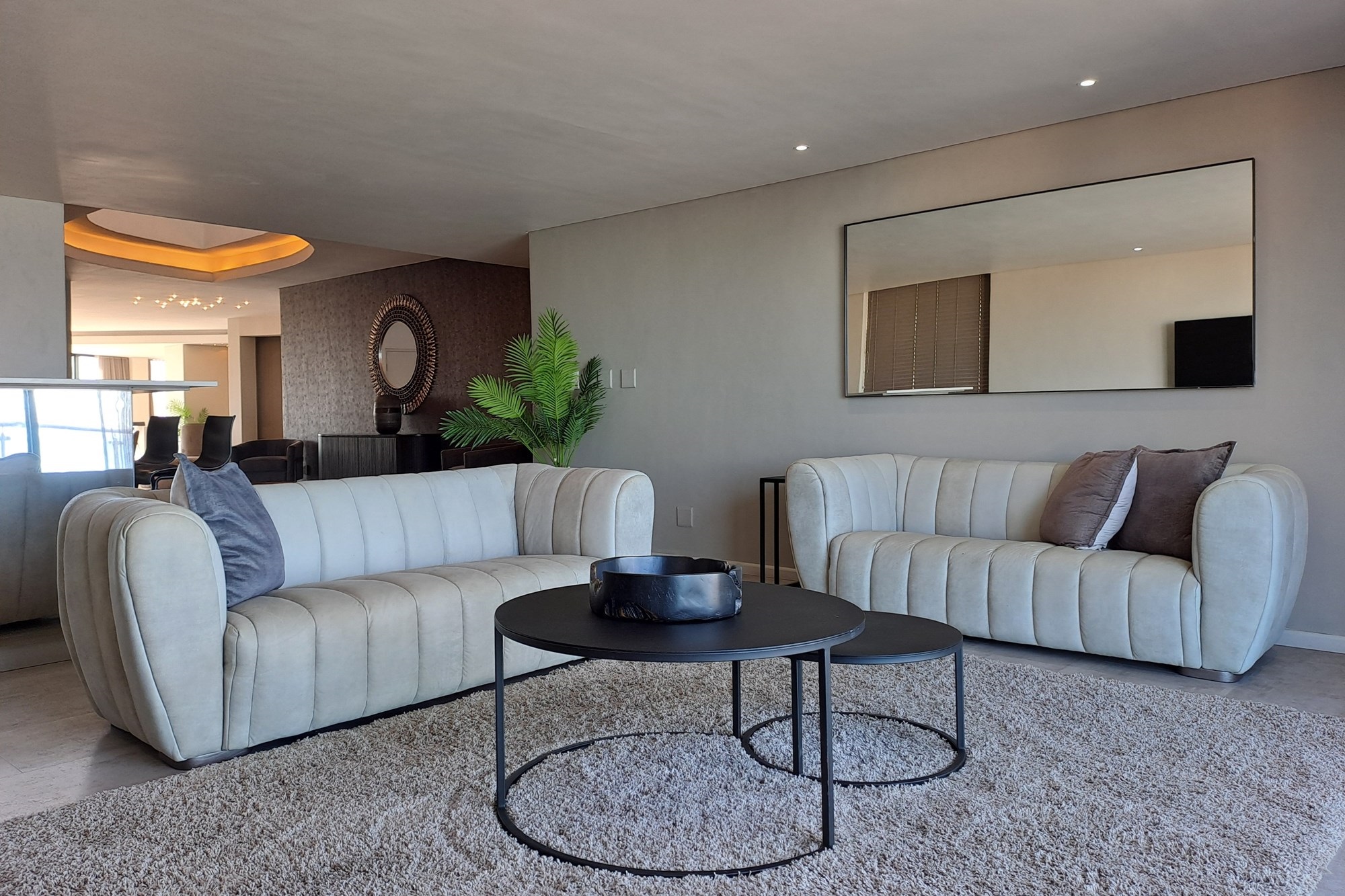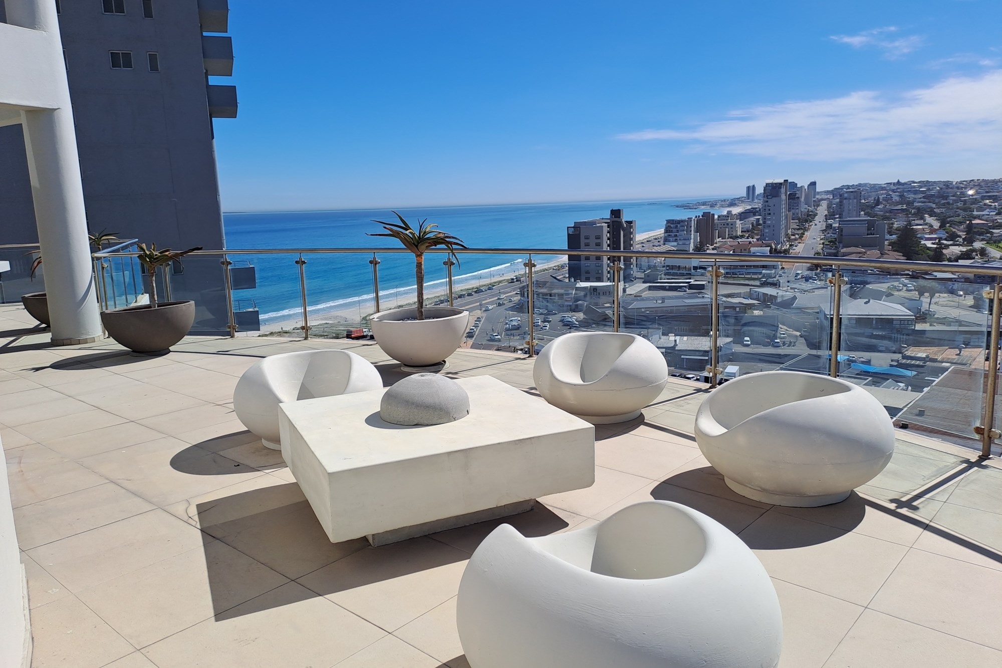 Luxury, beauty and elegance sums up this modern fully furnished 4-bedroom, 3-bathroom penthouse in the Beachfront, Blouberg. Spectacular views of the ocean and Table Mountain await you as the new owner. The open plan kitchenette, living -and dining room ensure that you have everything needed to make life very comfortable. A separate entertainment area adjacent to the large entrance foyer provides a unique area for business meetings or just cozy relaxation. A fully equipped kitchen with a stove and hob, double door fridge, dishwasher, washing machine and tumble drier as well as a scullery, completes the picture. The unit is on the 11th floor and is accessed by a lift which gives access to the 11th floor only by means of your own private key. The lift stops in the large reception area of the penthouse, thereby ensuring privacy, safety and security. Two balconies afford breathtaking views of the ocean, Table Mountain and the Tygerberg Hills area. On-site amenities include the use of an indoor/outdoor swimming pool and gym on the rooftop with a large outdoor deck area from where you can enjoy the stunning views; or just relax in one of the deck chairs, whilst soaking up the sun. A 24hour concierge service is available, as well as an on-site hair dresser. The beach is a stone through away, whilst restaurants, shops and medical facilities / hospital are in close proximity. The apartment is a great investment opportunity and is Airbnb friendly. An in-house rental management option is available to assist, should you choose to generate an income from it. The price includes VAT, so there is no transfer duty payable.