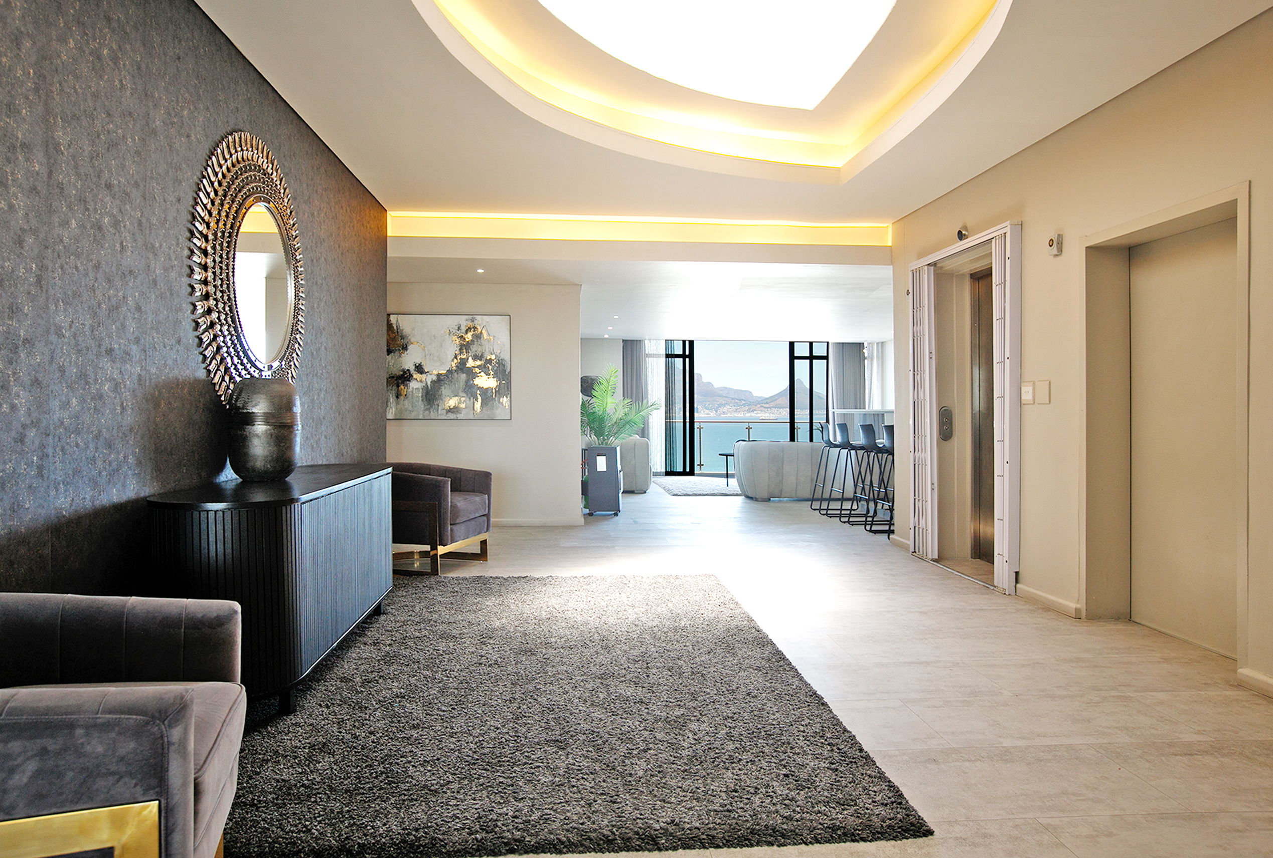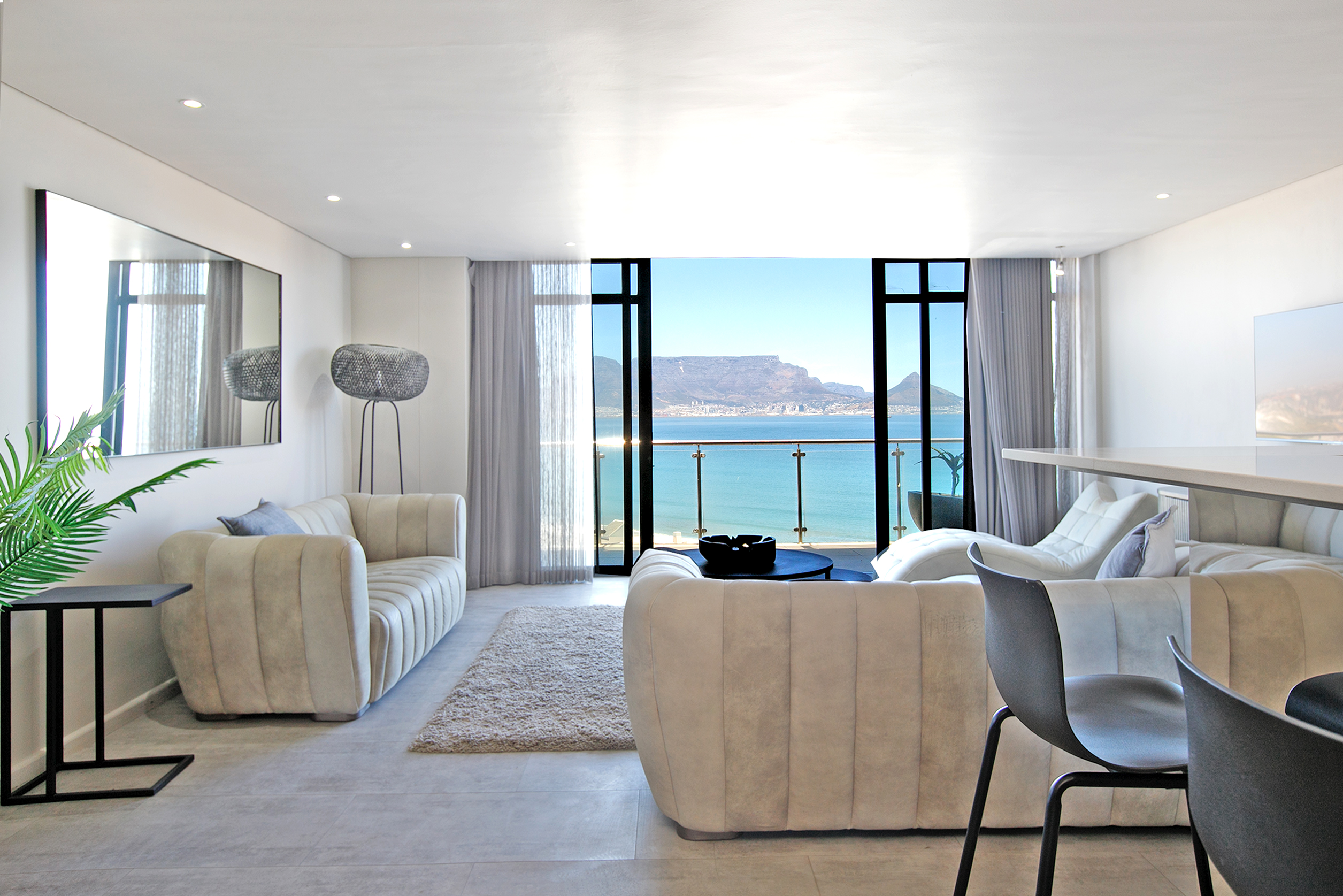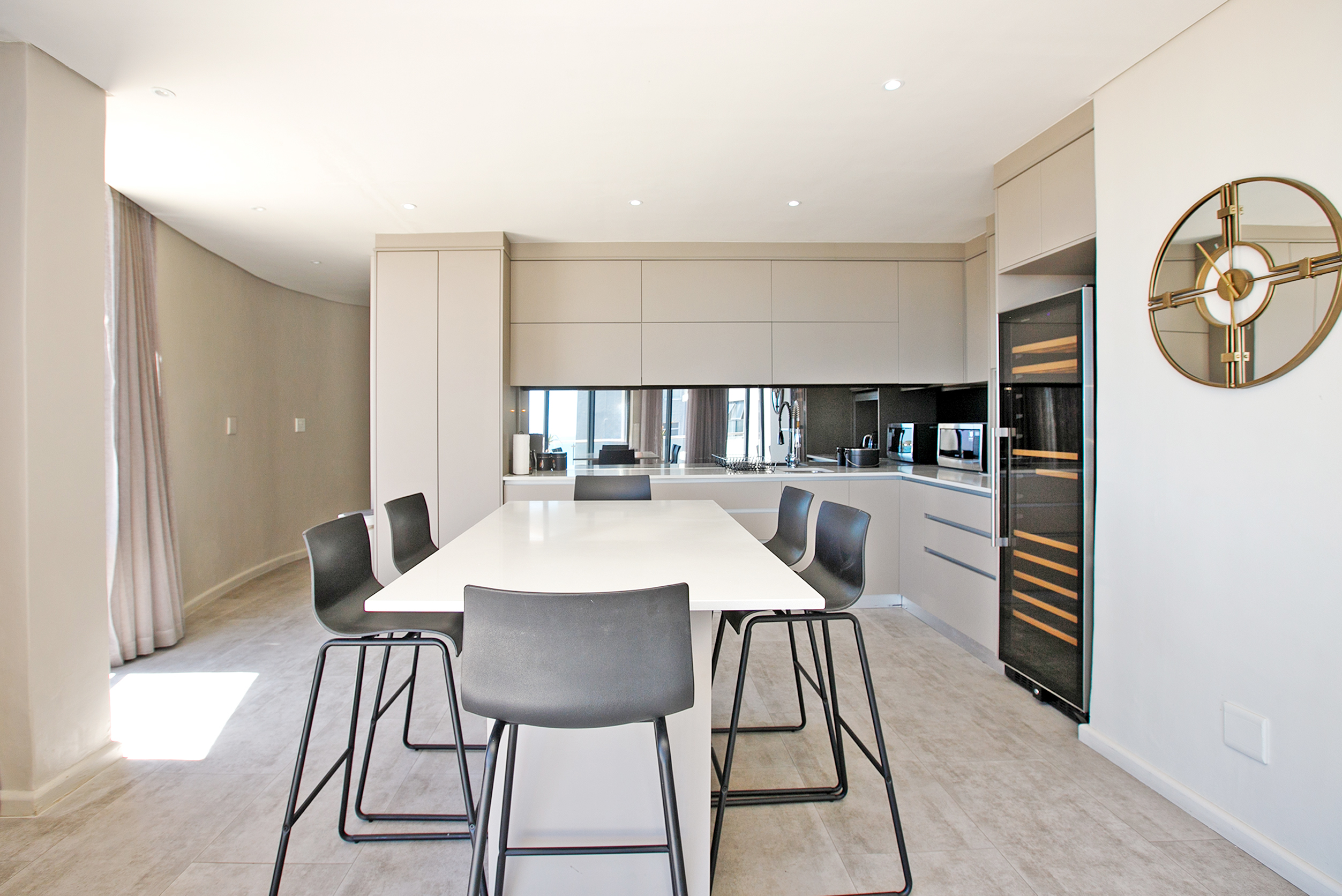 This exquisite penthouse offers a unique atmosphere, featuring stunning 360-degree views of Table View Mountain, the ocean, and Durbanville Hills, all accessible from the generous wrap-around balconies. The open-plan living areas are bathed in natural light, creating an expansive sense of space and freedom.