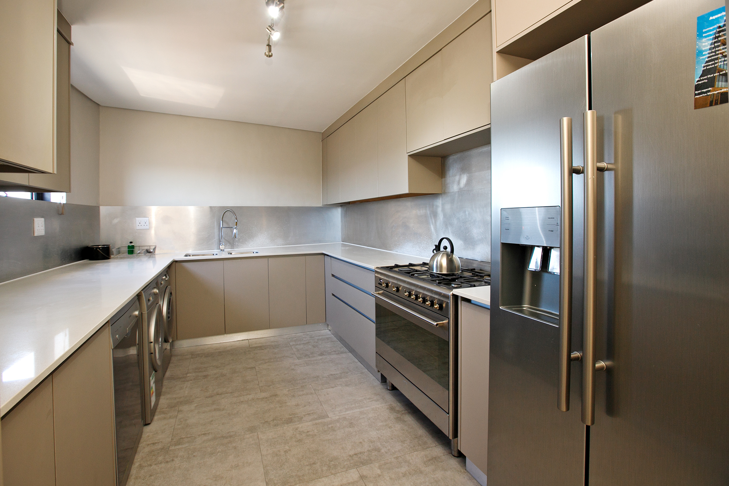 With four generously sized bedrooms, the main suite includes a sumptuous en-suite bathroom. The penthouse comprises four bathrooms in total, three of which are en-suite, all showcasing high-end finishes. The entertainer's open-plan kitchen is outfitted with premium appliances and a separate scullery, making it ideal for hosting gatherings and seamless living.