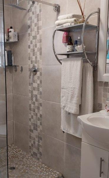 Enjoy a stylish, modern bathroom featuring a walk-in shower.