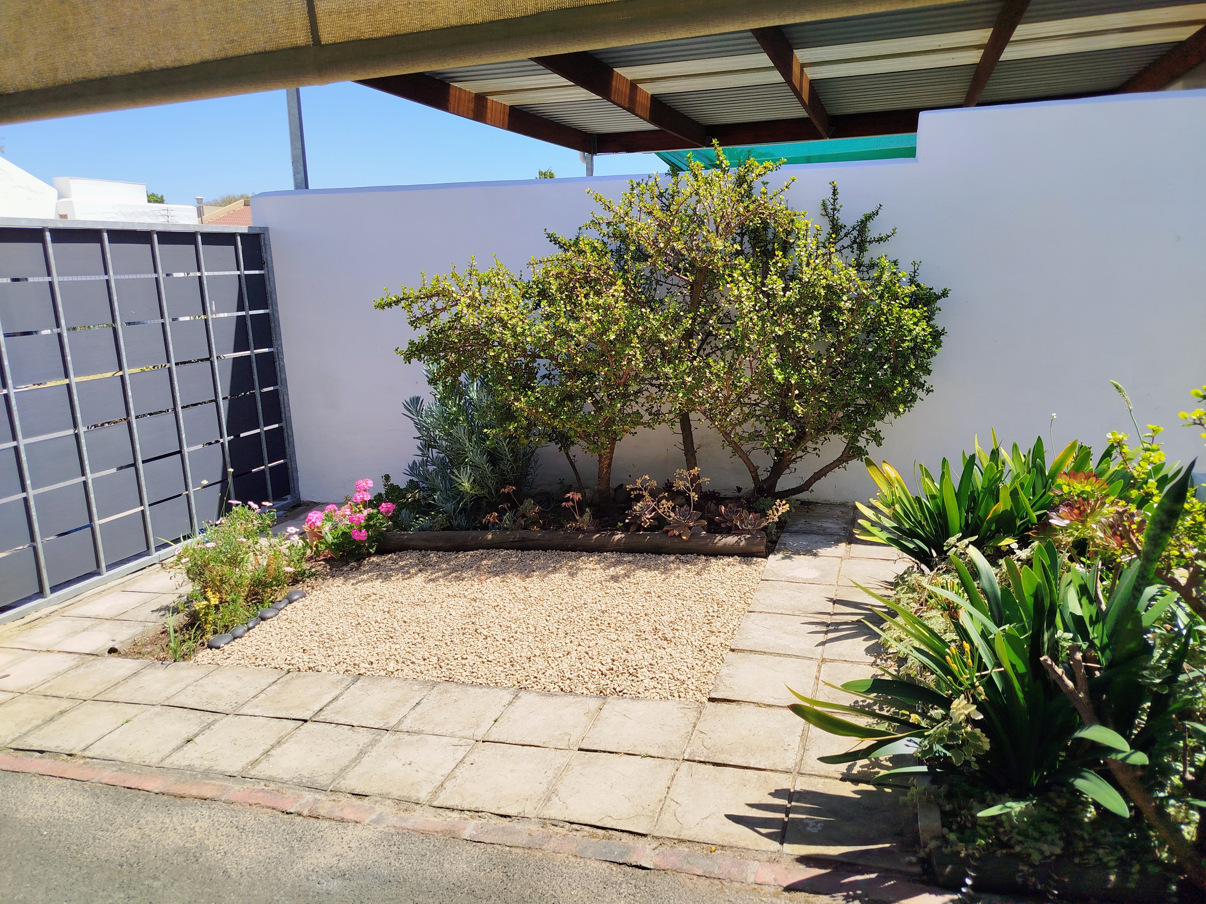This property is fully walled for added privacy and includes secure parking for two vehicles behind a remote-controlled gate with shade cloth.