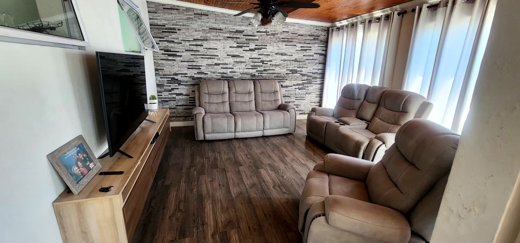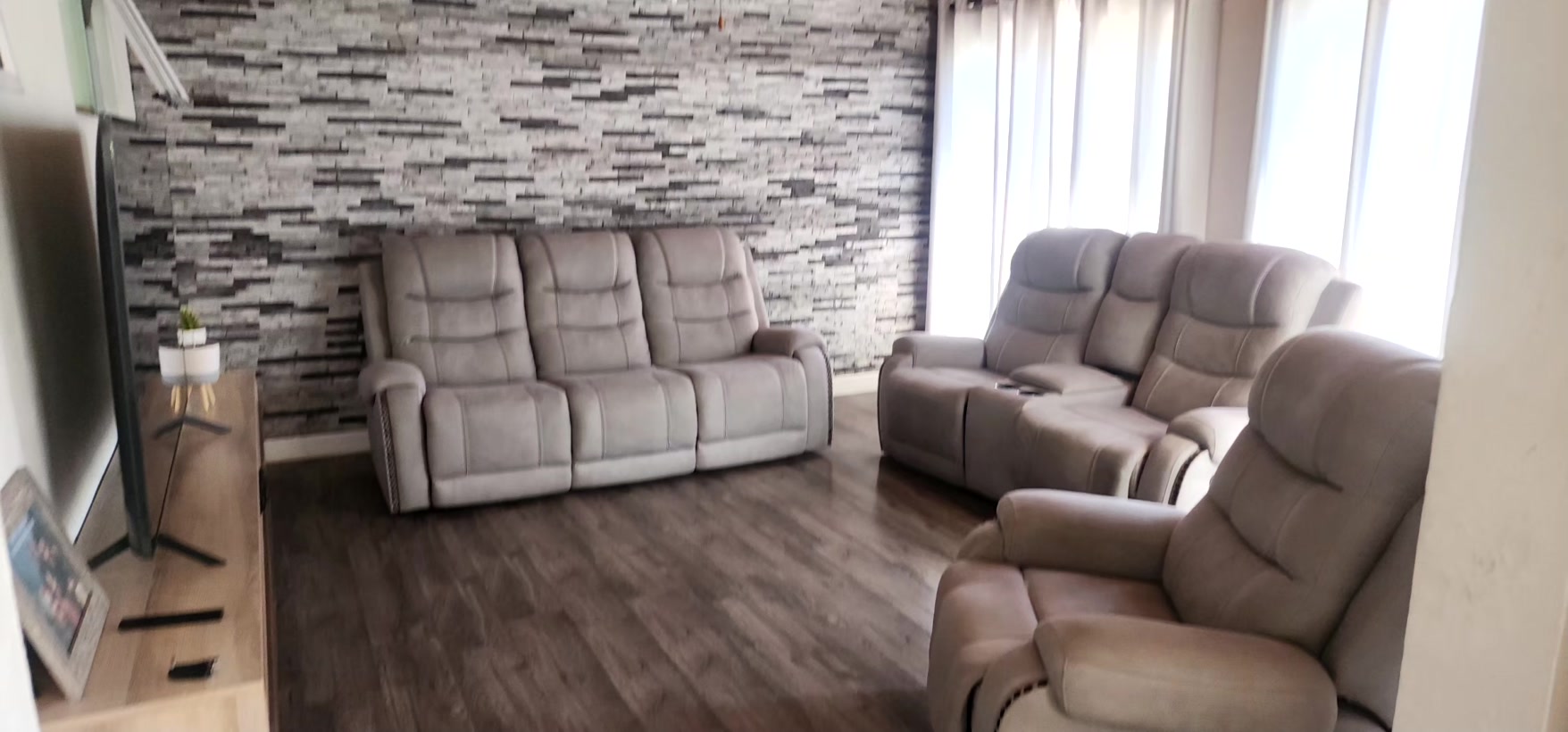Stunning 3-bedroom home for sale at 48 Matterhorn crescent, Tafelsig. Located close to the Kilimanjaro and the New apostolic church. This home is ready to move in and offers 3 well sized bedrooms all fitted with built in cupboards, open plan lounge and dining room with fully fitted kitchen.
