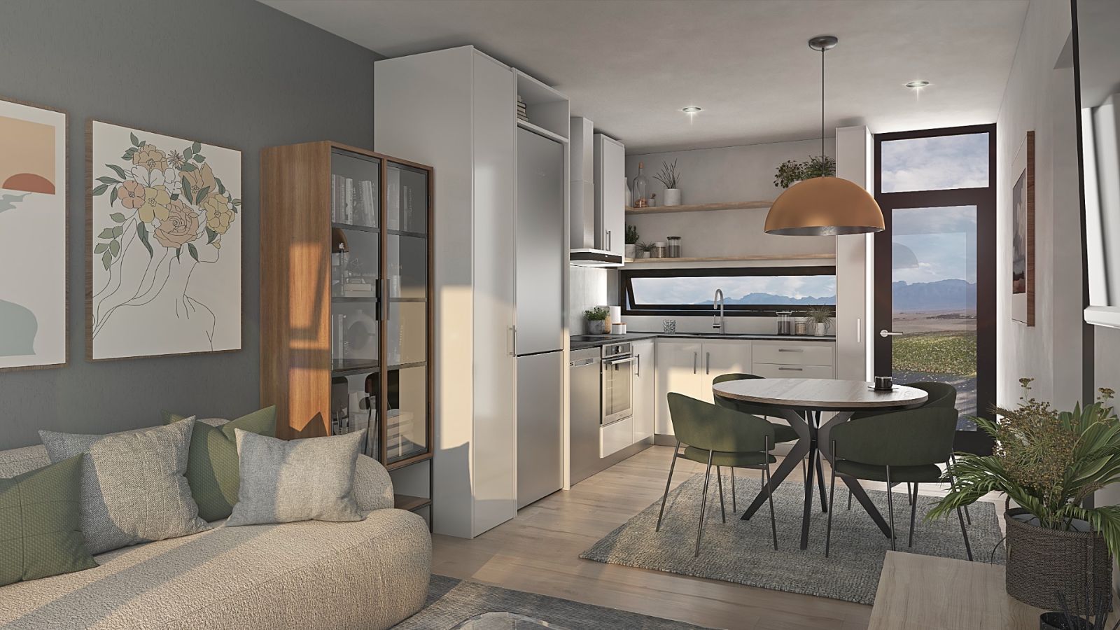 Open-Concept Kitchen, Dining & Lounge Area