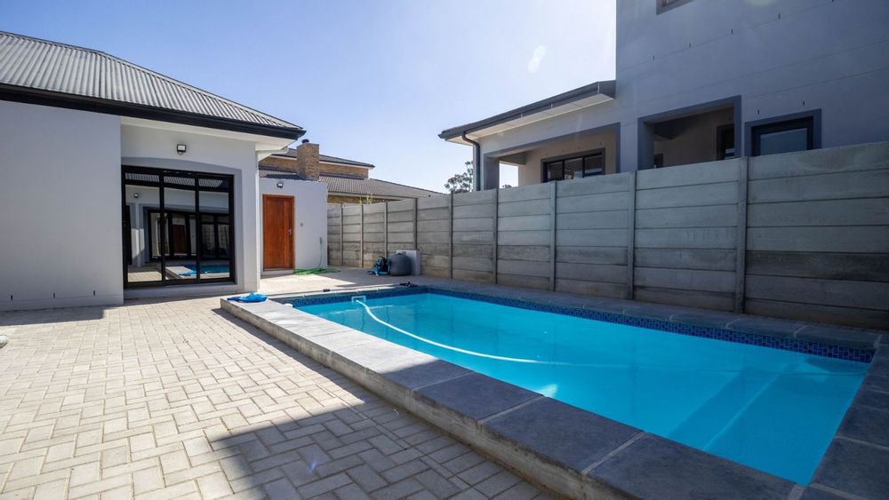 Outdoor amenities include a private swimming pool, an enclosed braai room, and a pet-friendly garden, complemented by a separate laundry area for added convenience.