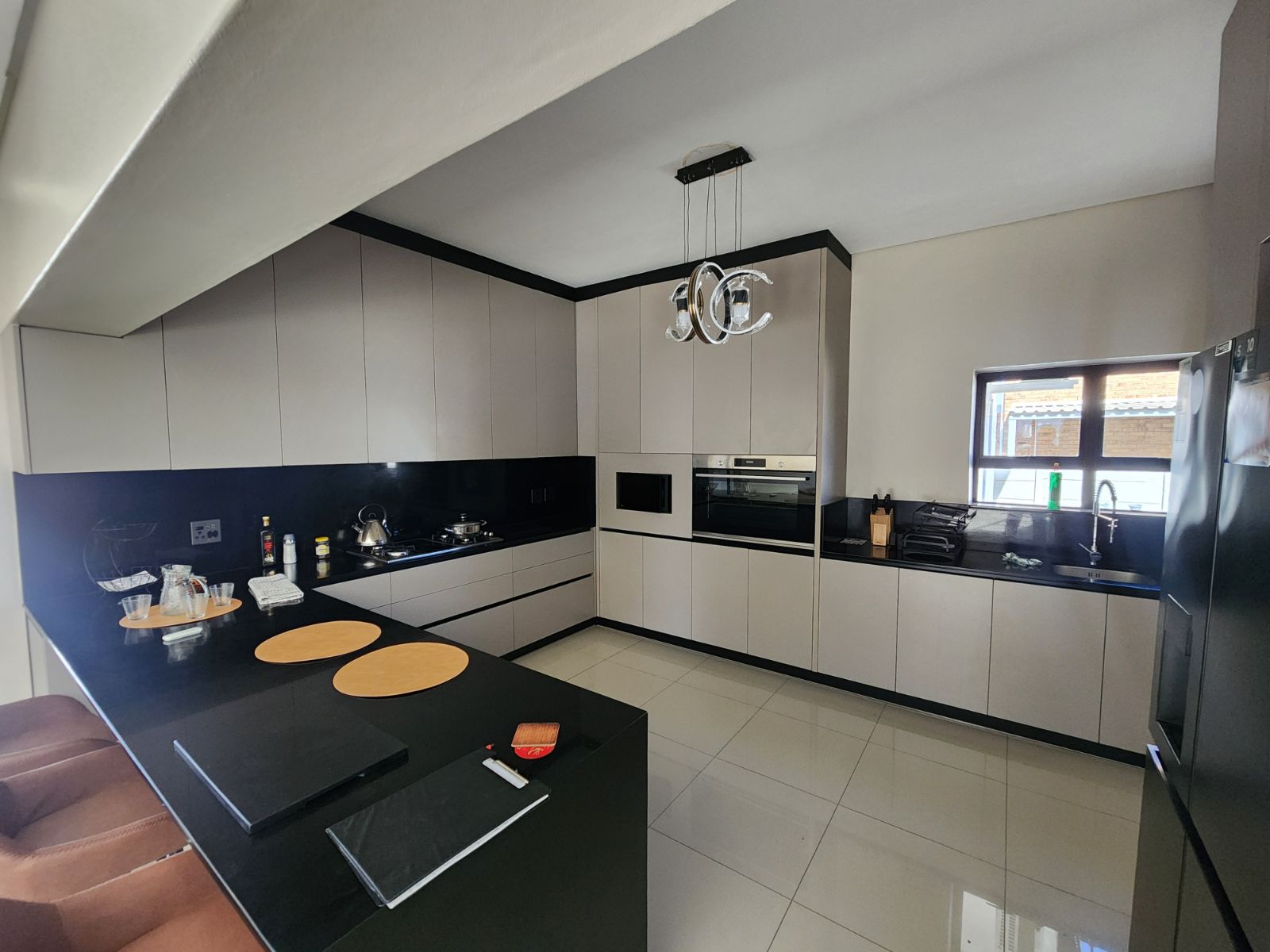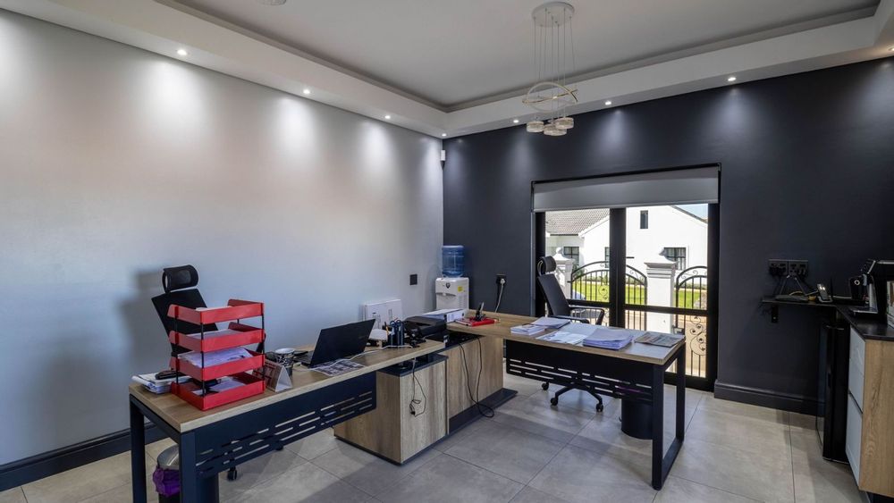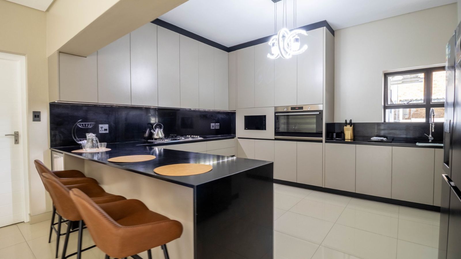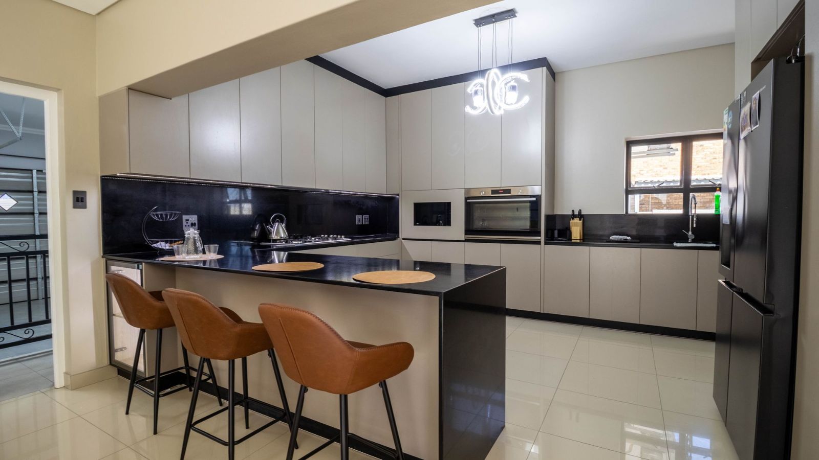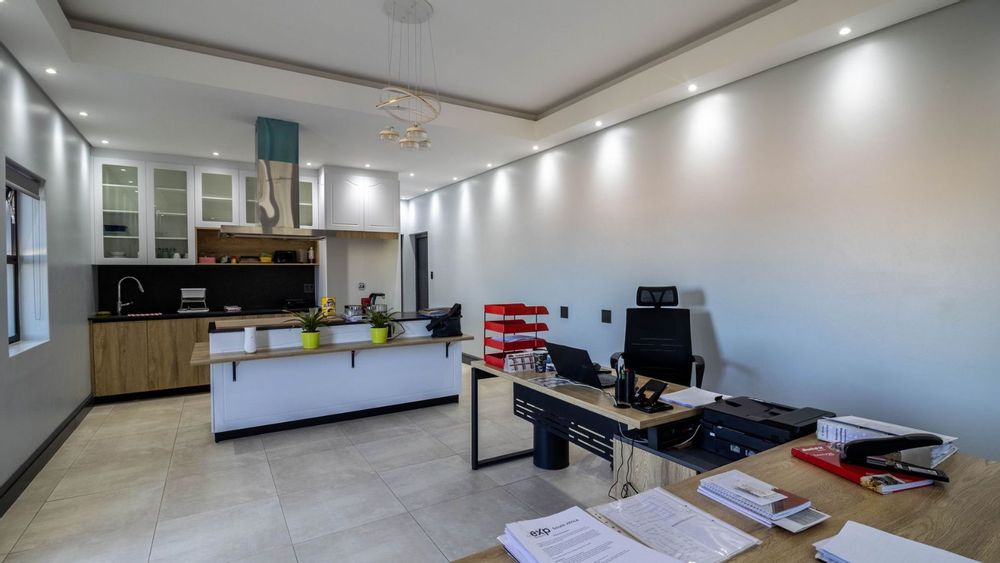 The entrance invites you into this 410 sqm under roof house, it is designed to accommodate modern family living with ease. A triple garage with a paved driveway set the tone for the residence. Inside, a seamless open-plan layout connects two lounges and two dining areas, providing ample space for both relaxed family living and formal entertainment.