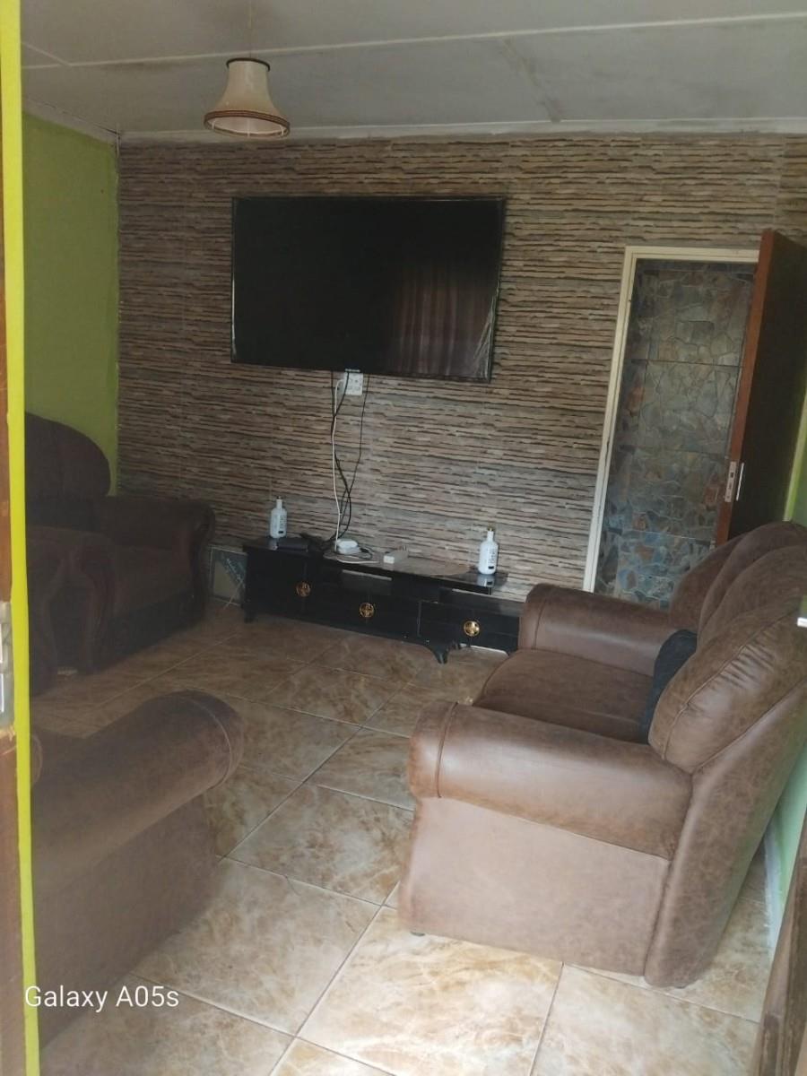 The main residence has been tastefully upgraded and features four bedrooms, a modern kitchen with built-in cupboards, a welcoming lounge enhanced with stylish cladding finishes, and a neatly tiled bathroom with toilet and basin. Tiled floors throughout and new PVC ceilings complete the home’s fresh, contemporary appeal.