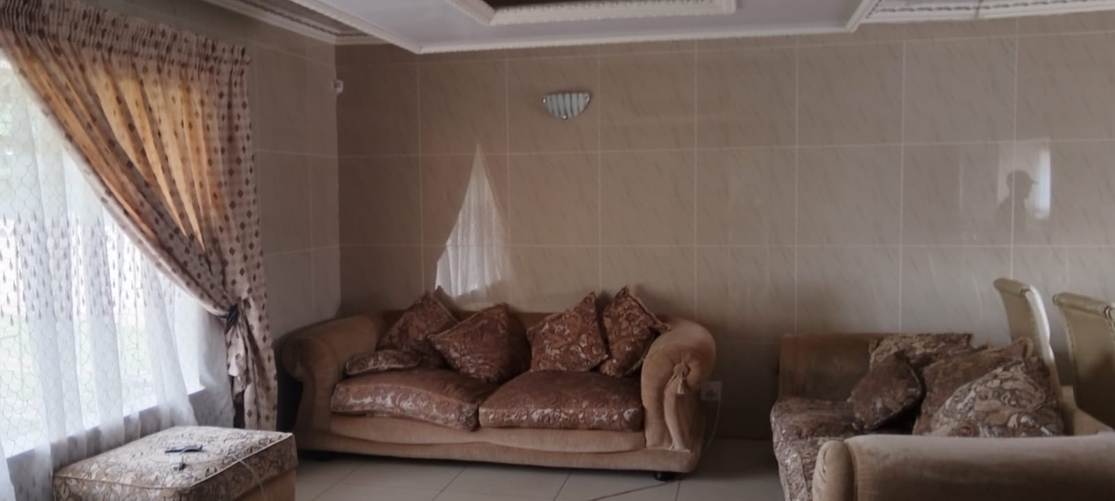 The house is newly renovated vated with nice ceilings and tiled through out.