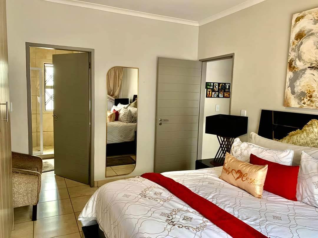 Discover your dream home in this beautifully finished 3 bedroom house, offering the perfect blend of comfort and modern luxury. The spacious open-plan kitchen flows seamlessly into the lounge, creating a warm and inviting space for family gatherings. The main bedroom features a luxurious en-suite, providing a private sanctuary to unwind with a double garage, fibre internet ready and 24/7 security guards at the gate. This home ensures convenience and peace of mind. The beautiful garden is a pet-friendly paradise, perfect for both relaxation and play. This is the ultimate in a stylish, secure living. Don't miss out.
