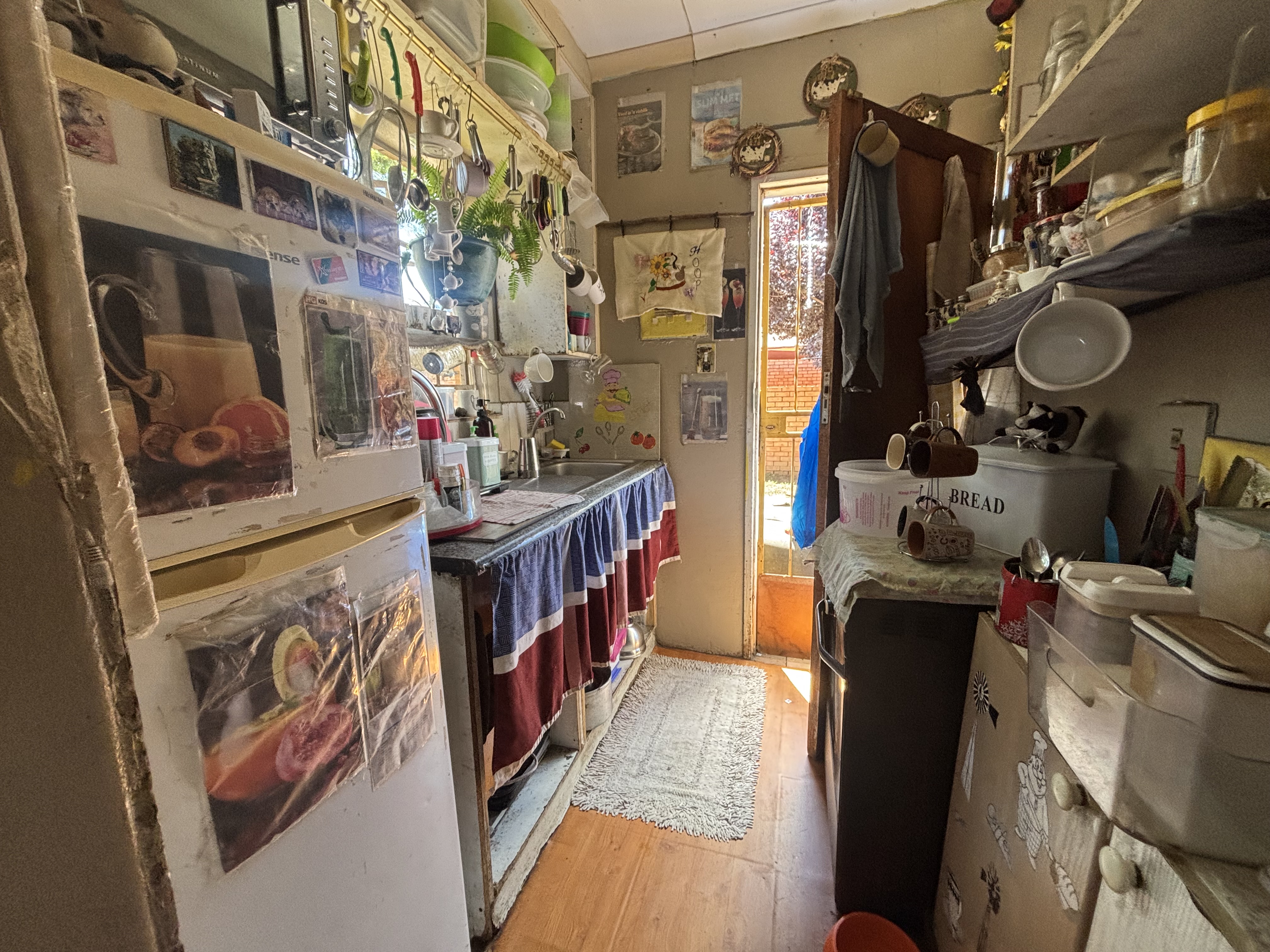This home is situated on a lovely stand, perfect should you want to extend or enlarge the home. Currently the home has a living room with a small kitchen(no stove). Two bedrooms and 1 bathroom.