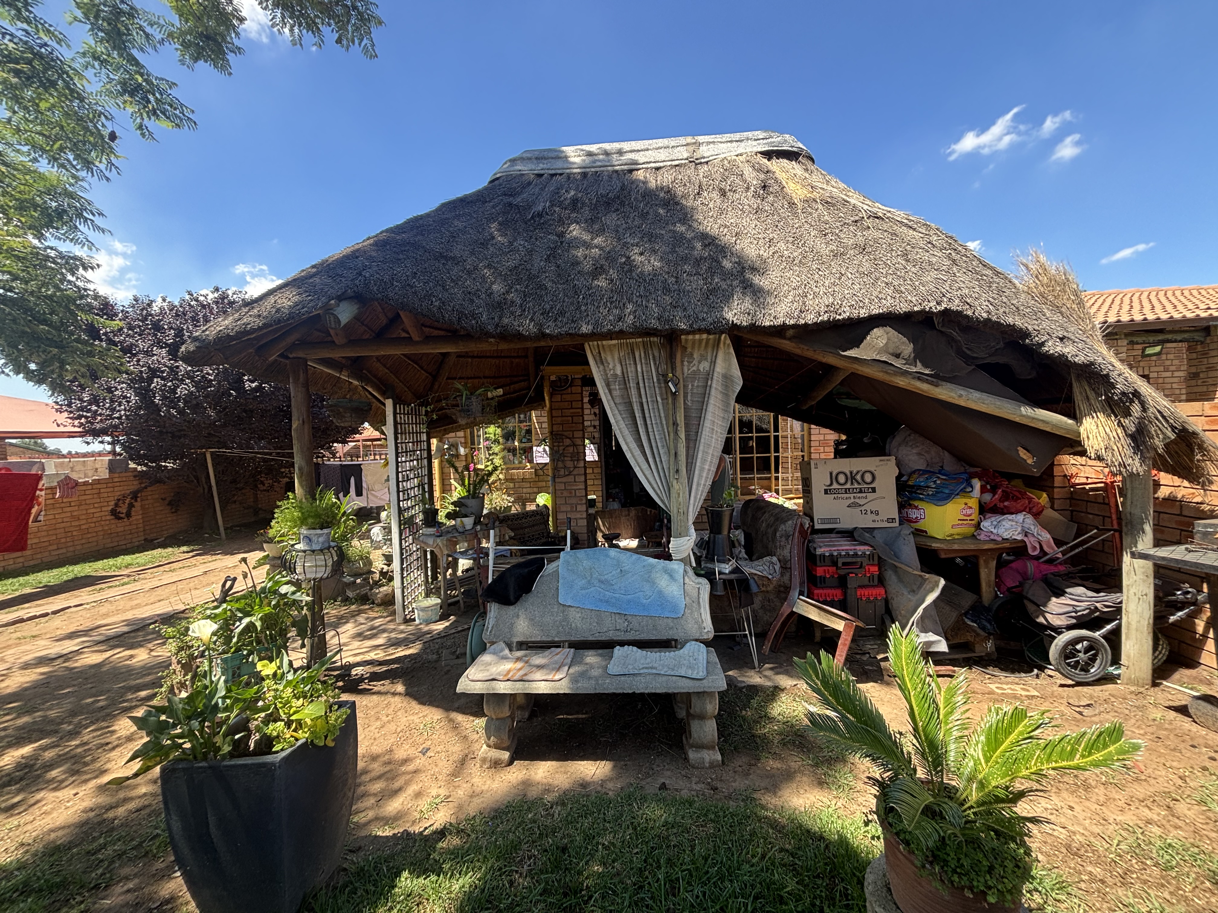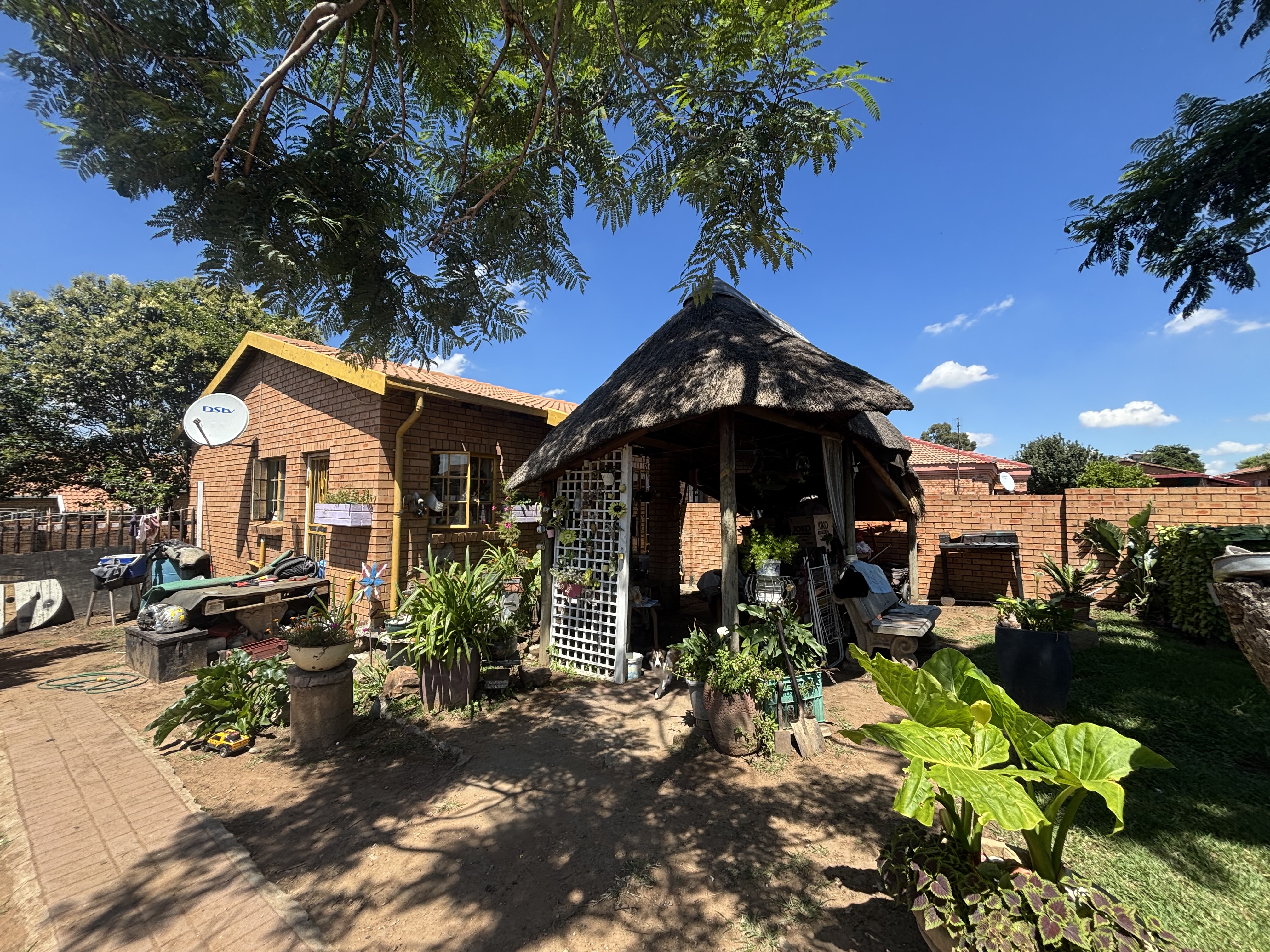 Outside a lapa and the home is fully walled. The home is well situated close to shops and schools.