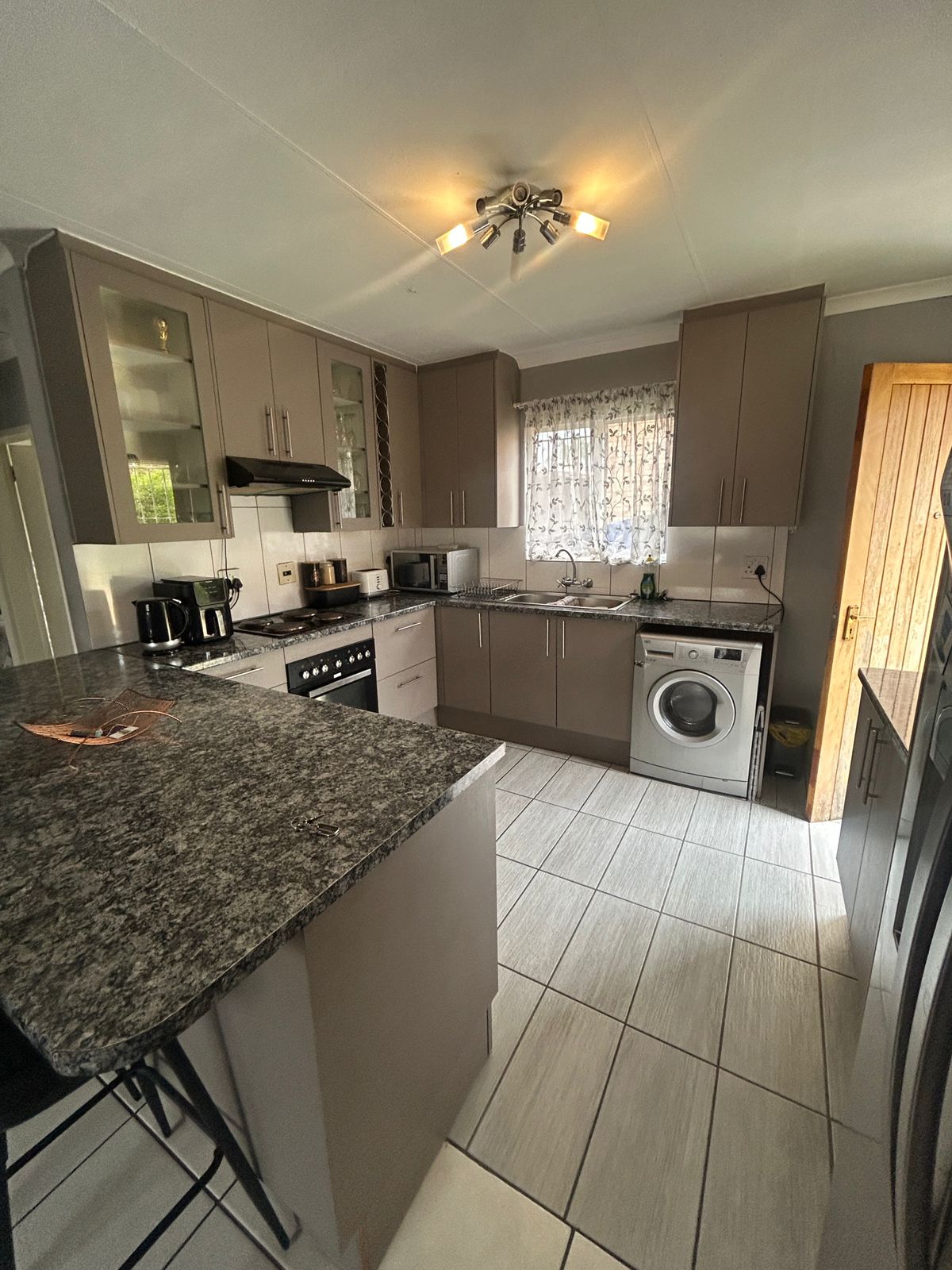 A stunning two-bedroom simplex in Terenure, featuring a stylish kitchen, comfortable lounge, and a modern bathroom. The property includes a double garage with sliding doors providing direct access into the home.