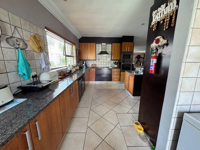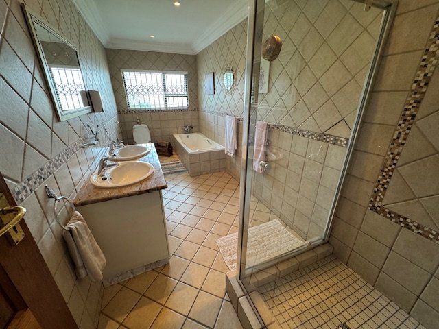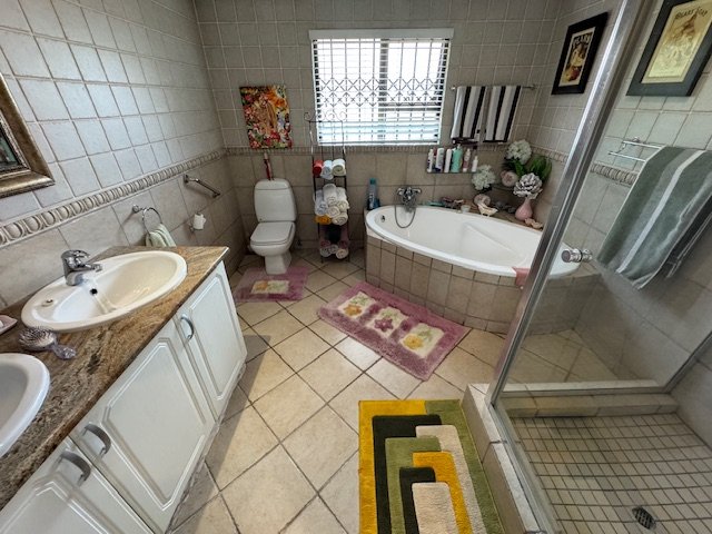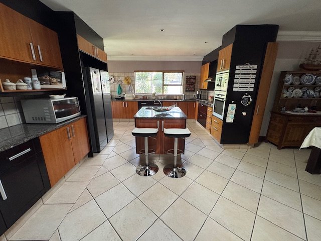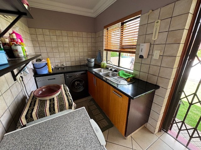 The well-equipped kitchen features a pantry and scullery, providing plenty of storage and convenience. The home includes three bedrooms, with two bathrooms to serve the needs of the household. While there are no built-in cupboards (BIC) in the bedrooms, the spacious rooms allow for flexible storage options.