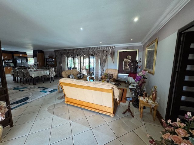 The property also offers a staff quarter, a carport, and four garages for ample parking. Outdoors, enjoy a refreshing pool, perfect for relaxation and entertaining guests.