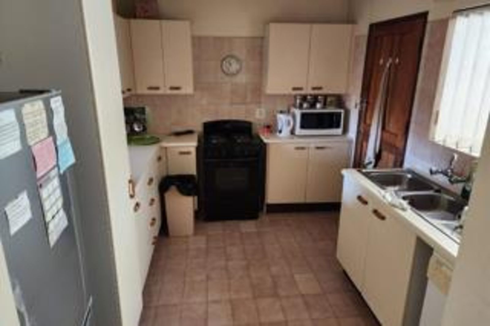 Kitchen: Modern, neat kitchen with ample built-in cabinetry, under-counter oven, and hob.