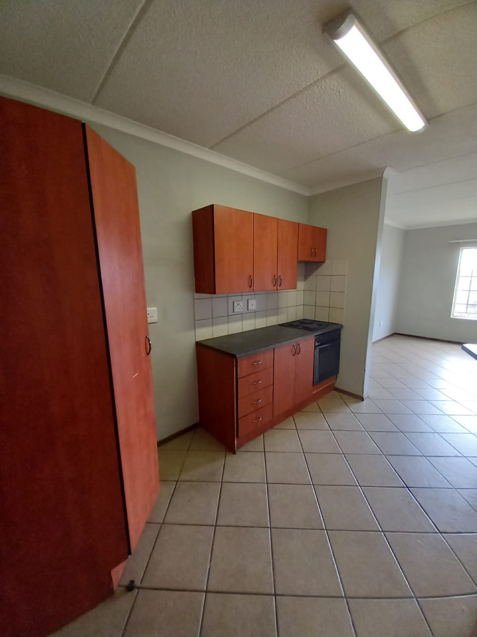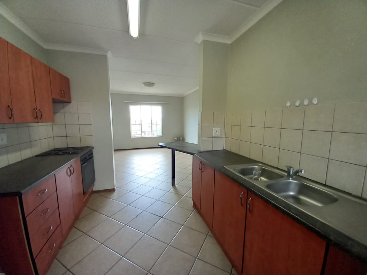 Inside, the unit boasts a kitchen equipped with ample cupboard space and an open-plan lounge. It includes two bedrooms, both with built-in cupboards, and a bathroom complete with a bath, shower, and basin.