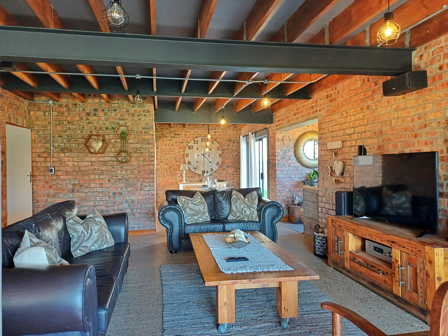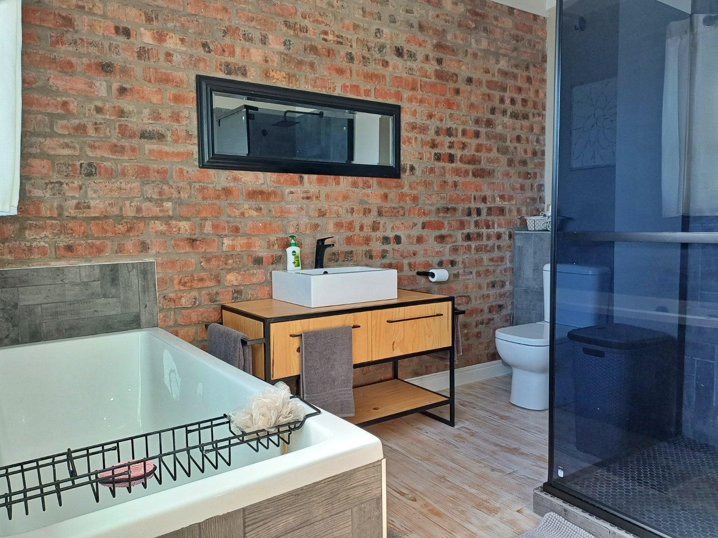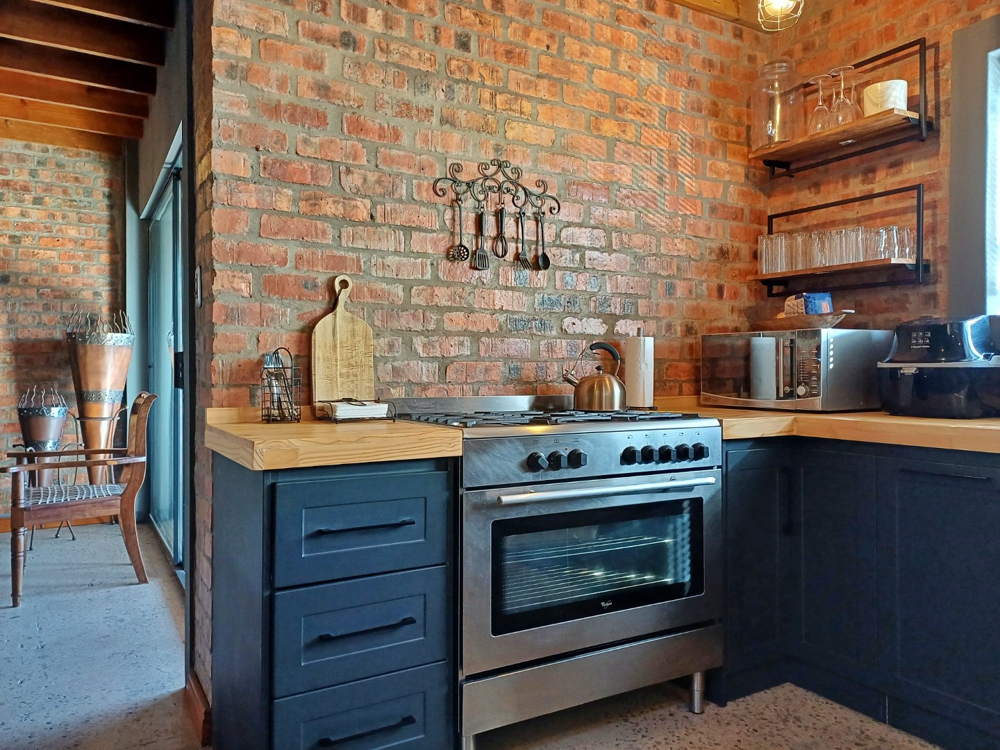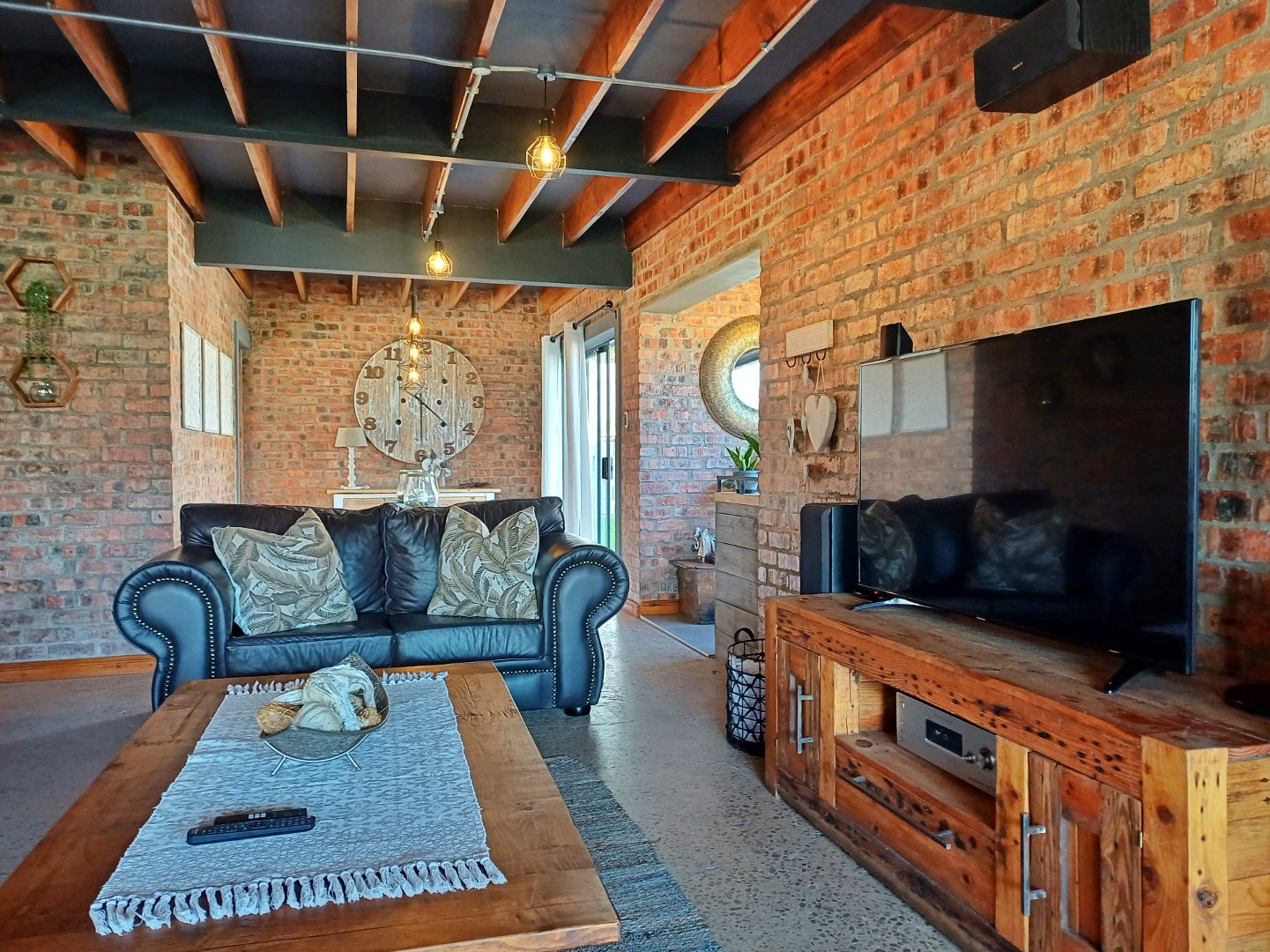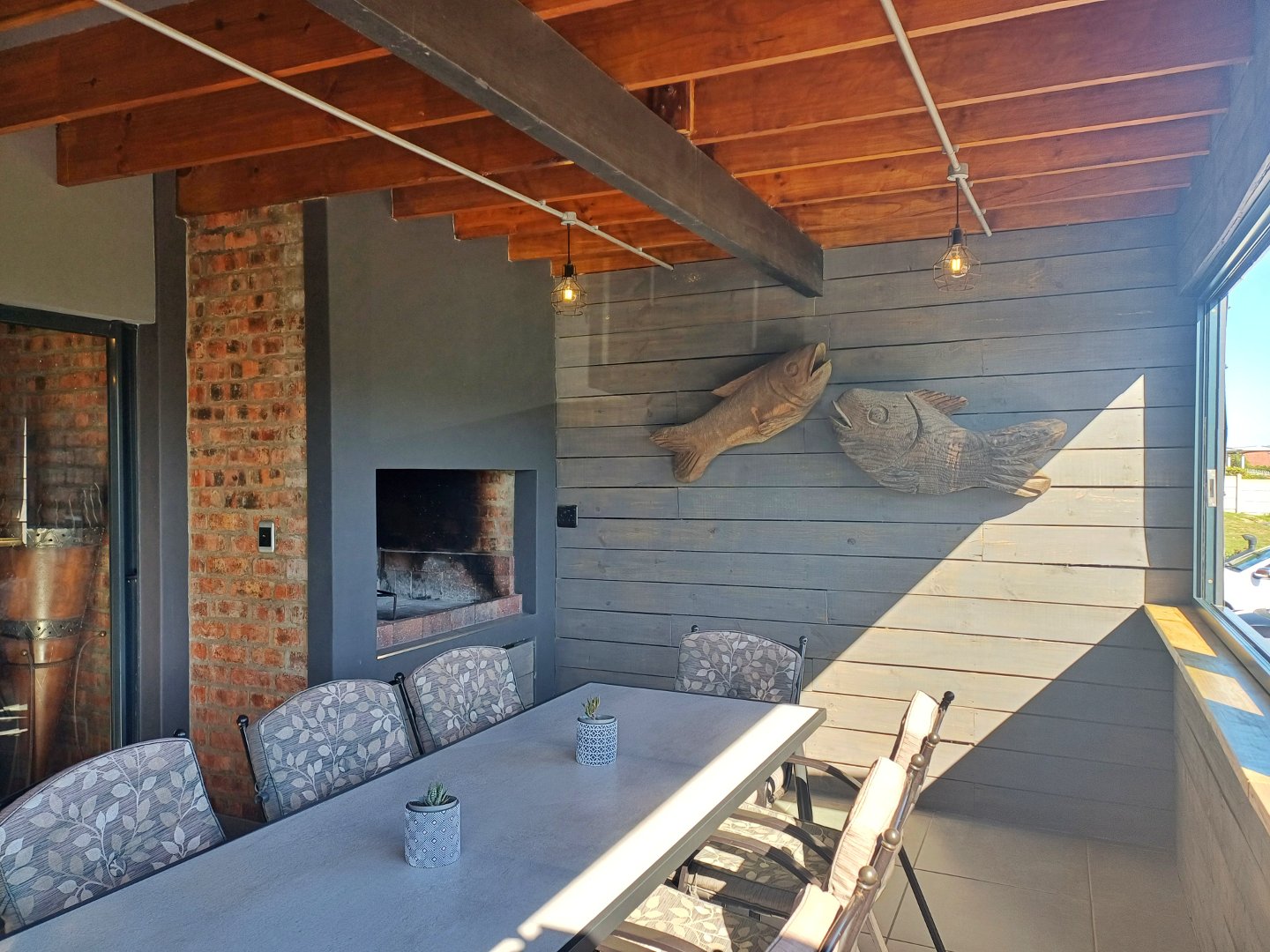 Step out onto the covered balcony with a braai area, offering a picturesque backdrop.