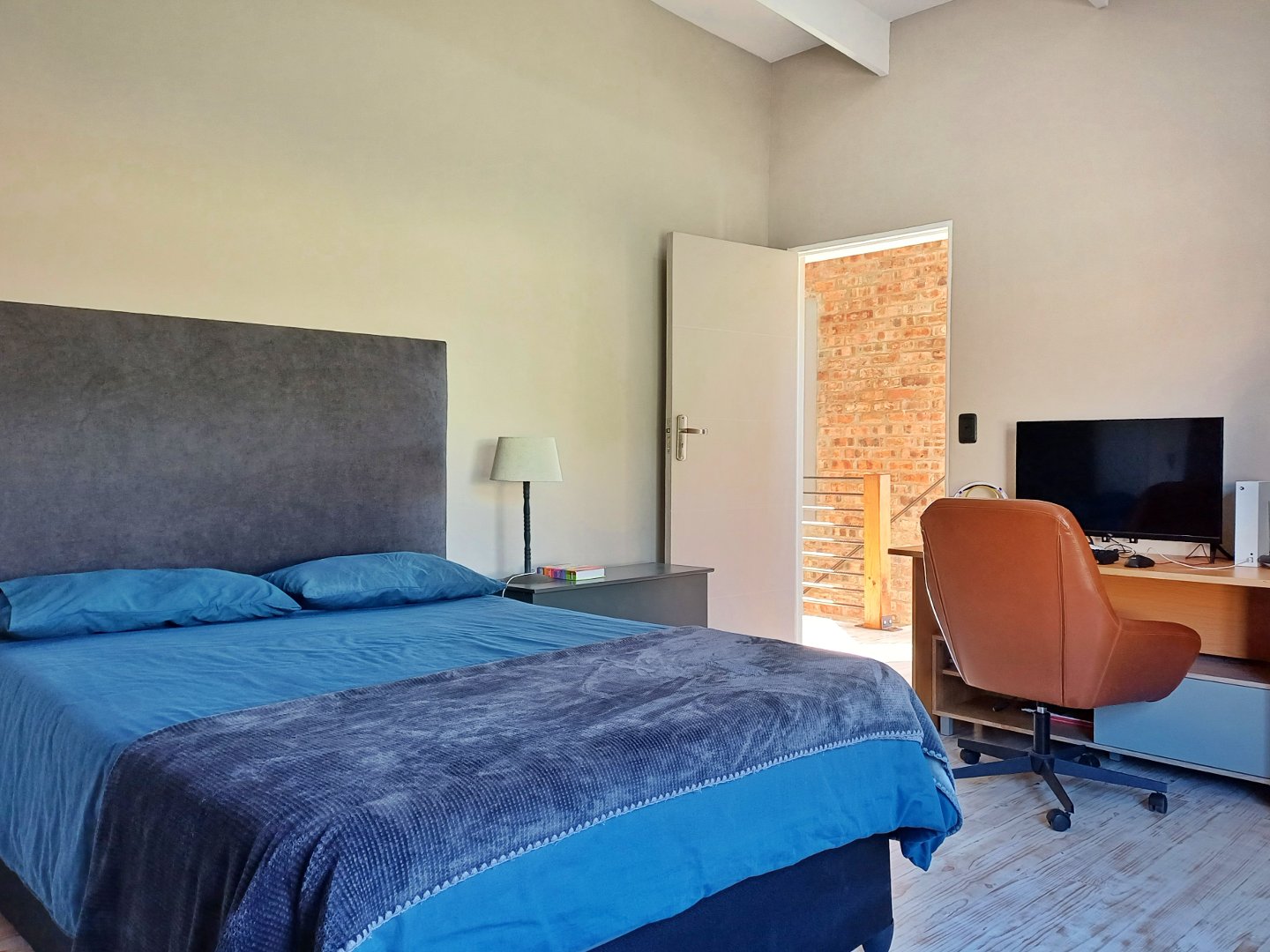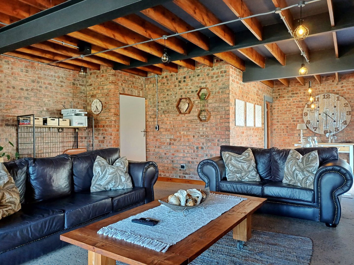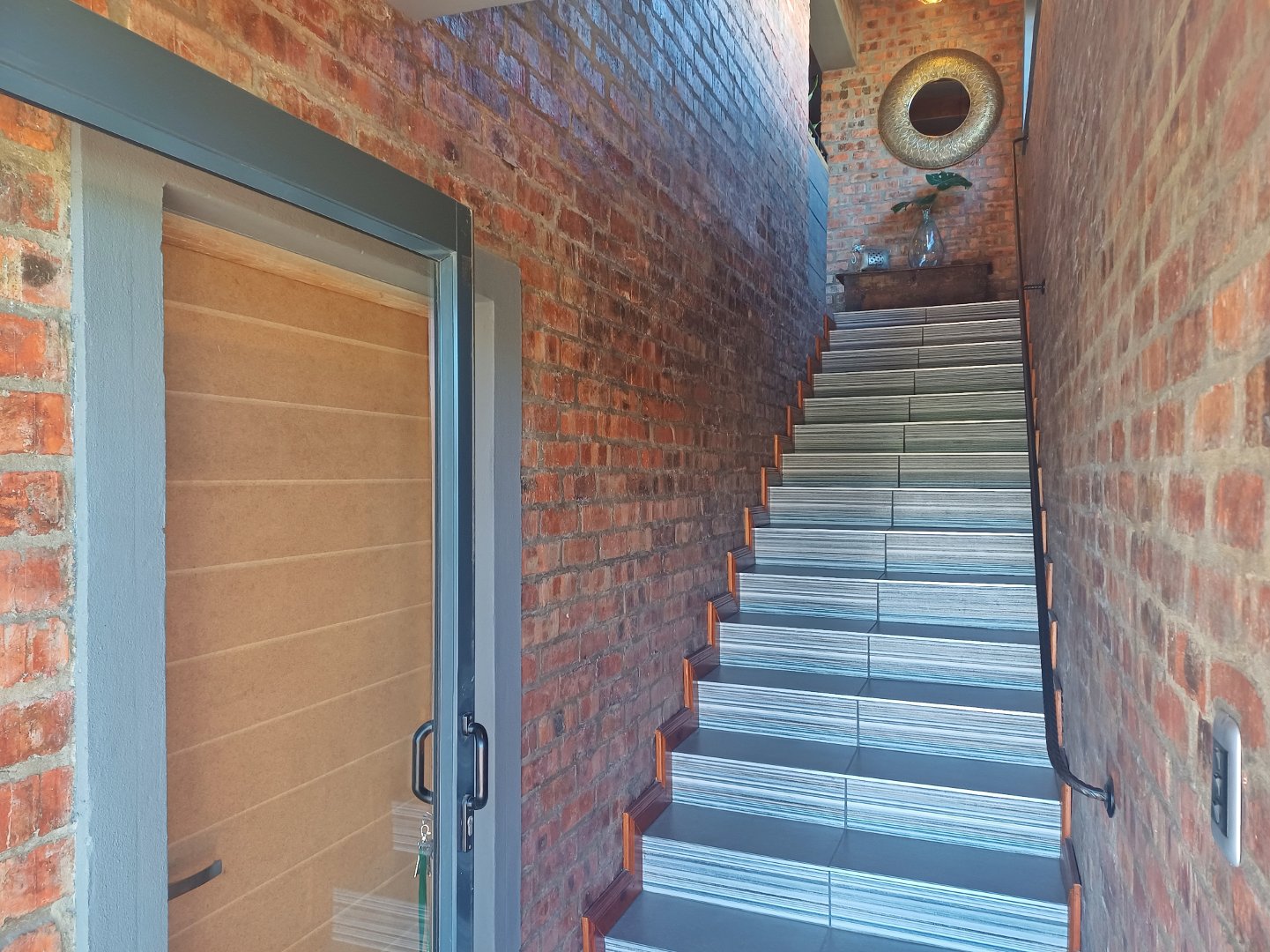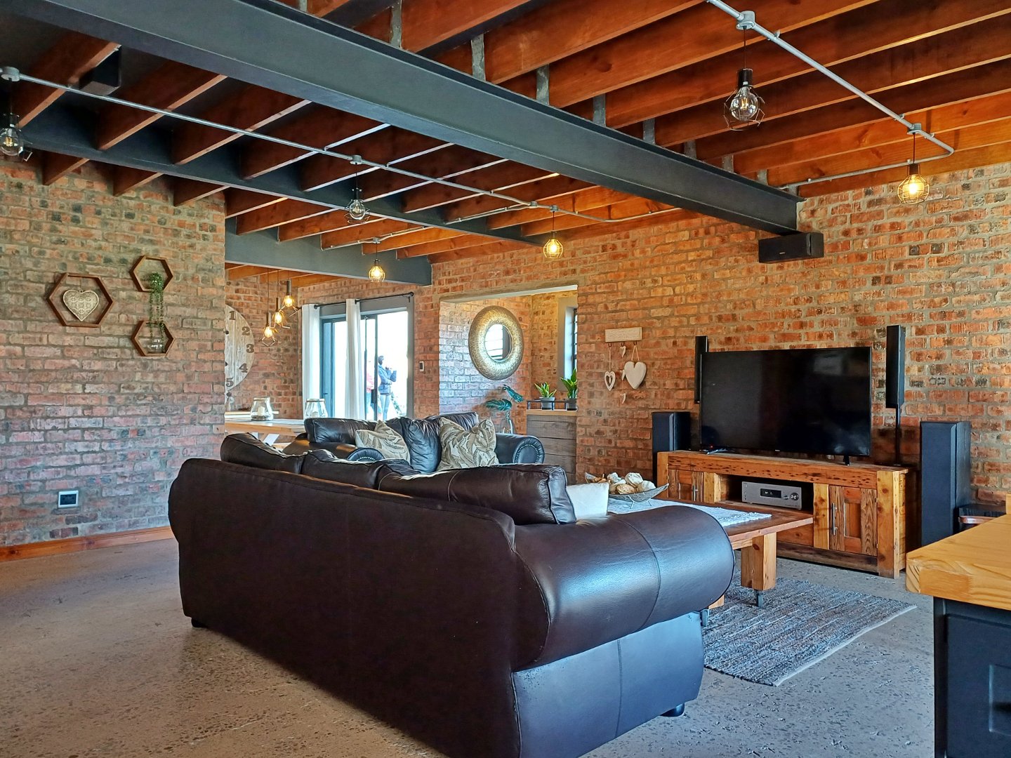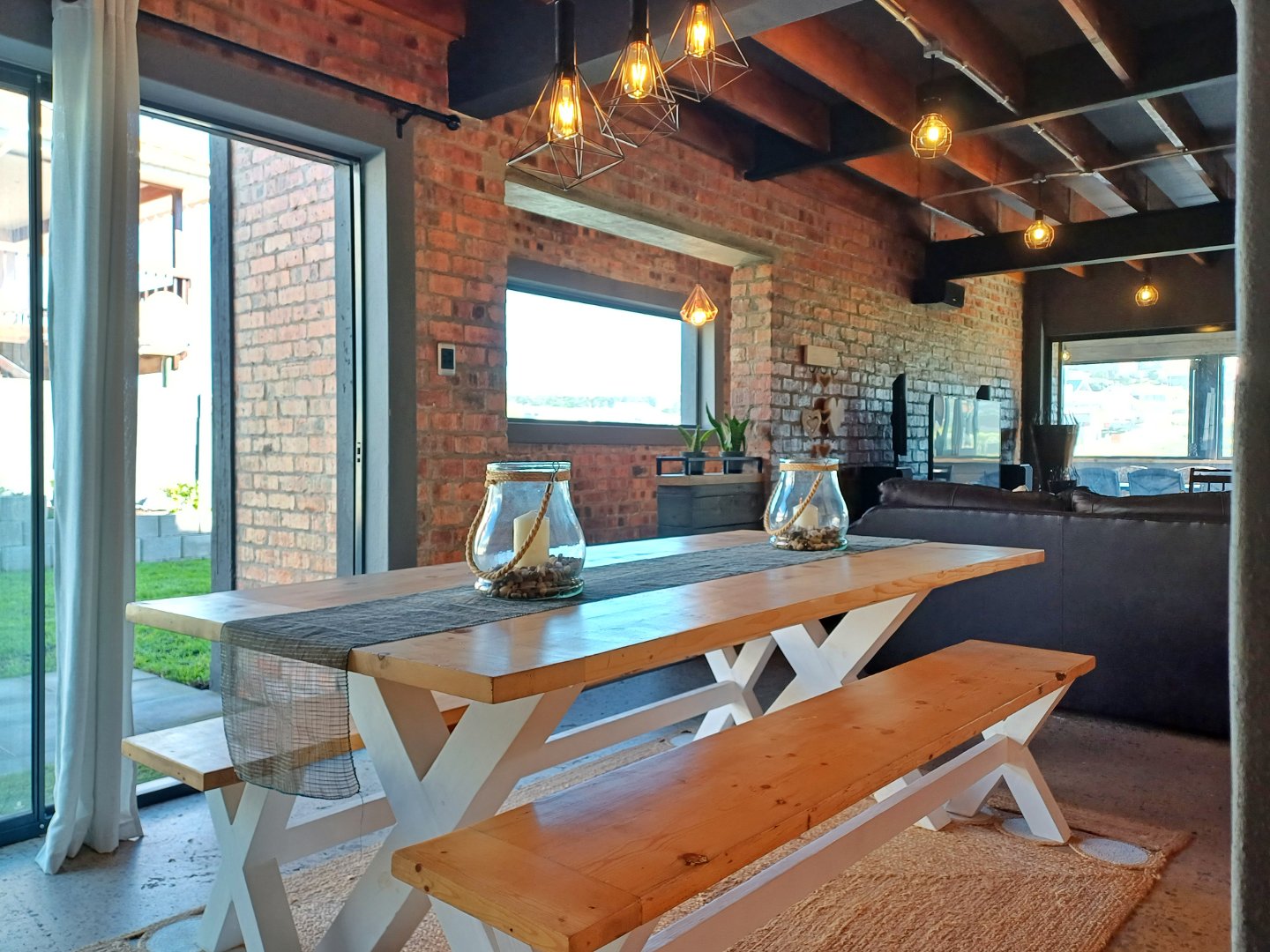 Step out onto the covered balcony with a braai area, offering a picturesque backdrop.