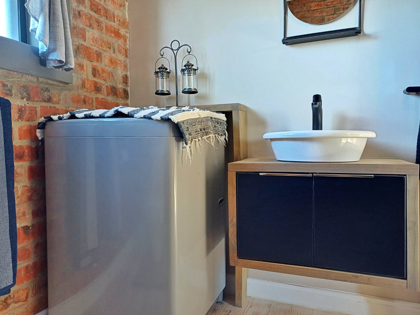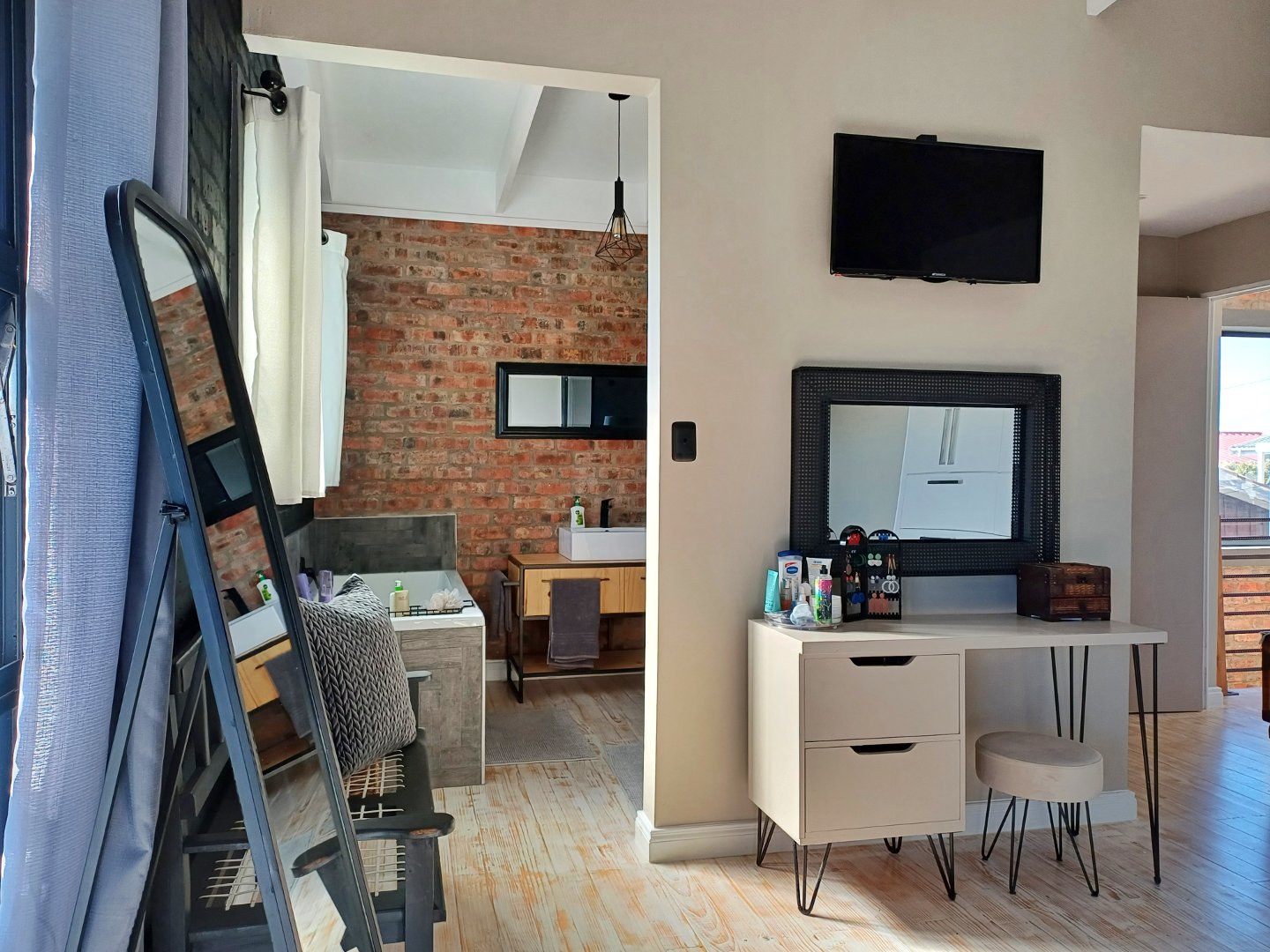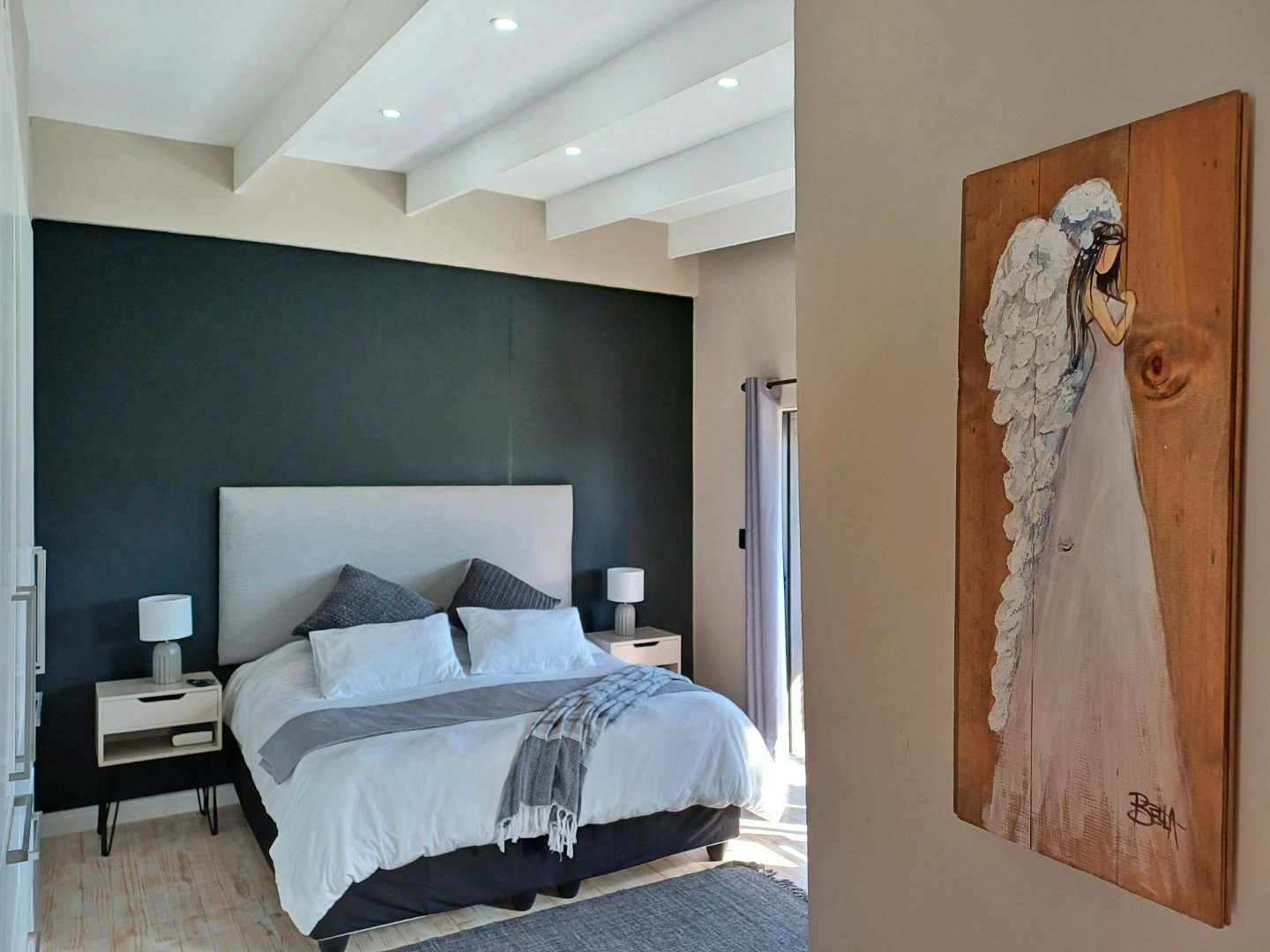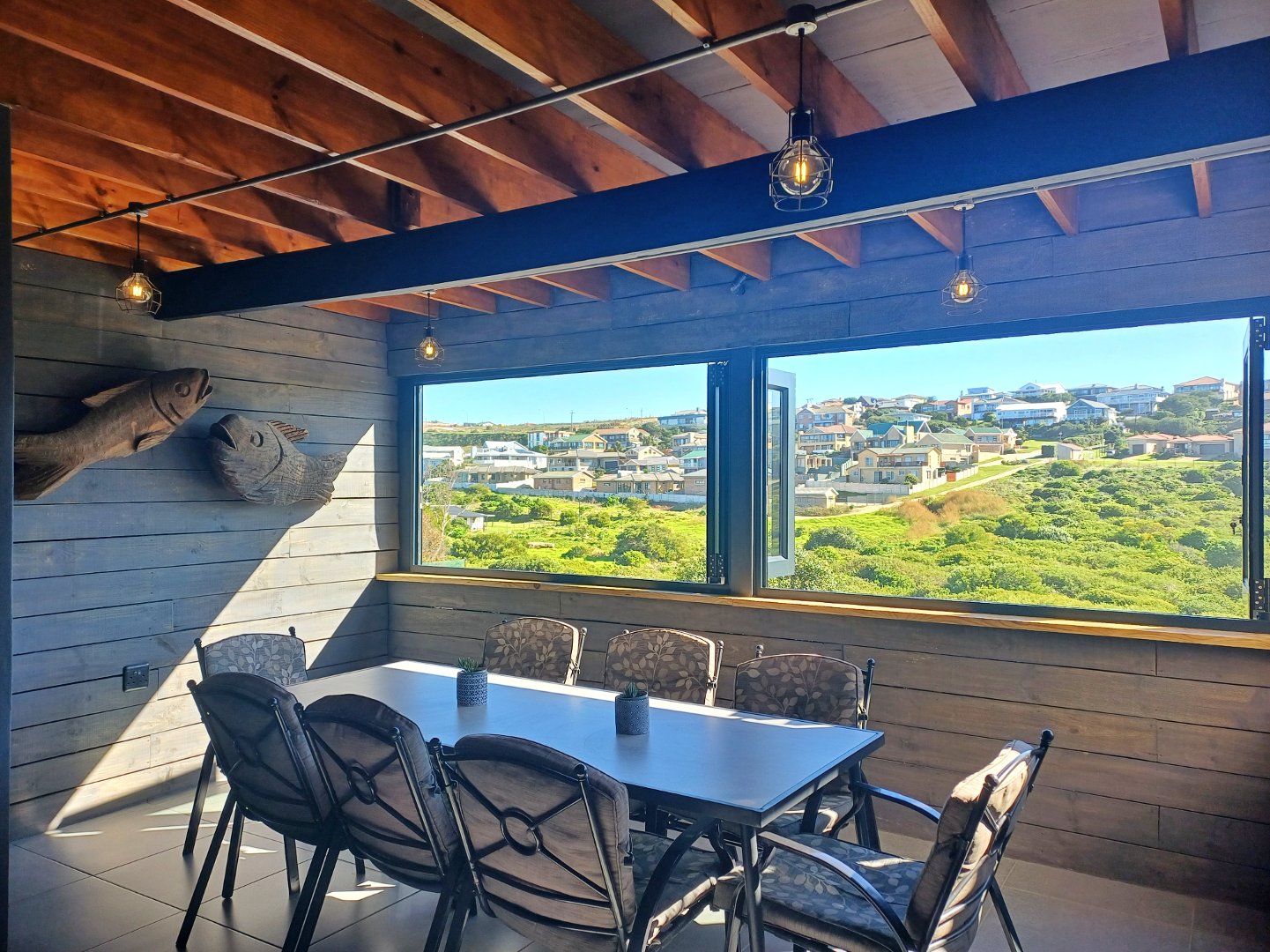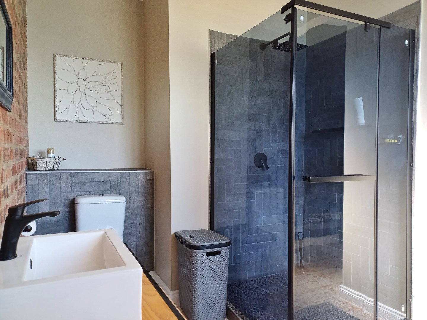 Step out onto the covered balcony with a braai area, offering a picturesque backdrop.