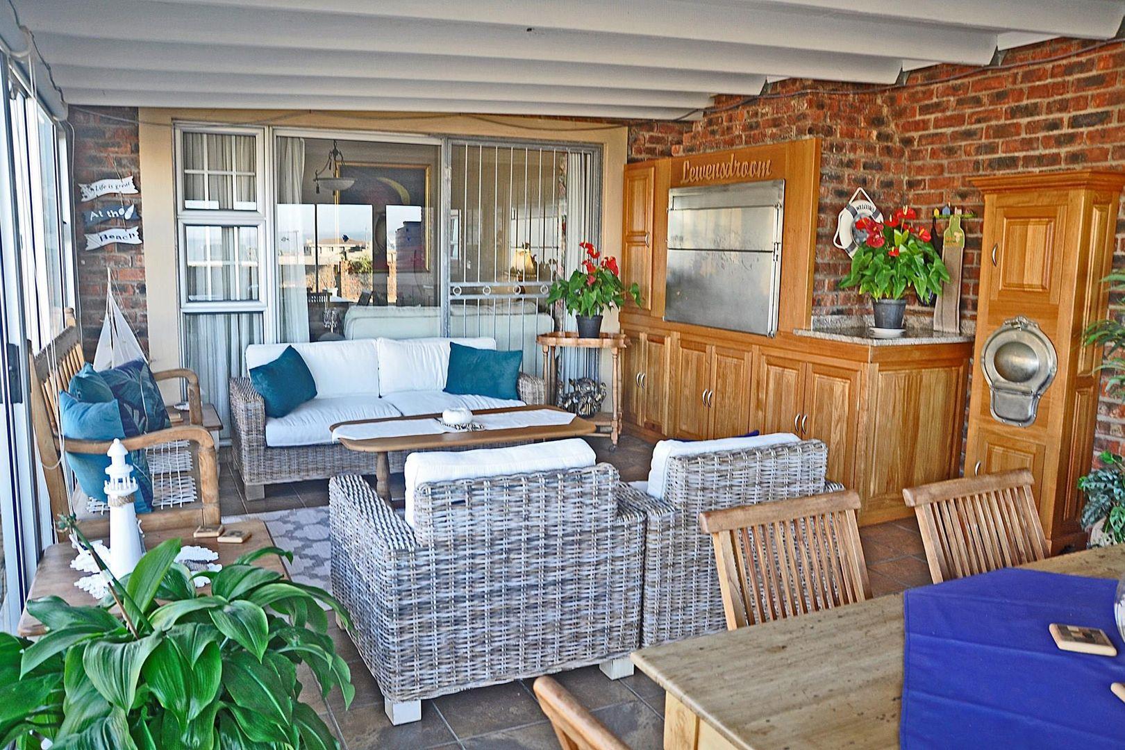 Enclosed veranda with built-in stainless-steel braai — year-round entertaining, sorted.