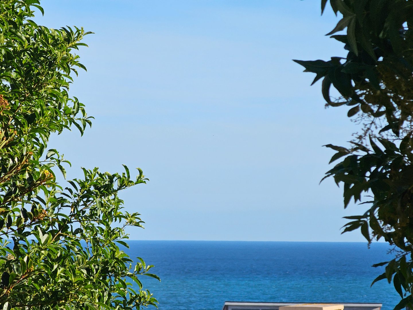 Upper level: Three bedrooms with a full bathroom, open-plan kitchen, dining, and living area opening onto a balcony with scenic sea views—ideal for short-term holiday rentals.