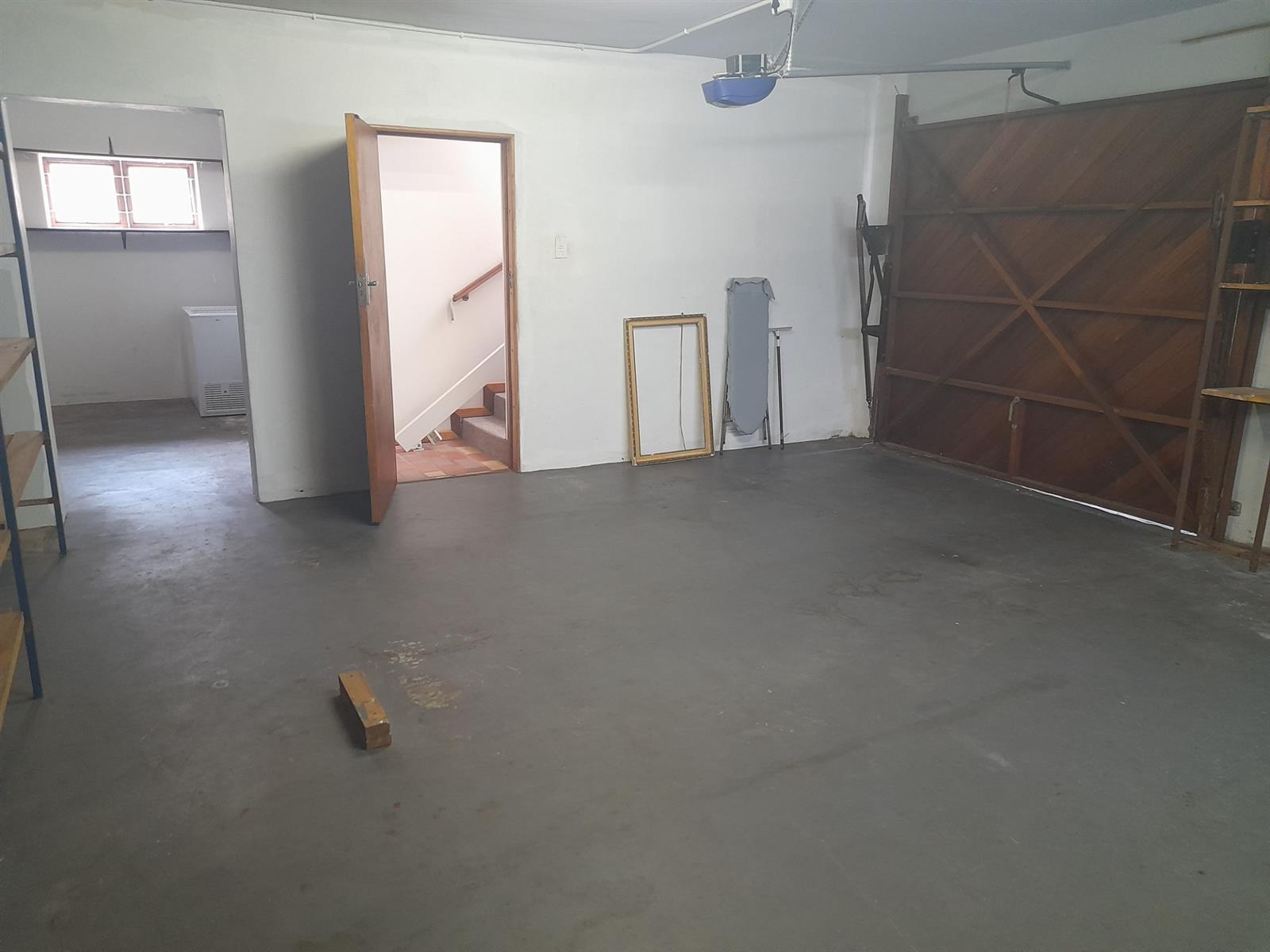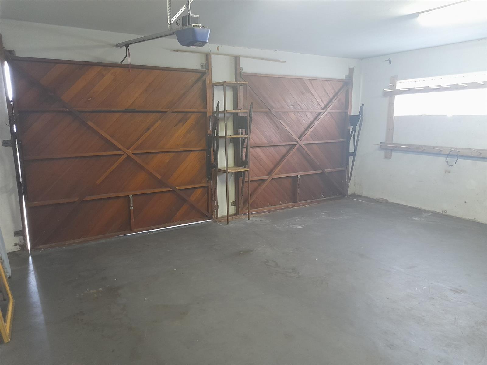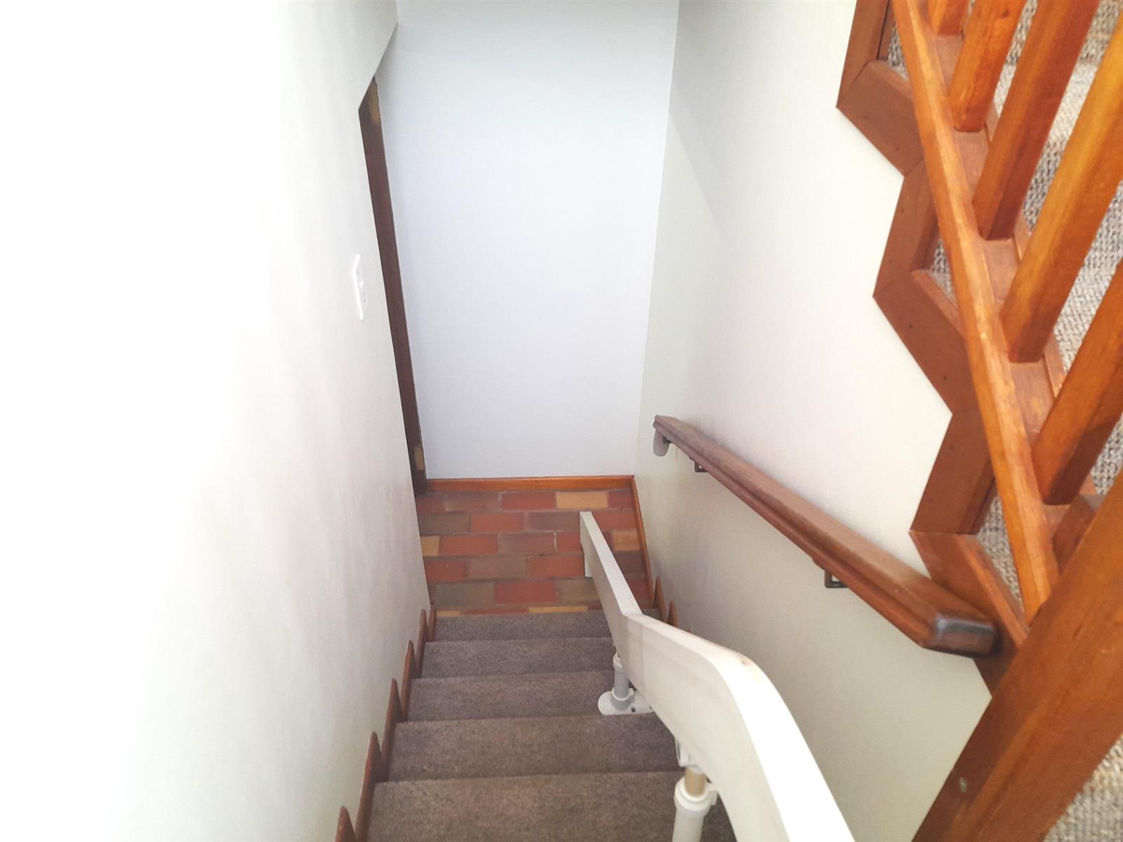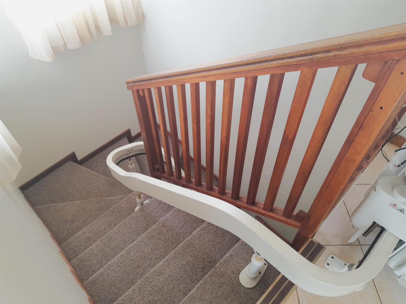 The double garage is situated on a lower level and includes a separate storeroom for added convenience. From the garage, a staircase fitted with a stair lift provides direct access into the house, further enhancing the home’s wheelchair-friendly design.