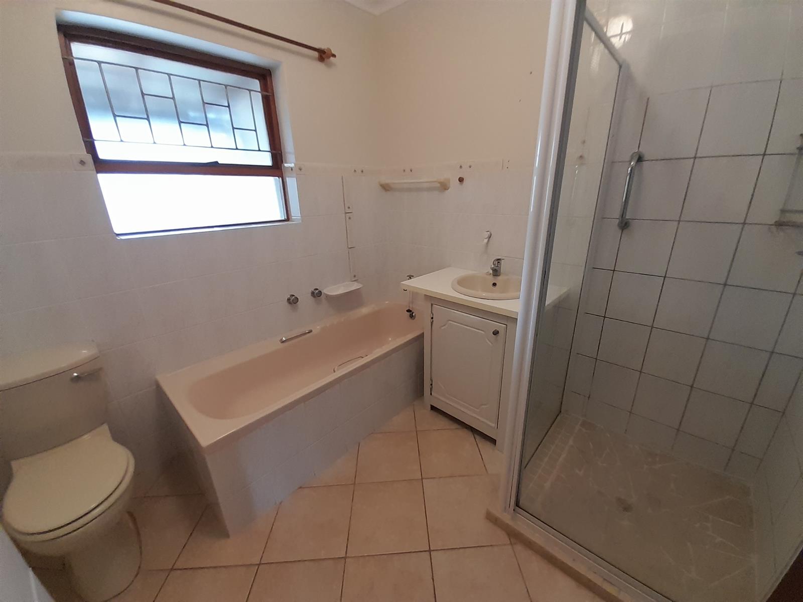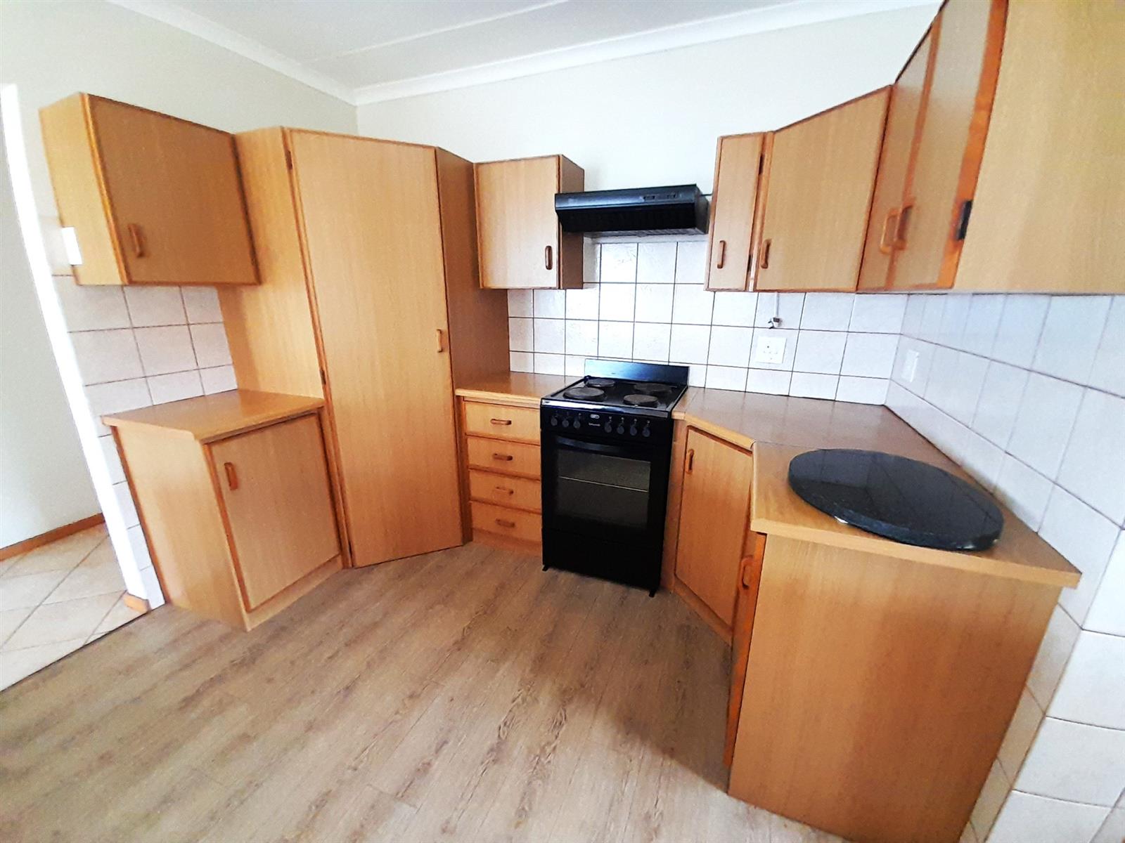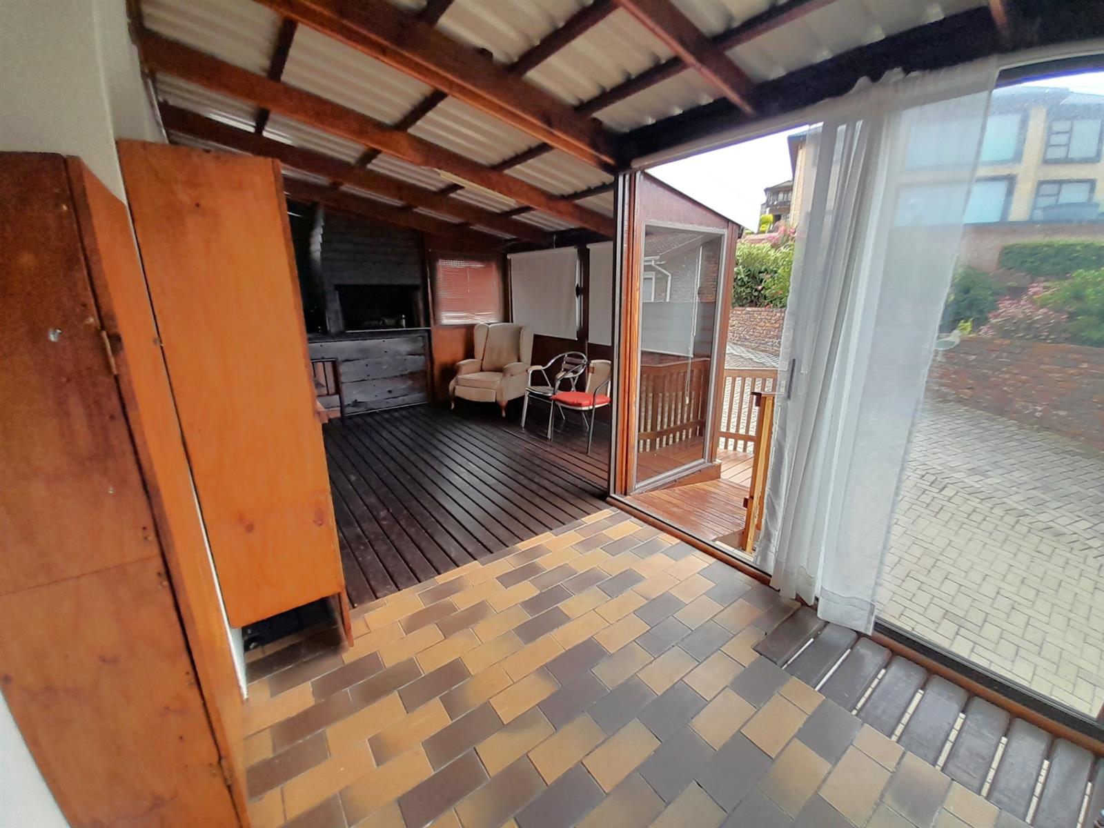 The generously sized kitchen is both practical and stylish, complemented by a separate scullery. From the scullery, you access a large, fully enclosed braai room — a standout feature of the home. This versatile space comfortably accommodates furniture, making it ideal for relaxed entertaining or family gatherings. A sliding door leads out to the back garden via a neat wooden ramp, ensuring smooth and convenient wheelchair access.