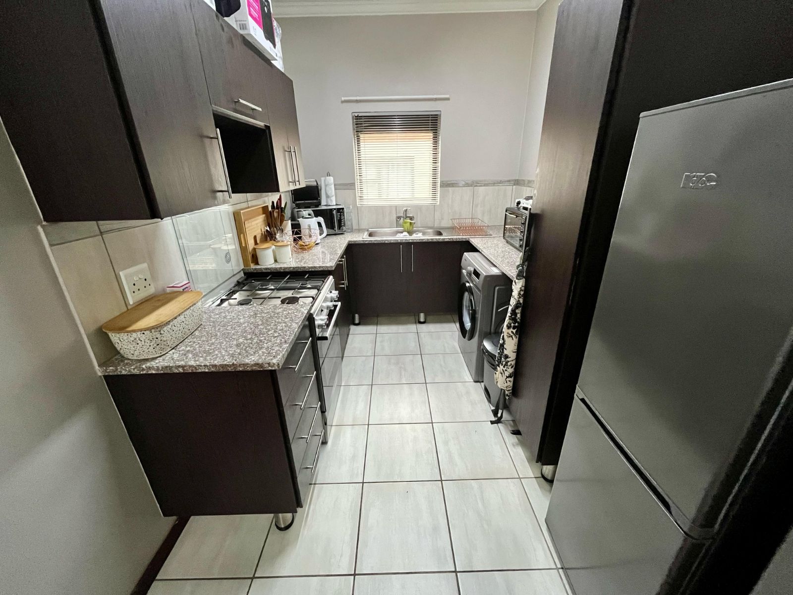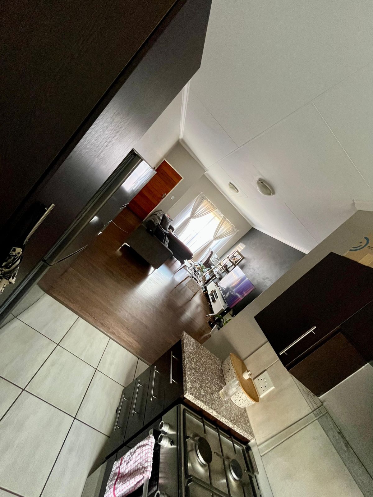 Enjoy the spacious, open-plan living area – perfect for entertaining or relaxing – seamlessly connecting to a modern kitchen equipped with a gas stove for efficient cooking. A gas geyser ensures hot water is always available, adding to the home’s practical appeal.