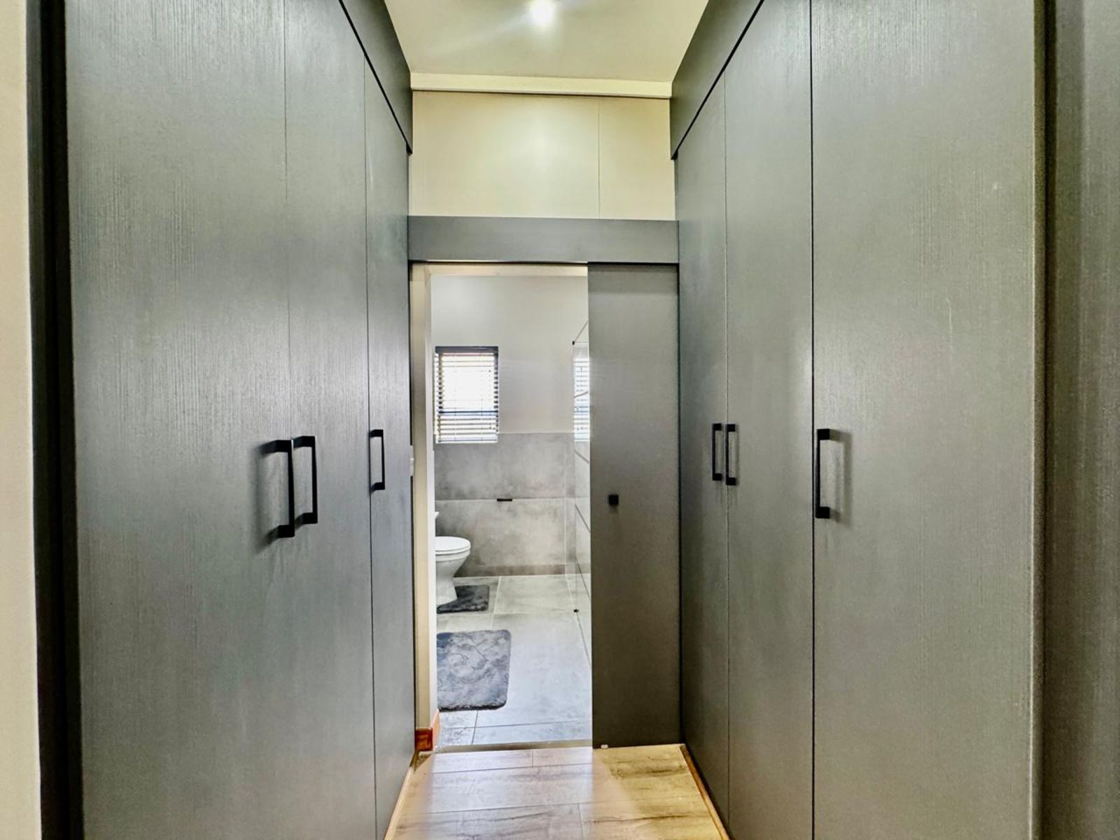This beautifully finished 3-bedroom, 2-bathroom home (including a main en-suite) offers generous space and clever storage, with built-in cupboards throughout to keep everything sleek and uncluttered. The heart of the house is the contemporary open-plan living area, where the dining and TV room flow naturally from a large modern kitchen with a separate scullery — perfect for entertaining without the mess on display.