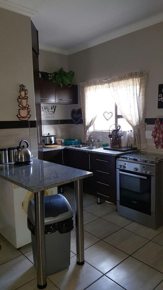 SOLE MANDATE - 3 bedroom 2 bathroom + garage in safe & secure complex for less than R1m. The one bathroom is en-suite. The house has a gas geyser and hob - so there wont be any time without food and a hot shower or bath - which is the fate of many people without this benefit. The house is modern, with beautiful tiles, very neat and well kept - its an excellent buy for a 3 bedroom at this price. Call Rinie to view.