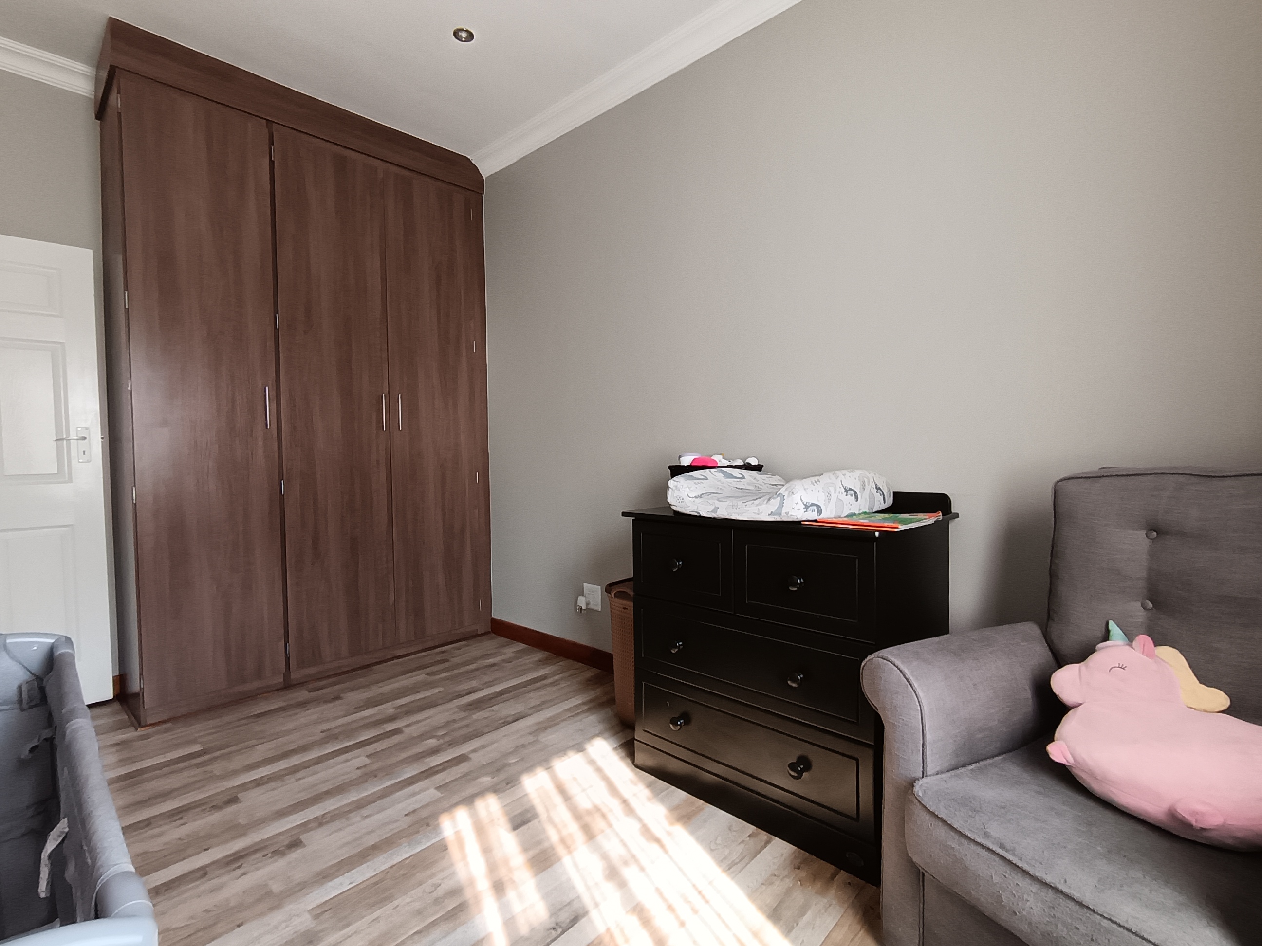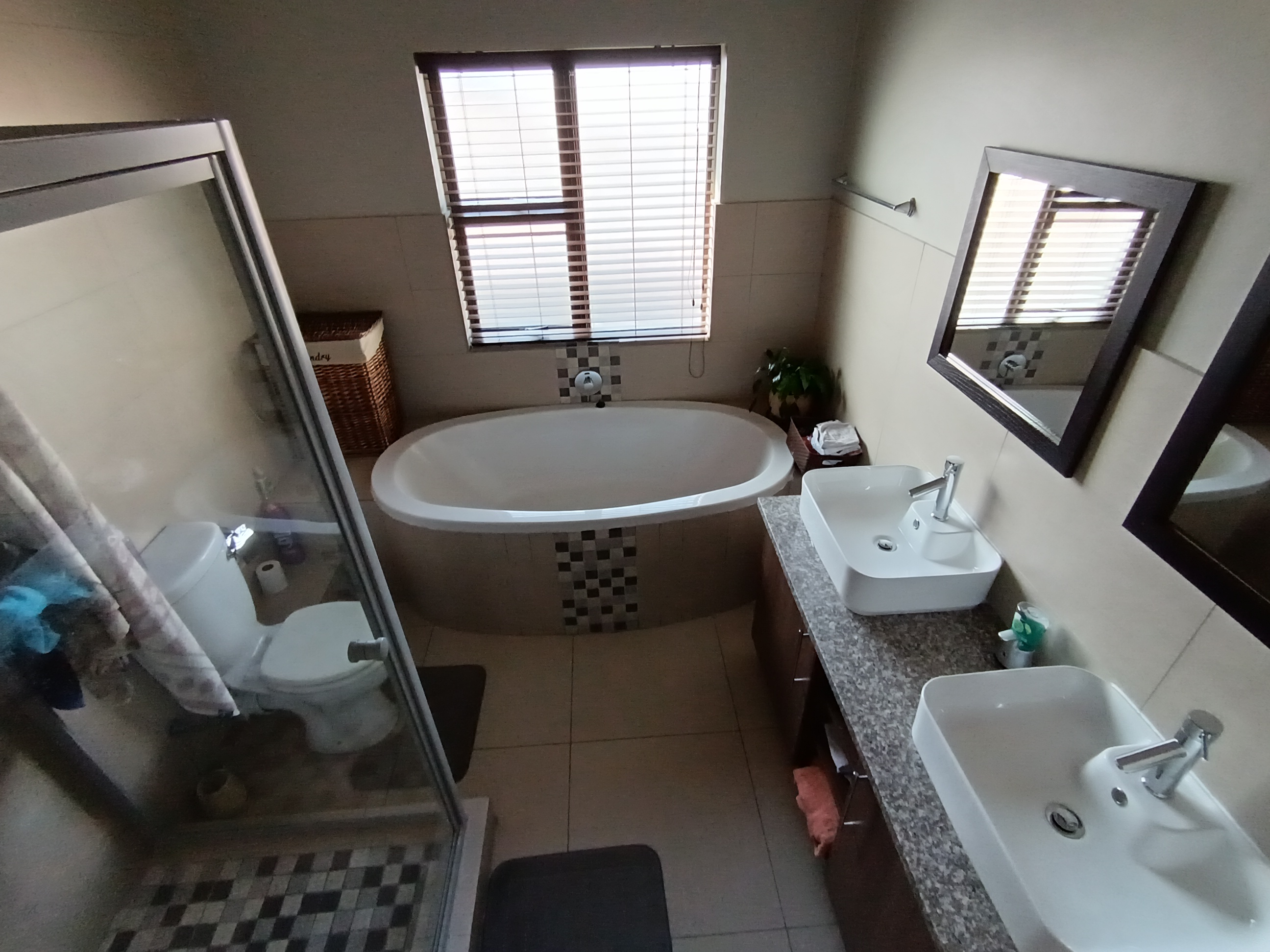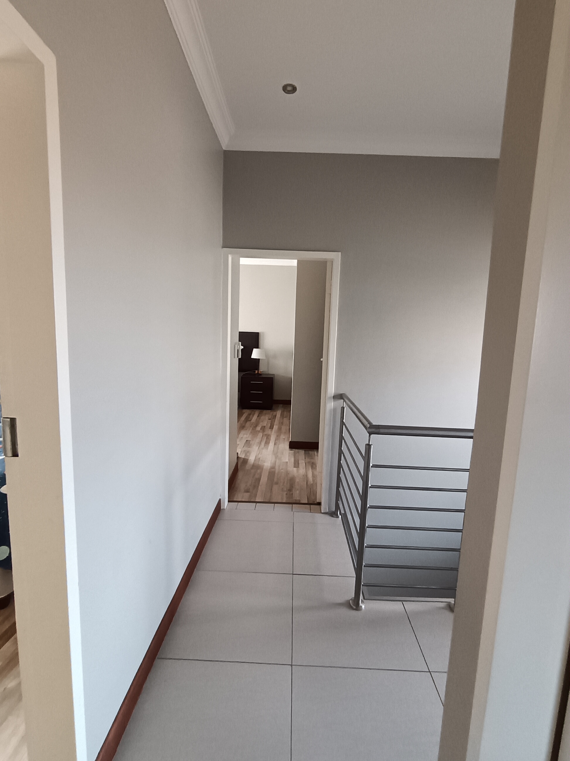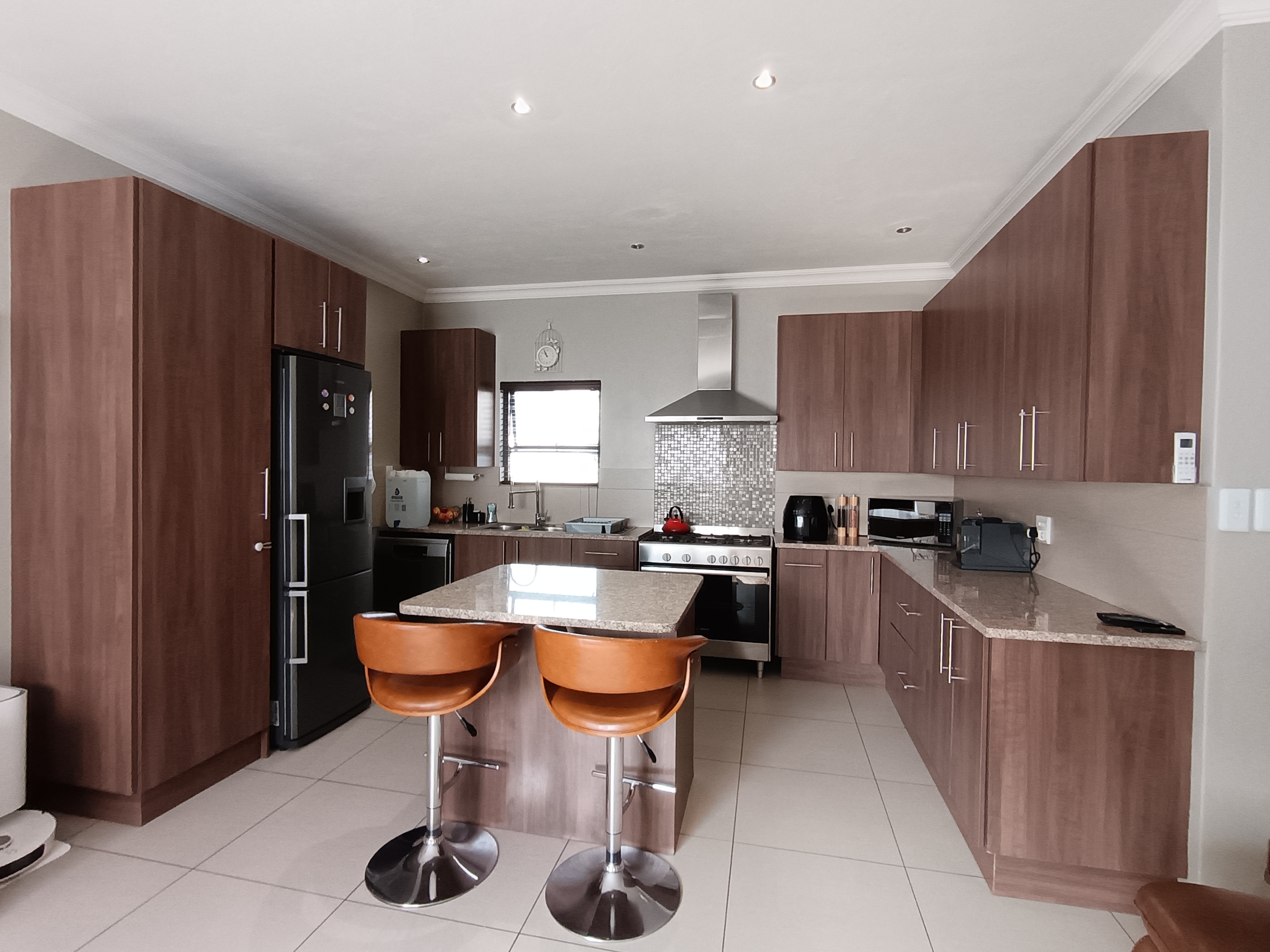 This contemporary double-storey home offers a perfect blend of comfort and modern living. The top floor features three spacious bedrooms all with built-in cupboards, including a luxurious ensuite in the main bedroom. The two full bathrooms features modern fixtures designed with both functionality and elegance in mind. There is also a third guest bathroom situated on the ground floor for added convenience. The modern kitchen is well equipped with high quality kitchen appliances featuring a 900mm gas stove, oven and extractor fan.
