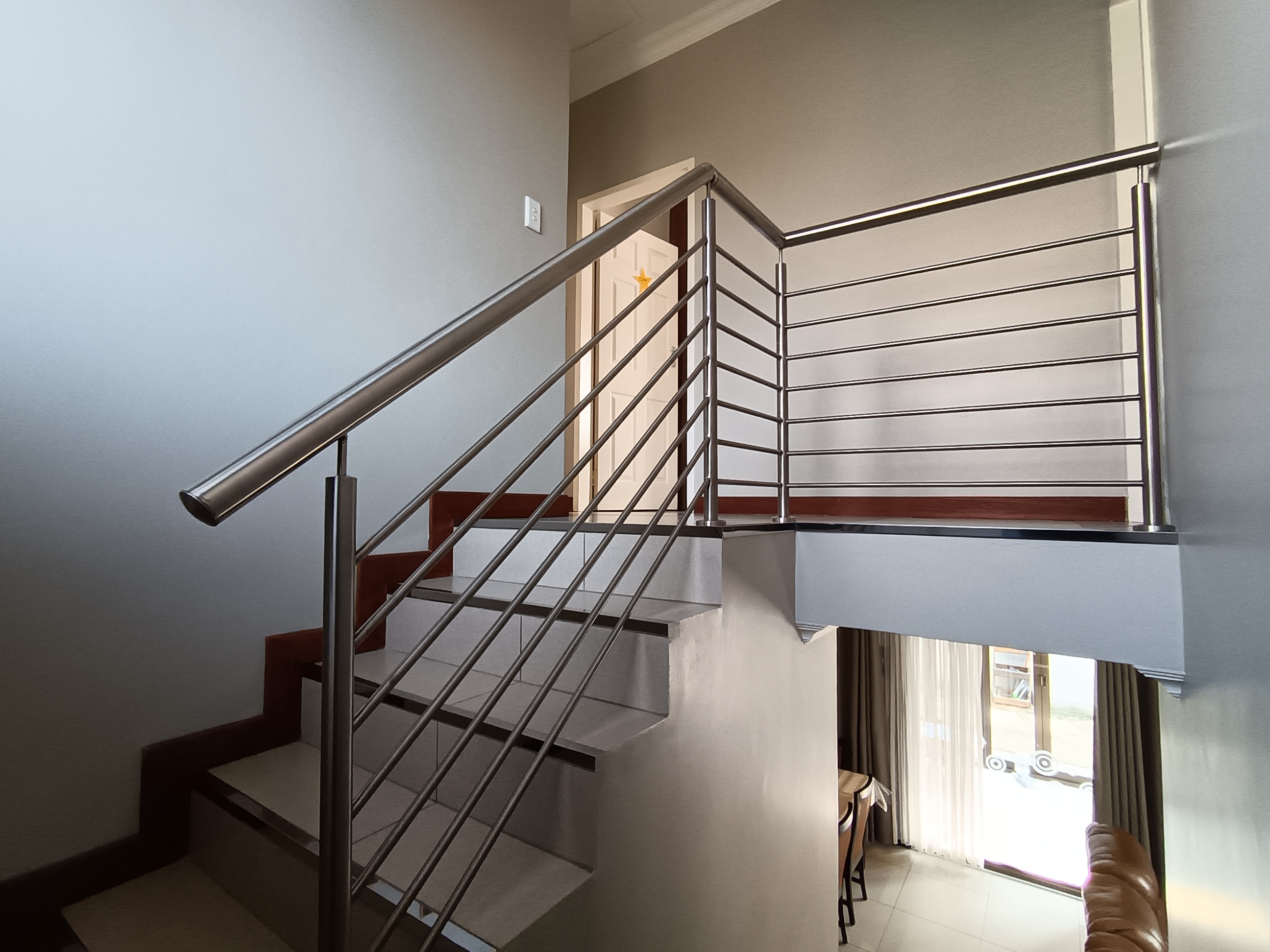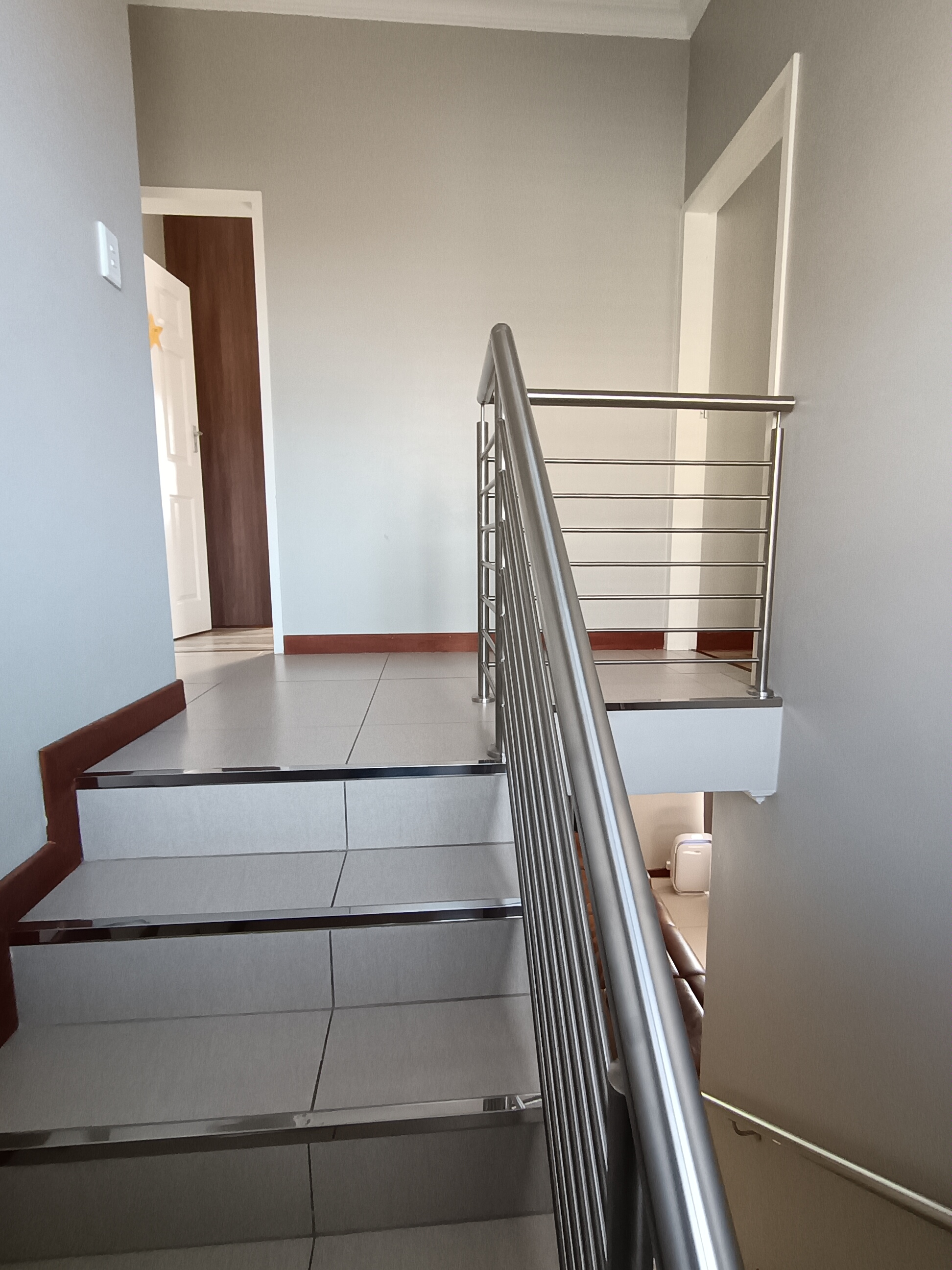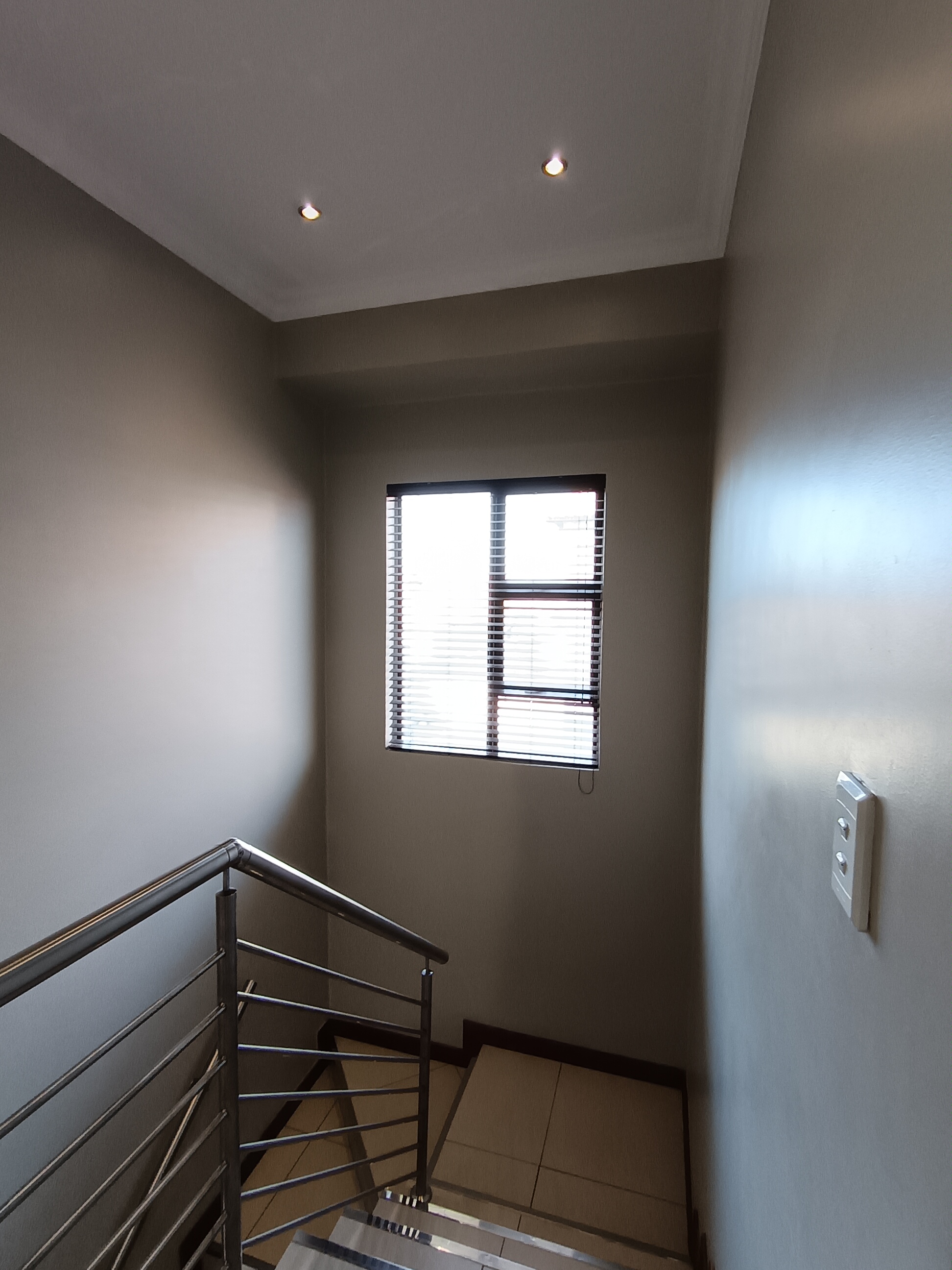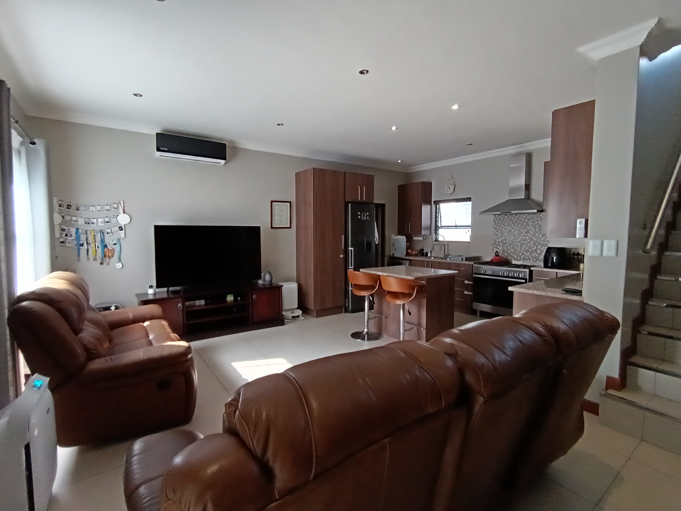 This contemporary double-storey home offers a perfect blend of comfort and modern living. The top floor features three spacious bedrooms all with built-in cupboards, including a luxurious ensuite in the main bedroom. The two full bathrooms features modern fixtures designed with both functionality and elegance in mind. There is also a third guest bathroom situated on the ground floor for added convenience. The modern kitchen is well equipped with high quality kitchen appliances featuring a 900mm gas stove, oven and extractor fan.