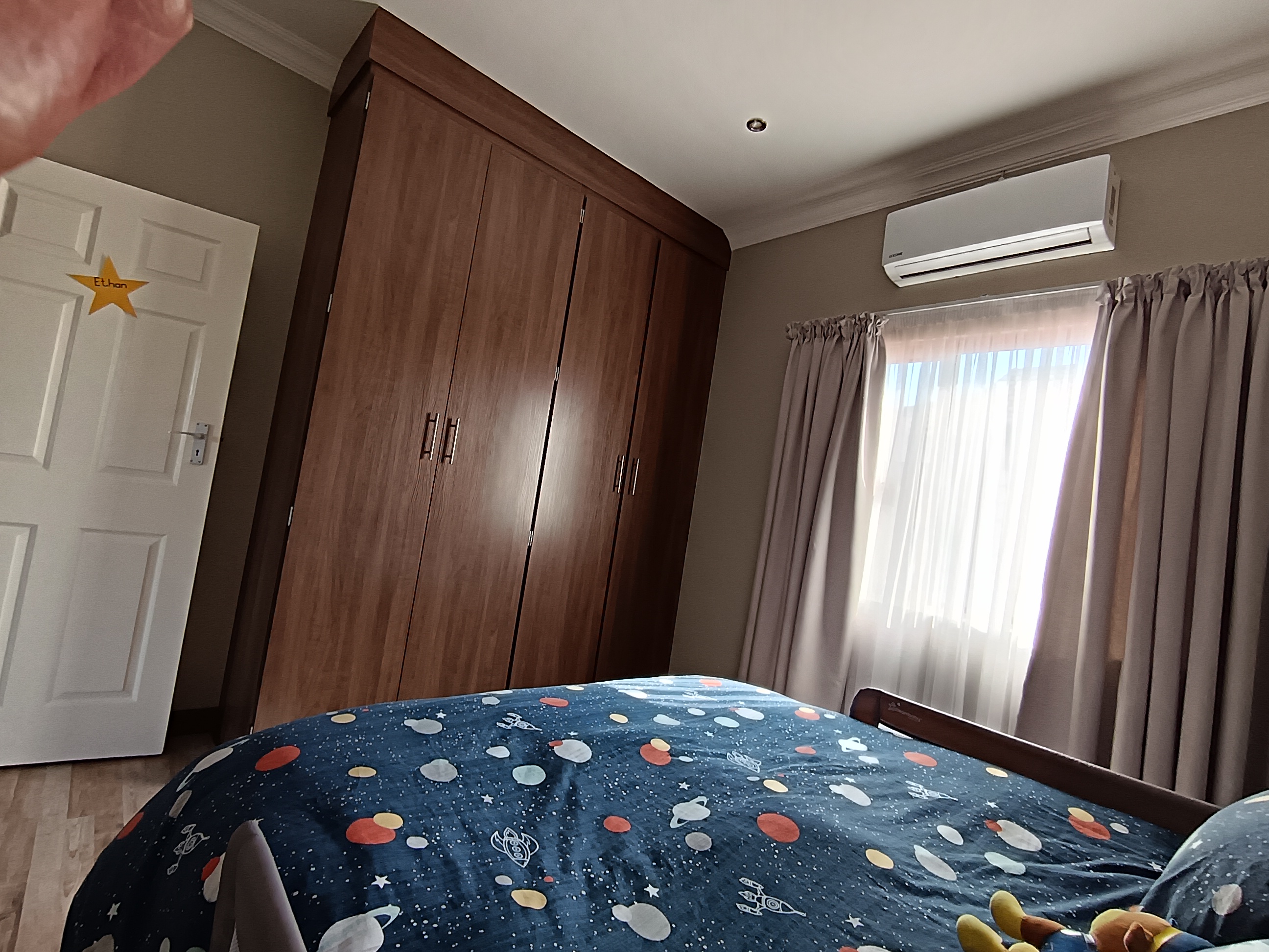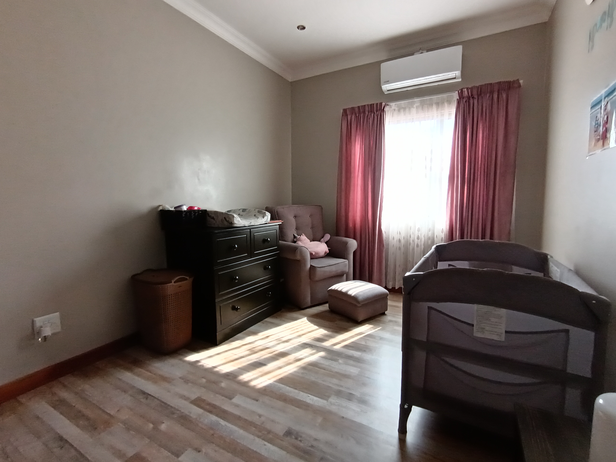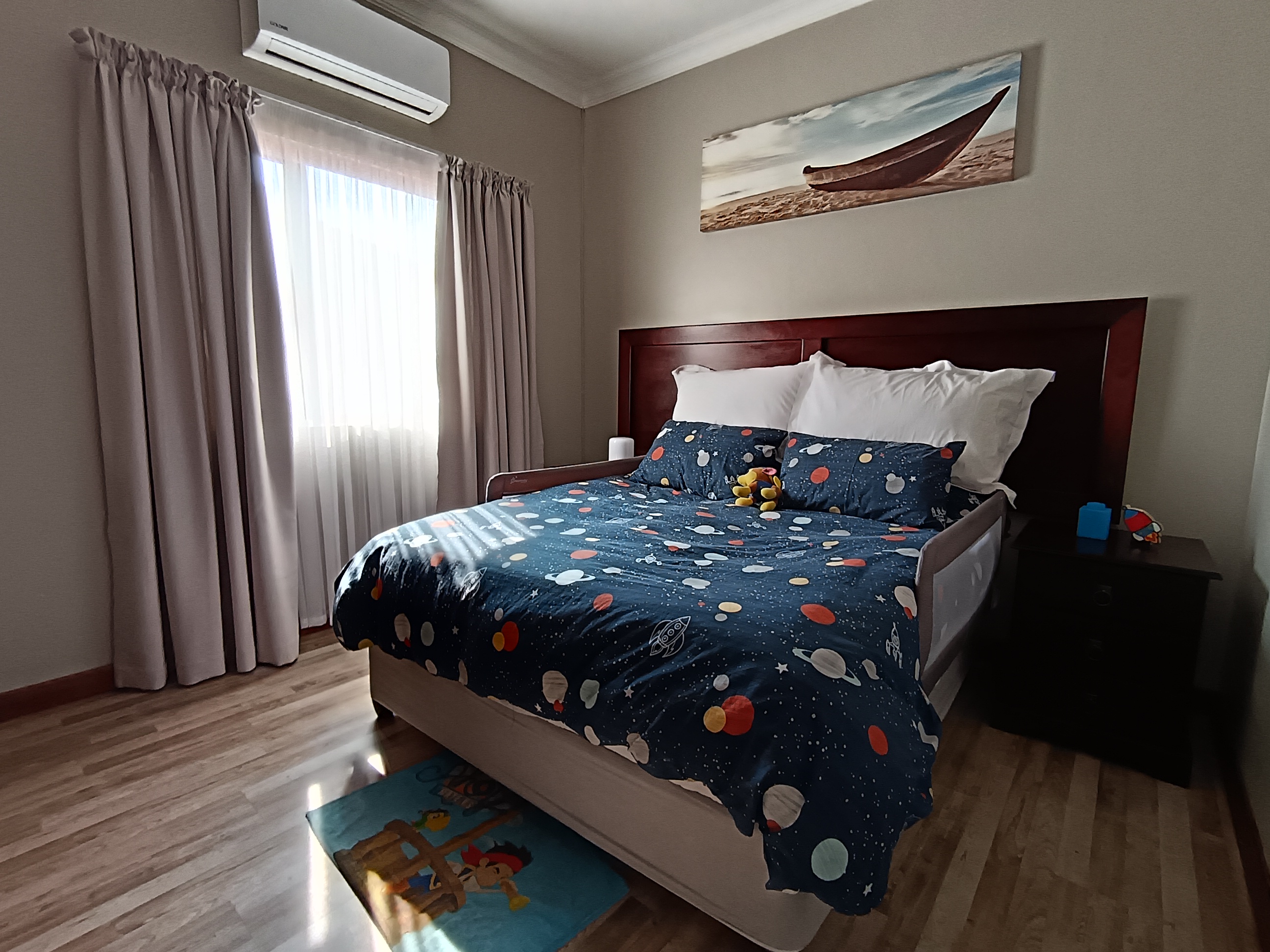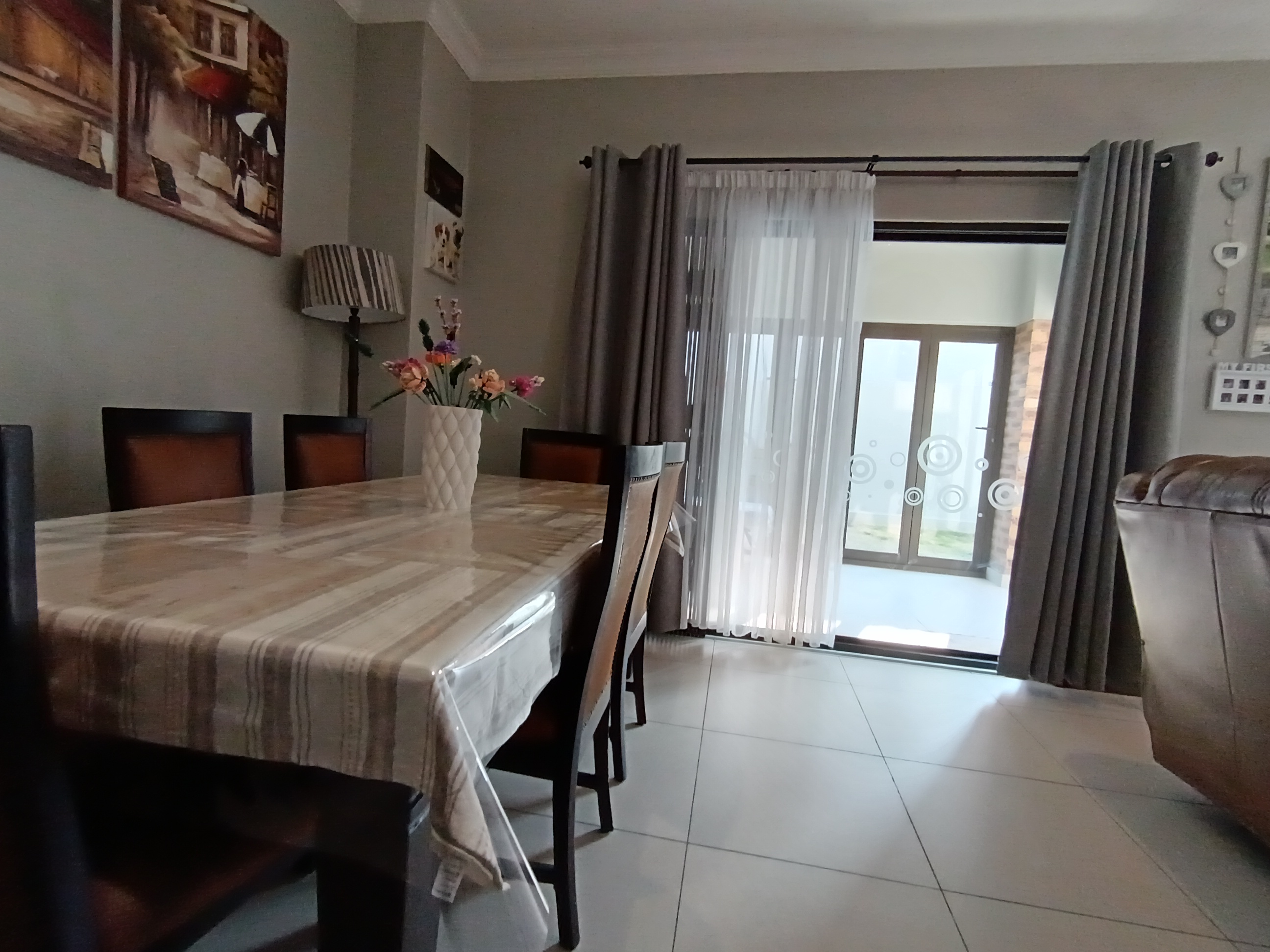 The dining area flows seamlessly into the covered patio which includes a built-in braai perfect for entertaining guests. The property also boasts a double automated garage, offering secure and convenient parking. Other extras includes, stacking doors, Trellidor gates, burglar bars, alarm system with indoor and outdoor beams, and aircons in the three bedrooms and living area. With it's sleek design , modern touches, and thoughtful layout, this home is perfect for families or professionals looking for a move-in ready place.