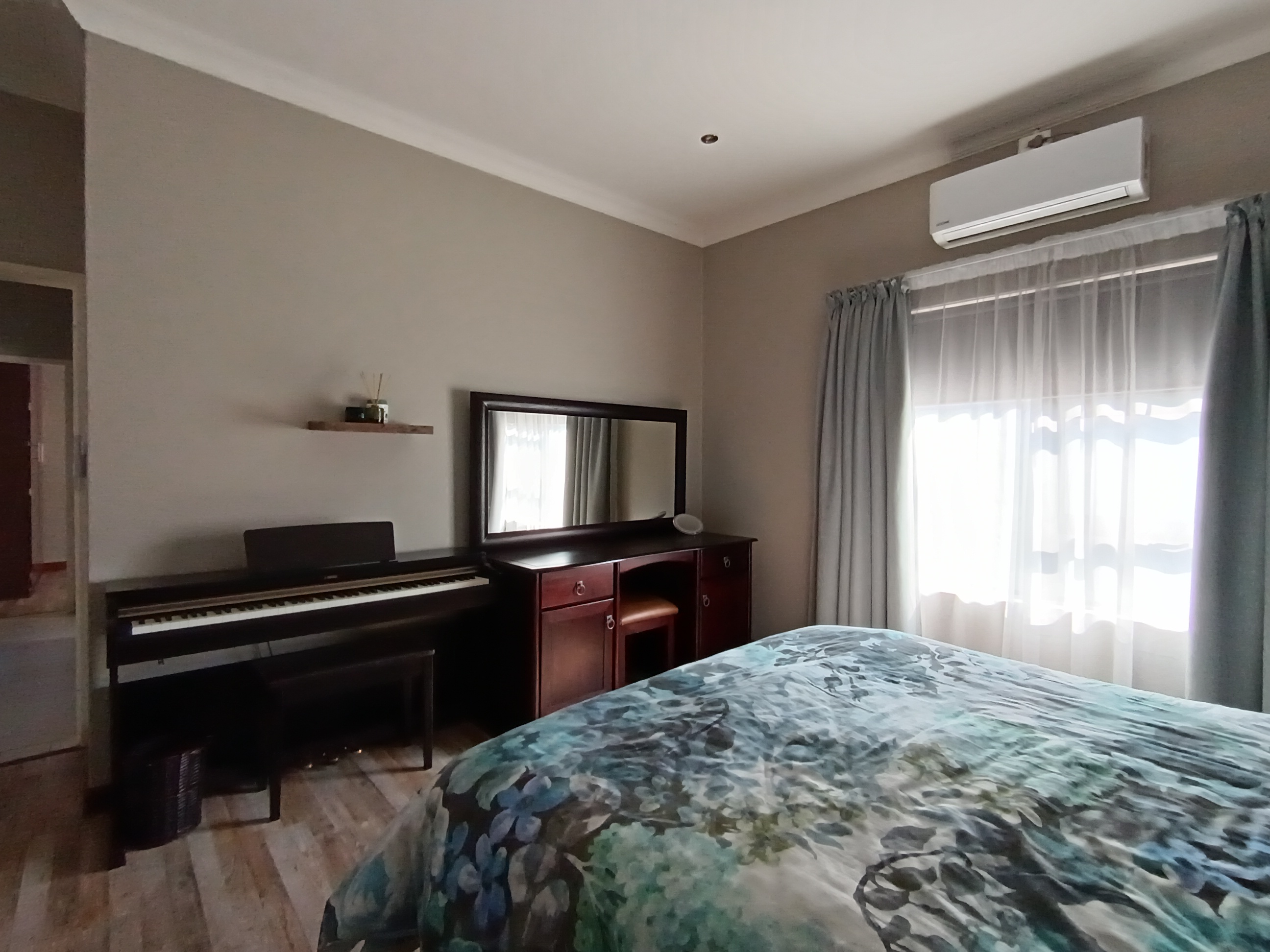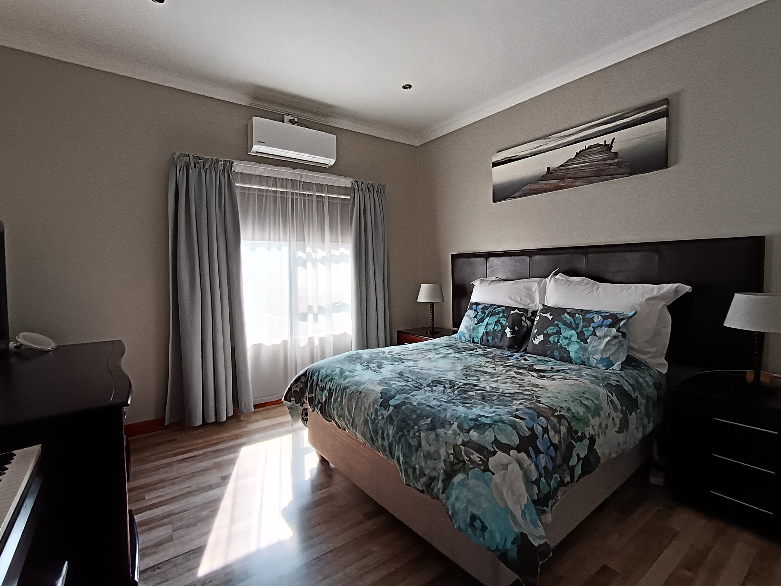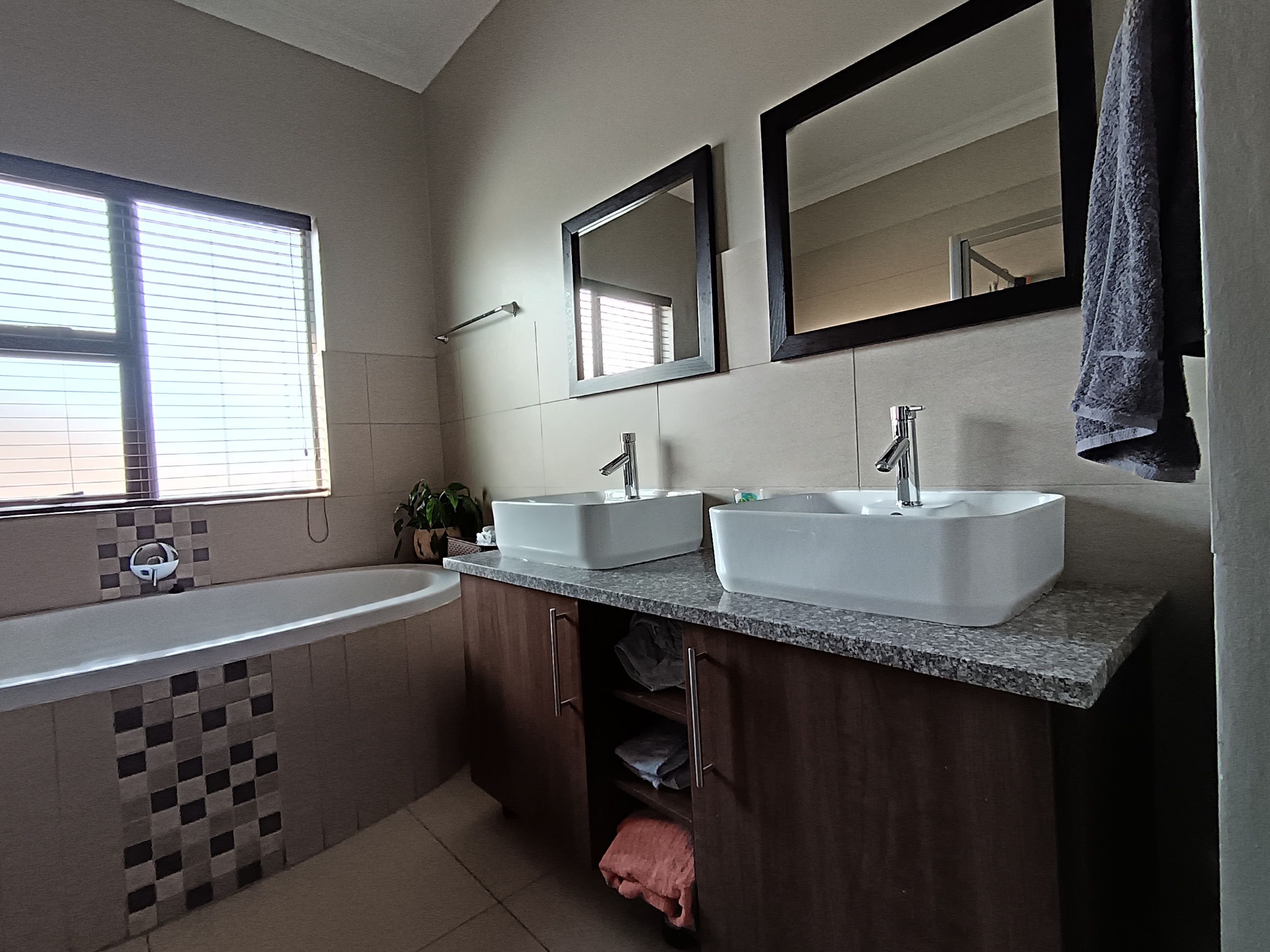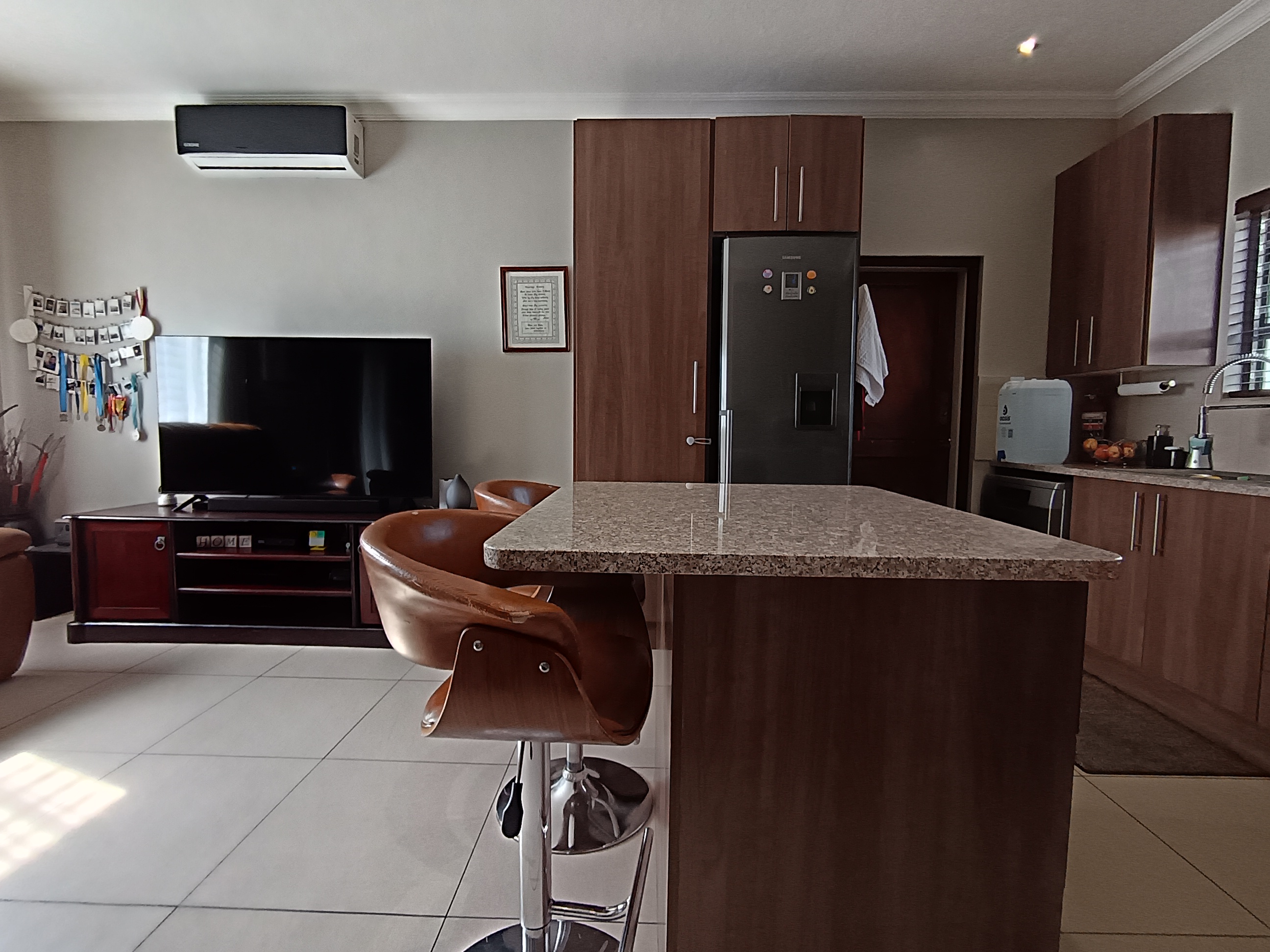 The dining area flows seamlessly into the covered patio which includes a built-in braai perfect for entertaining guests. The property also boasts a double automated garage, offering secure and convenient parking. Other extras includes, stacking doors, Trellidor gates, burglar bars, alarm system with indoor and outdoor beams, and aircons in the three bedrooms and living area. With it's sleek design , modern touches, and thoughtful layout, this home is perfect for families or professionals looking for a move-in ready place.