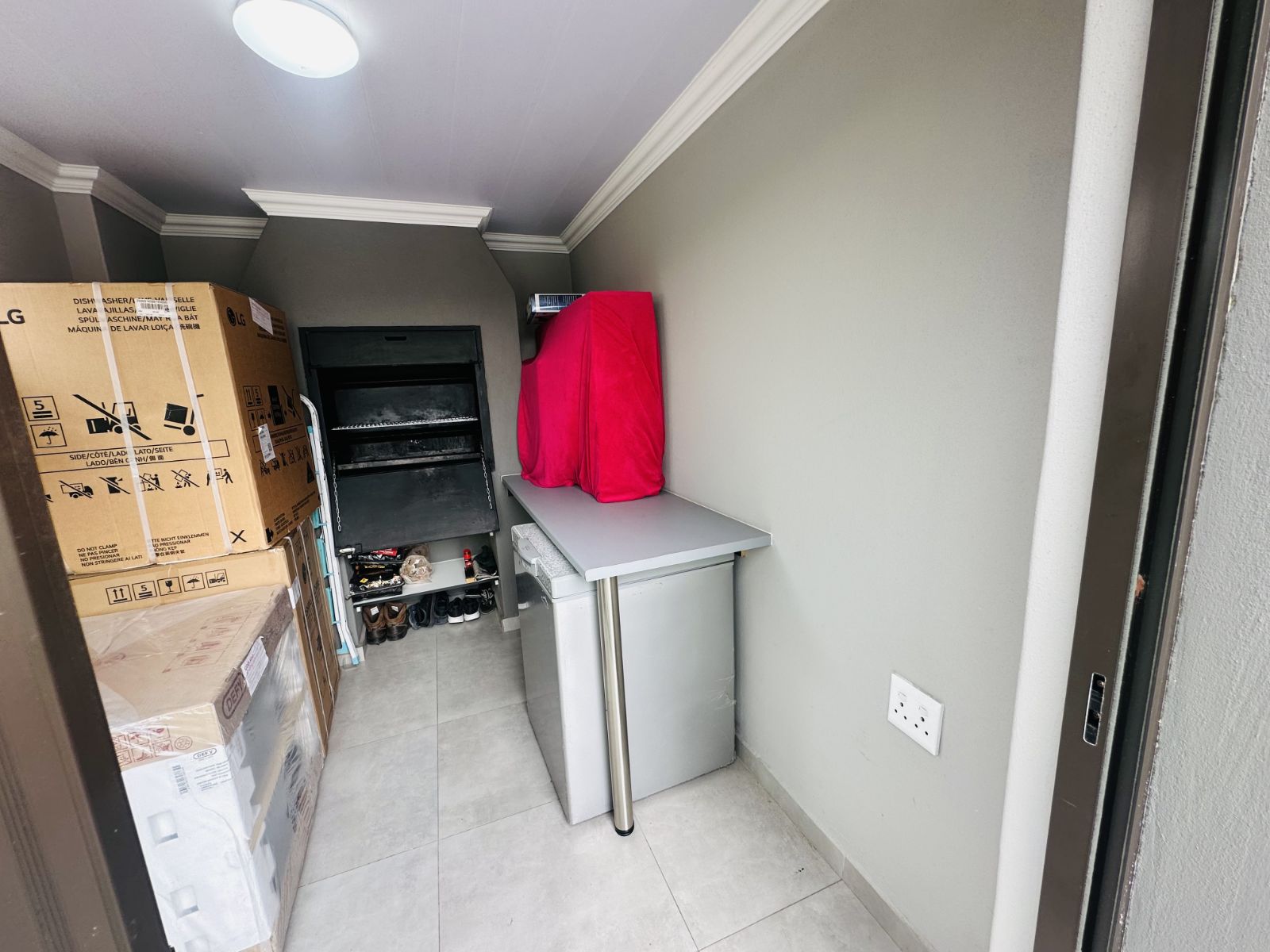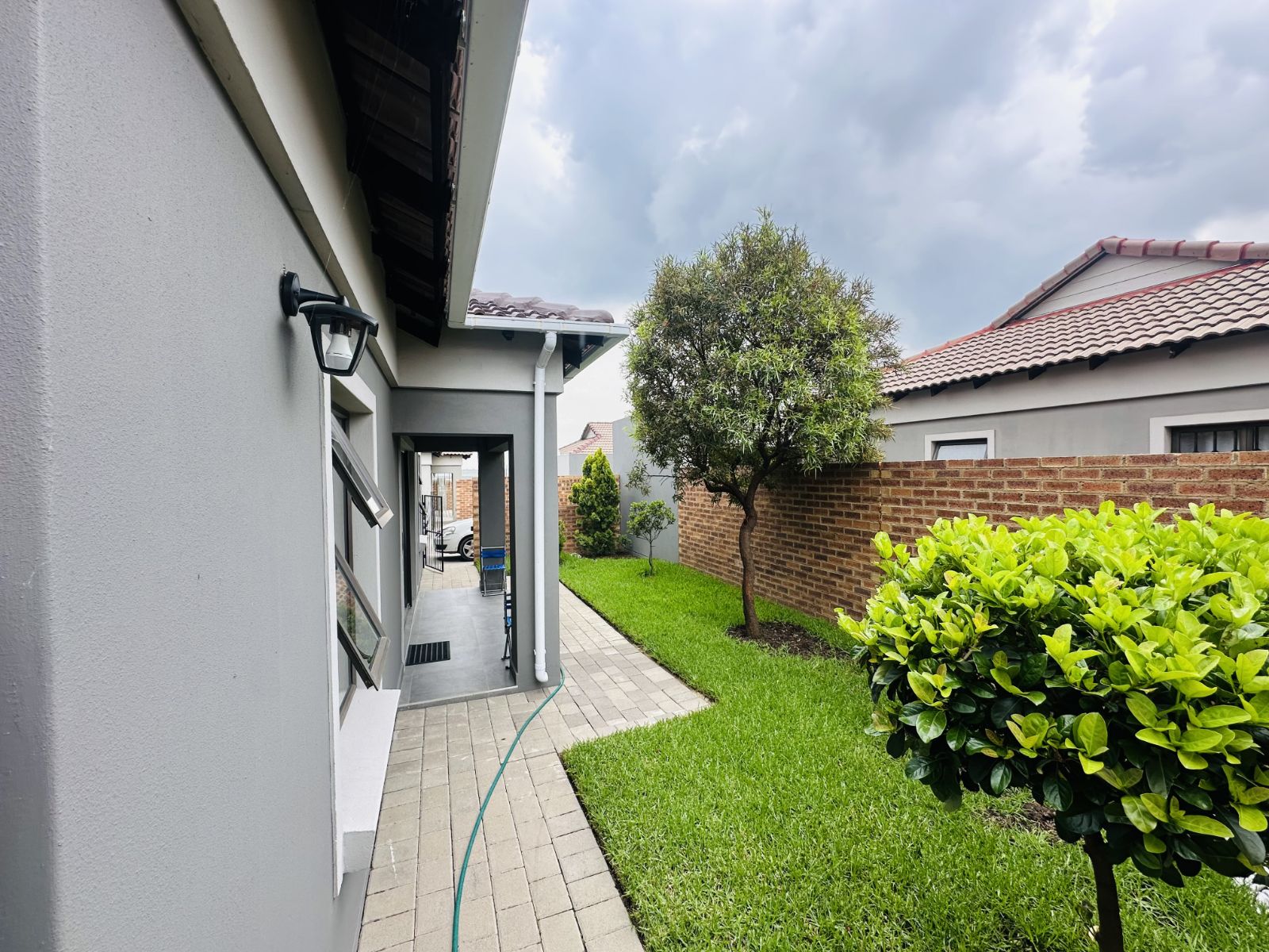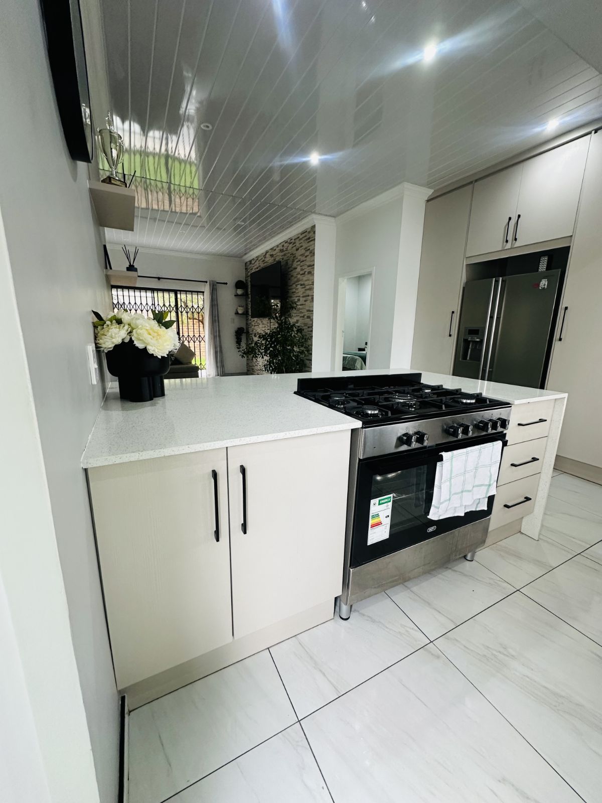 Discover modern comfort and stylish living in this beautifully finished three-bedroom home located in the highly secure and family-friendly Terra Nova complex. This home offers an exceptional blend of luxury, functionality, and convenience — perfect for families, professionals, or anyone looking for a peaceful yet well-connected lifestyle. The home features a newly renovated kitchen with a spacious island, gas stove, and sleek extraction fan, flowing effortlessly into the open-plan living area. Large sliding doors lead out to the private garden, creating an airy indoor-outdoor feel. Enjoy year-round entertaining with a built-in braai area and a well-maintained outdoor space. The master bedroom includes a luxurious en-suite bathroom with contemporary black finishes. Two additional bedrooms offer ample space for children, guests, or a home office.