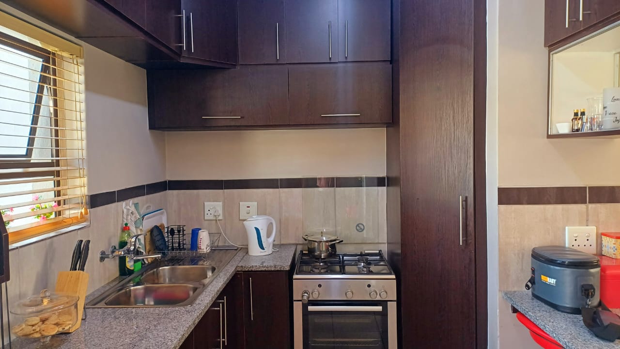 Kitchen: Fully fitted kitchen with neat cabinetry, a stove, and space for appliances.